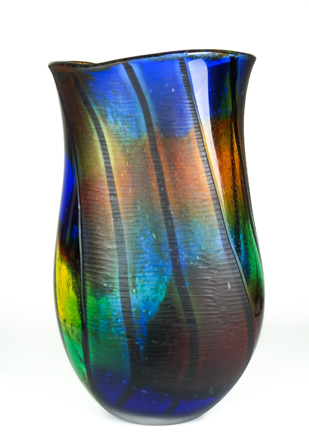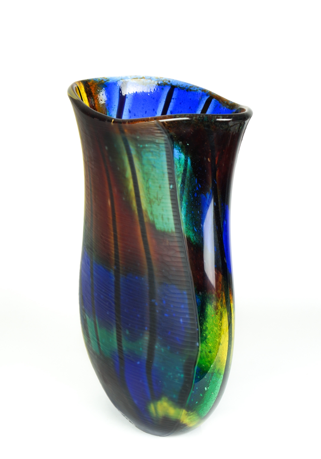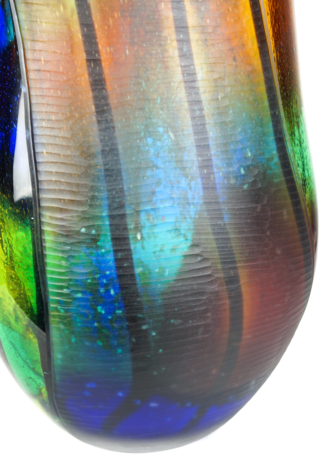 Esclusivo Vaso in vetro soffiato di Murano con lavorazione Pulegoso di vetro multicolore.
