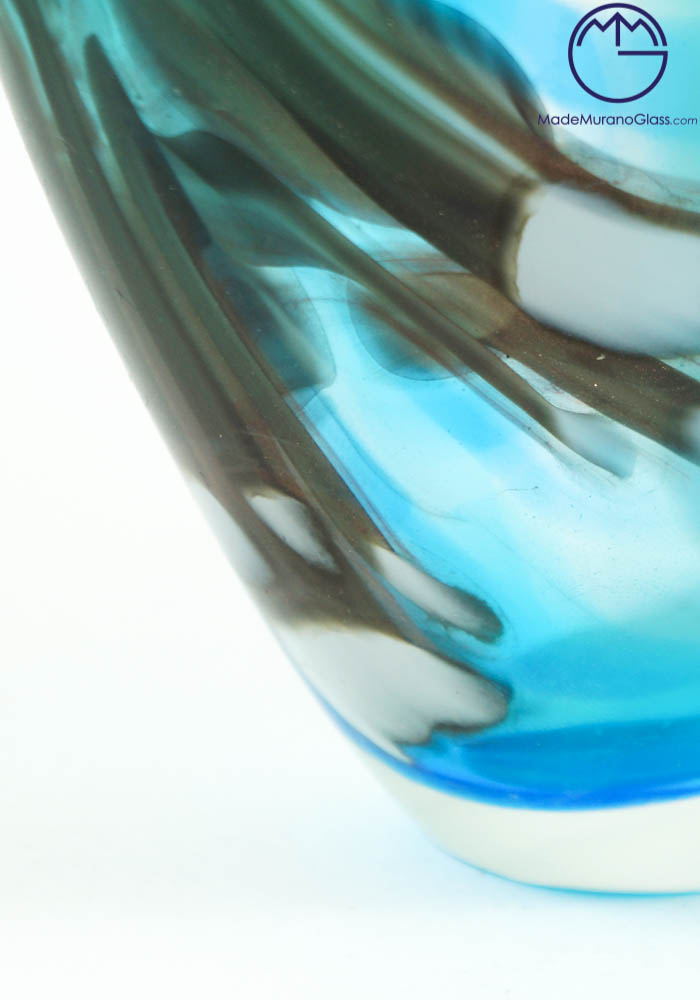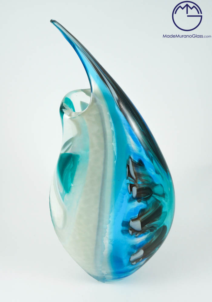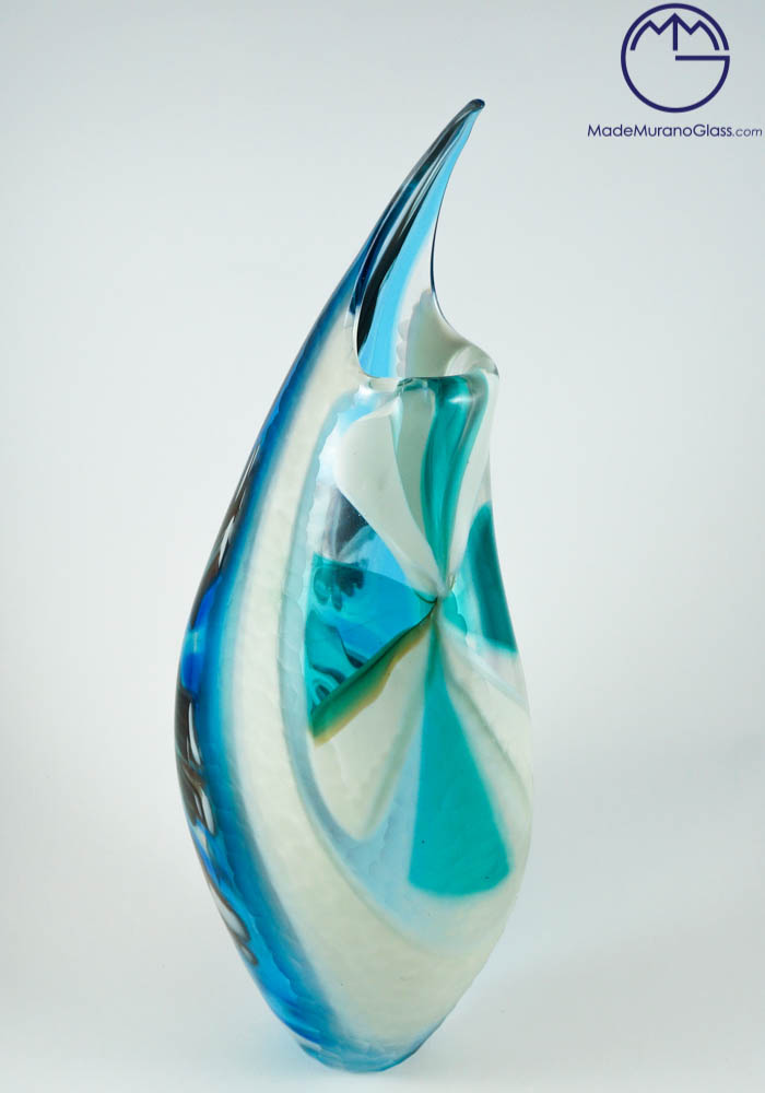 Esclusiva collezione vasi di Murano color acqua mare e bianco con una lavorazione del vetro chiamata dai Maestri vetrai di Murano battuto (inciso). La lavorazione battuta viene eseguita a freddo in una moleria da grandi artisti dell’incisione del vetro. Pezzi di alta qualità unici al mondo per la sua lavorazione. Questa magnifica opera viene firmata dal Maestro. Ogni articolo è minimamente differente dalla foto essendo pezzi unici e fatti a mano.