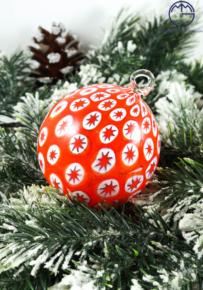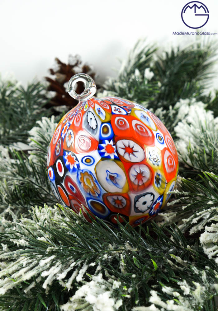 4 fantastic christmas balls in Murano glass with decorations in “Murrina Millefiori”.
