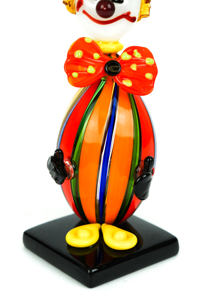Fantastic working of Venetian glass, that represent a magnificent Clown with multicolored “Pipe” of glass and black base.