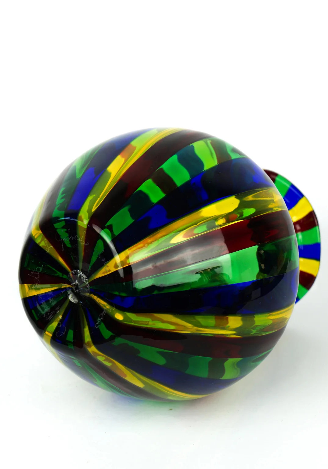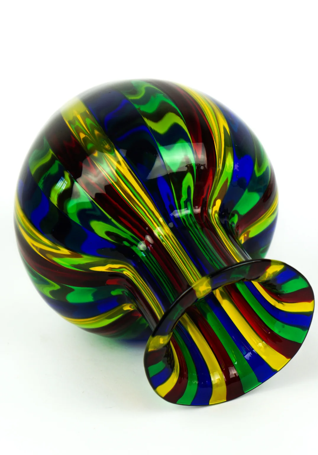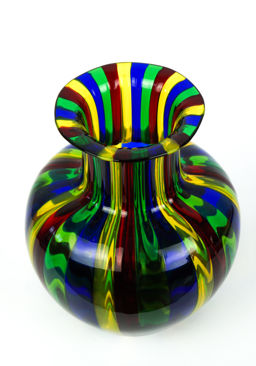 Murano blown glass vase in Pipe blue, yellow, red and green.