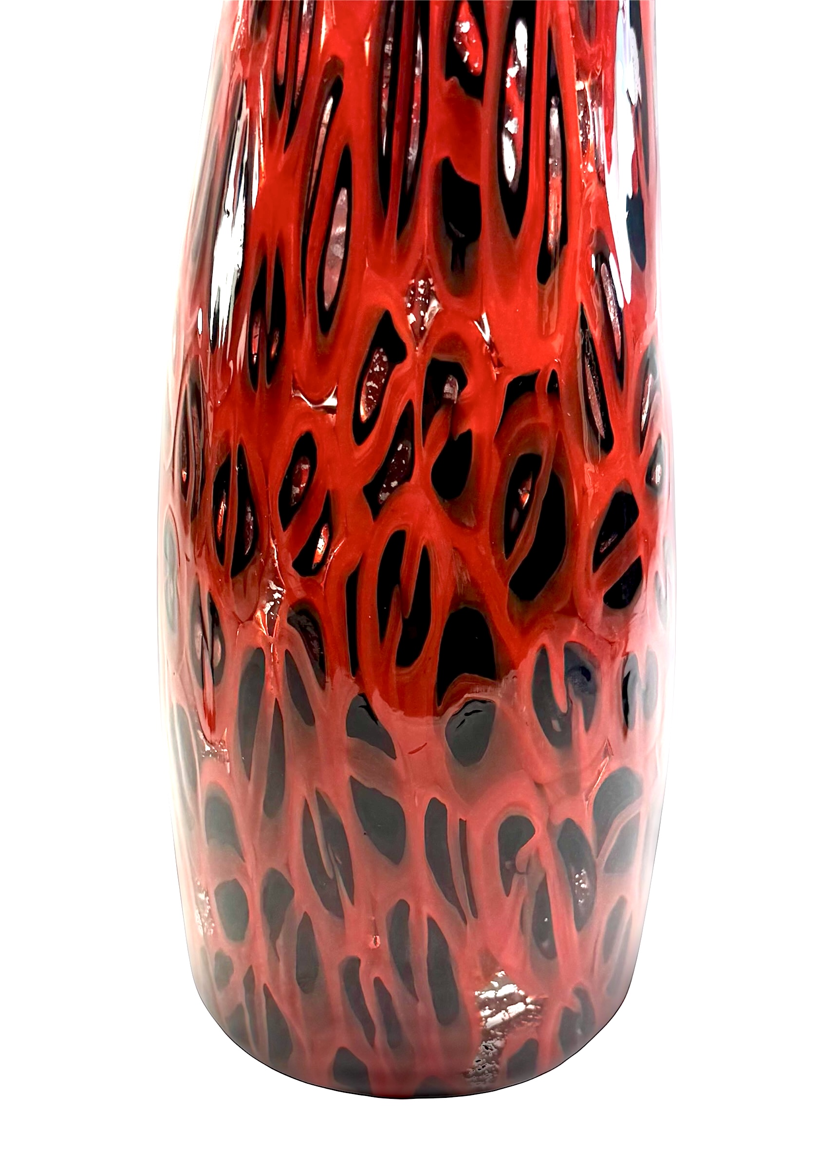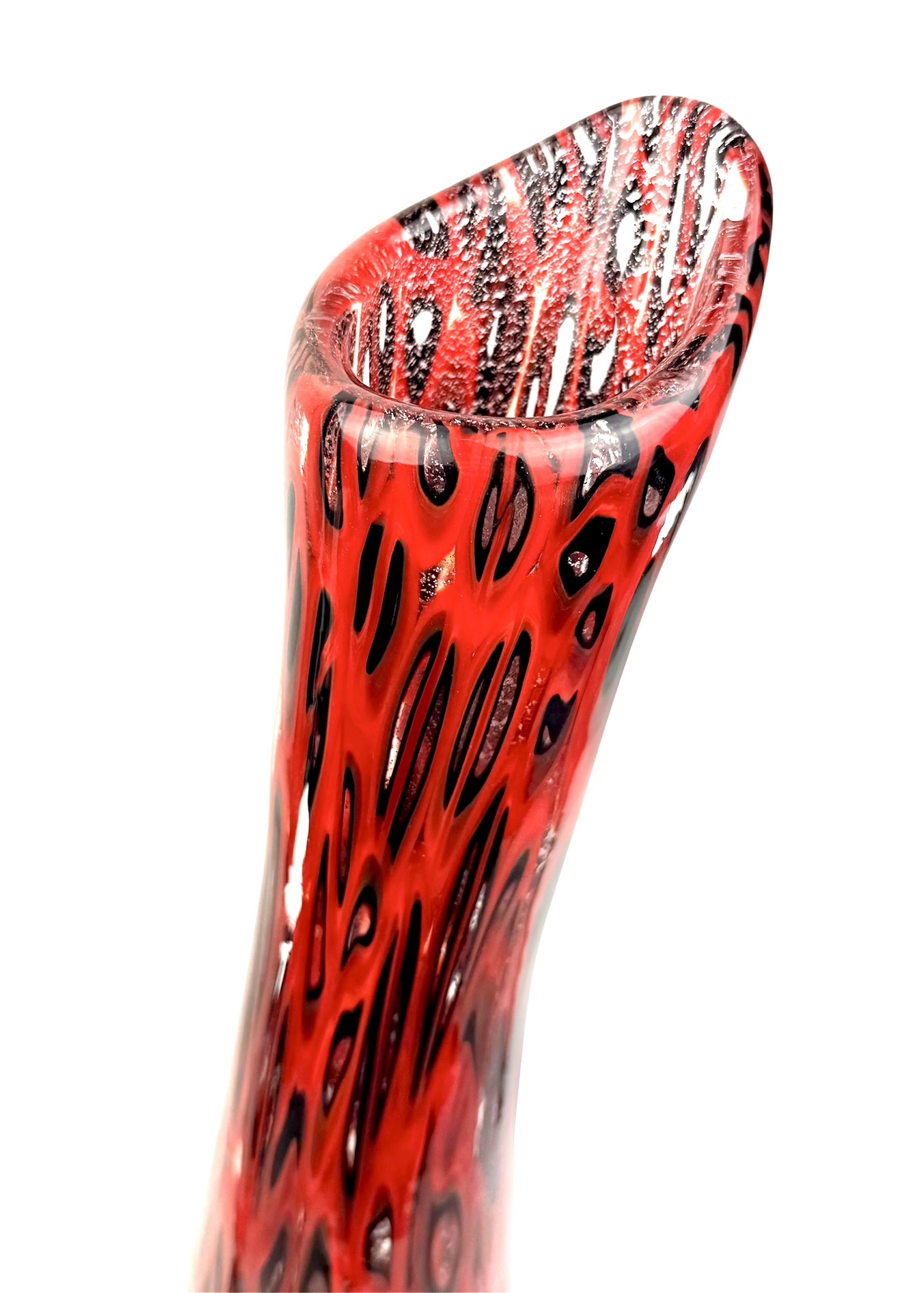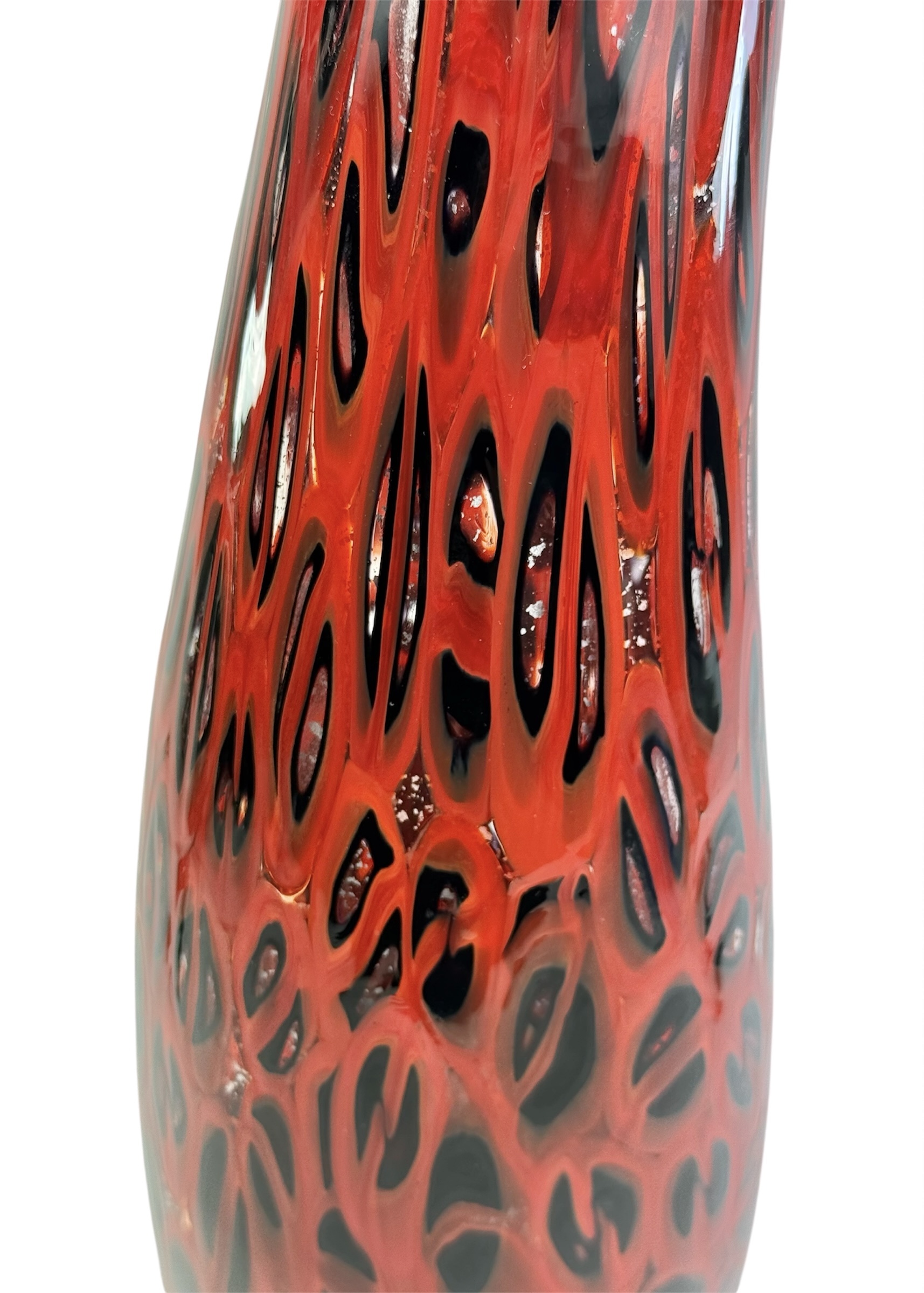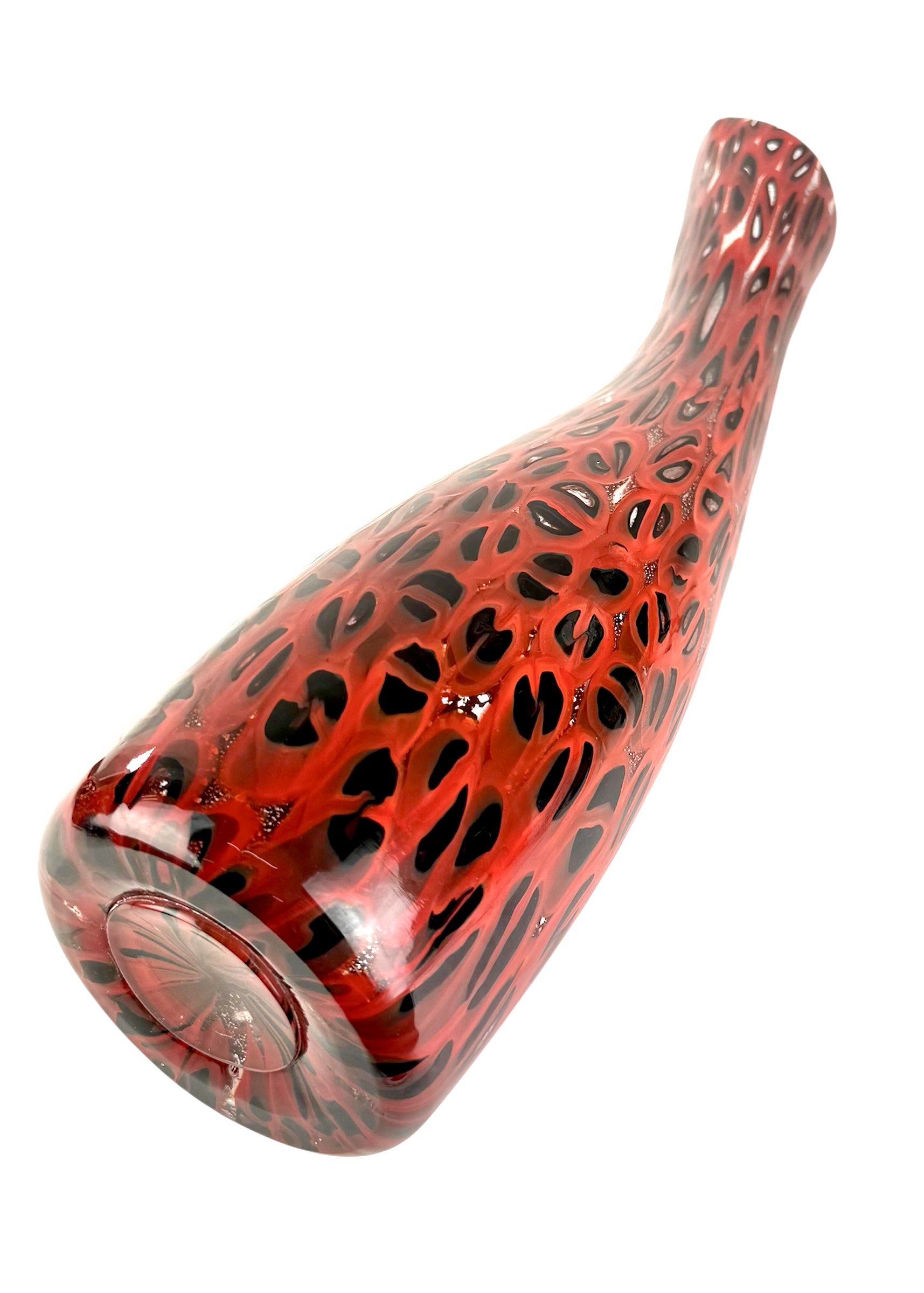Murano blown glass vase made entirely with black and red millefiori murrina.