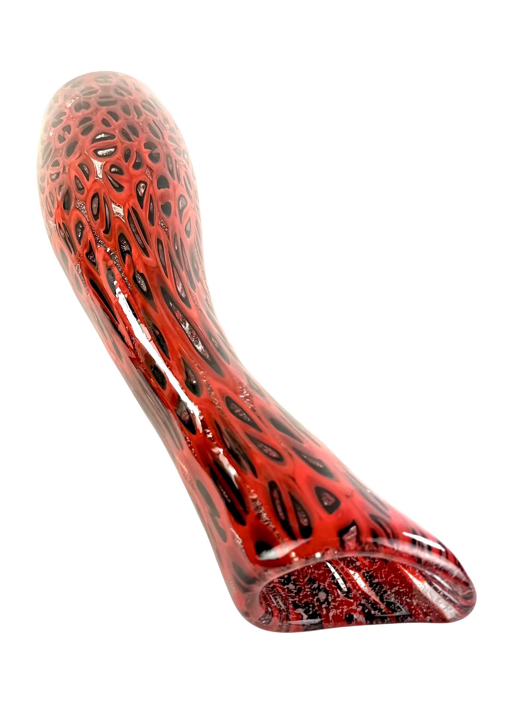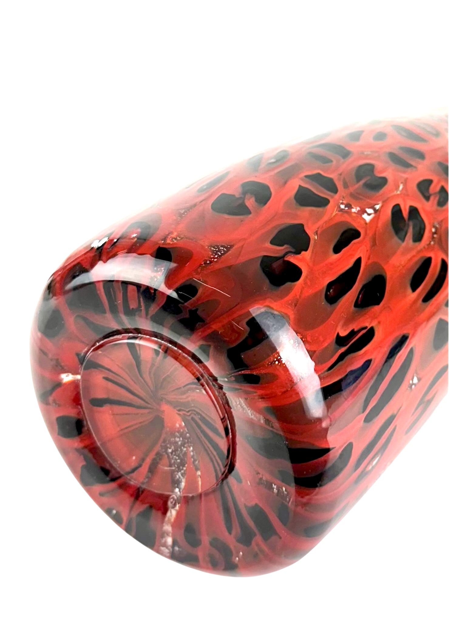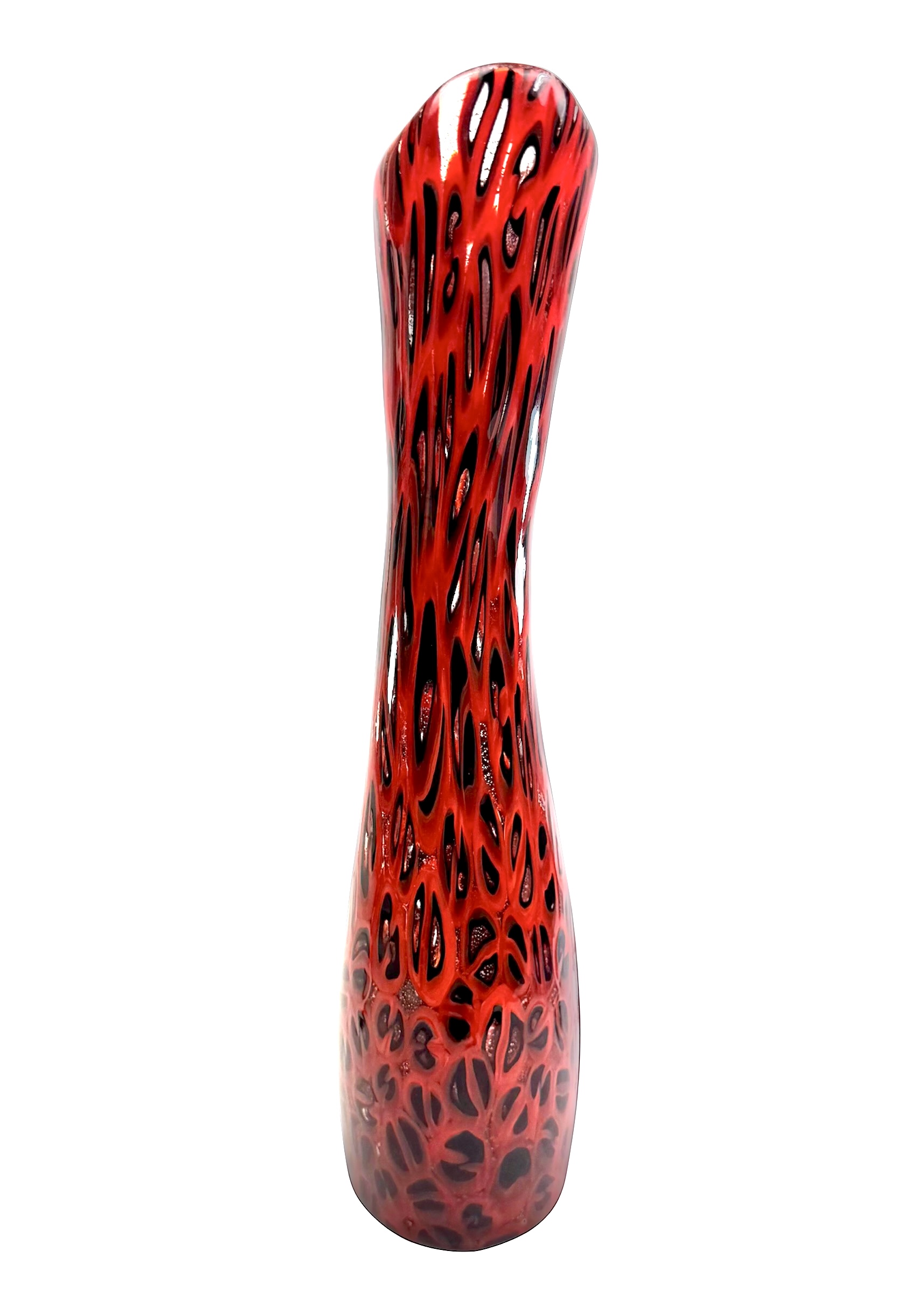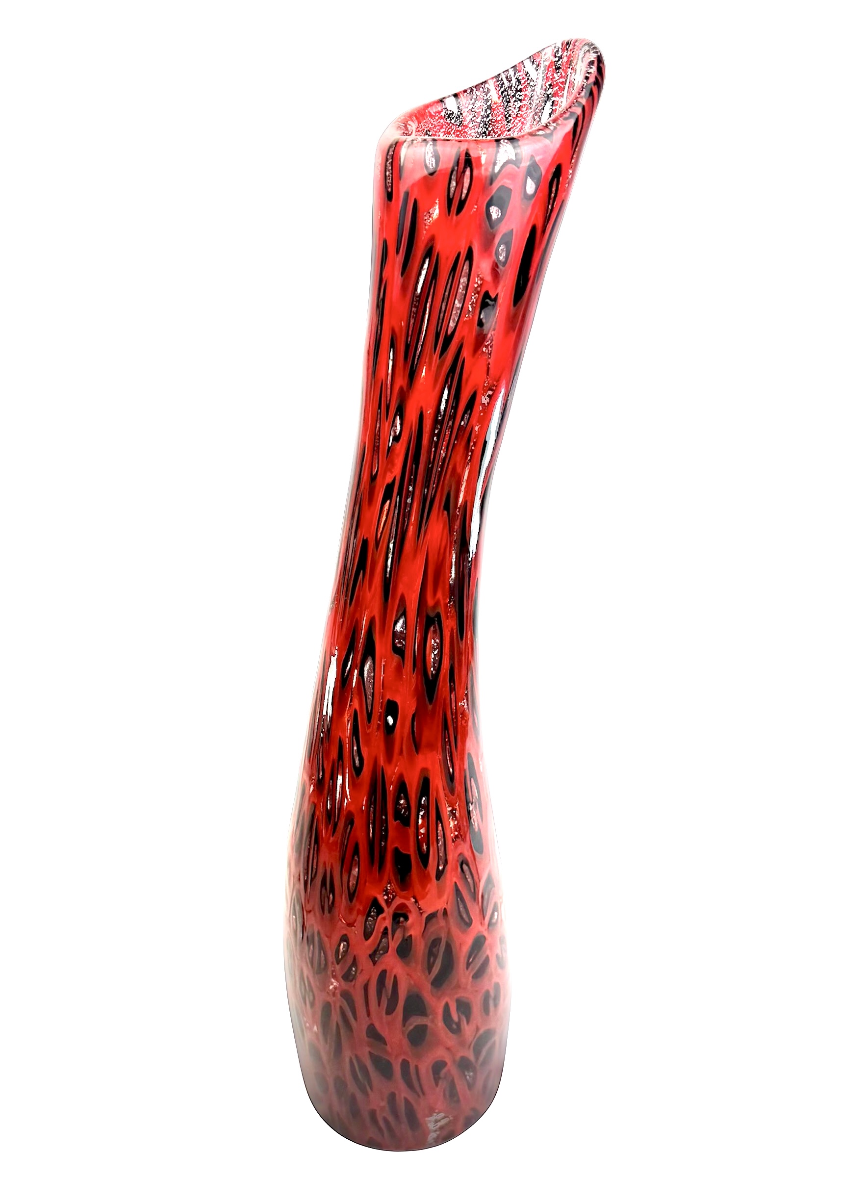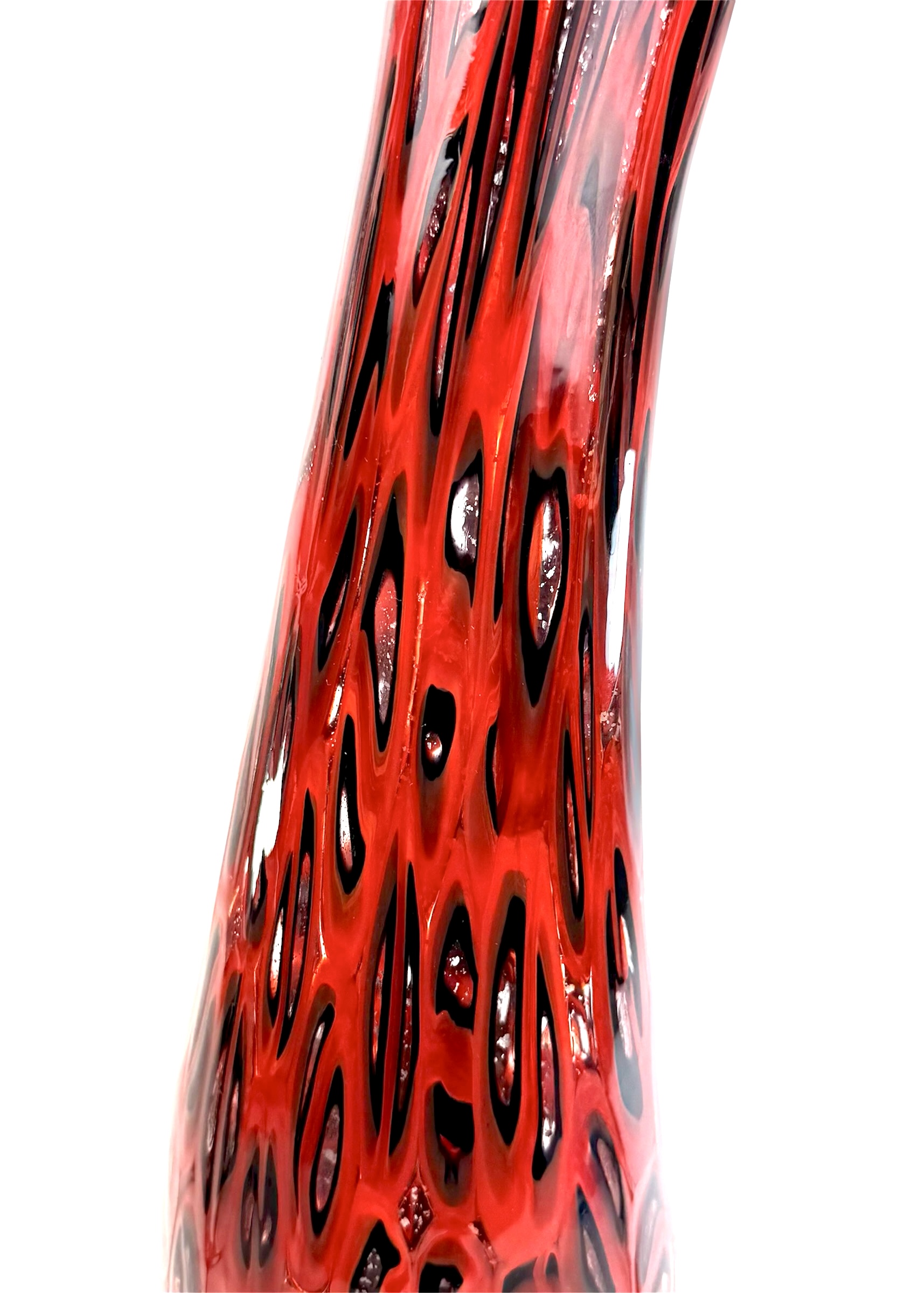 Murano blown glass vase made entirely with black and red millefiori murrina.