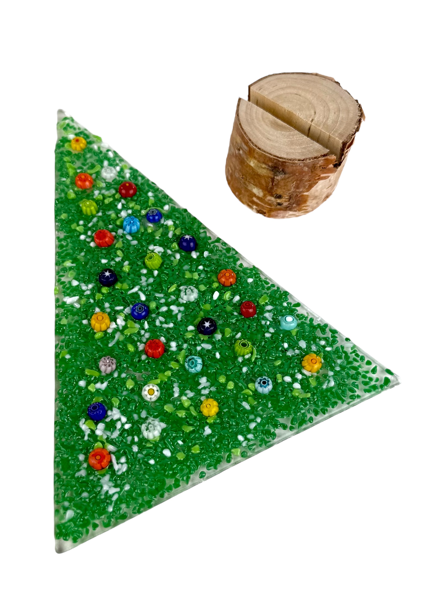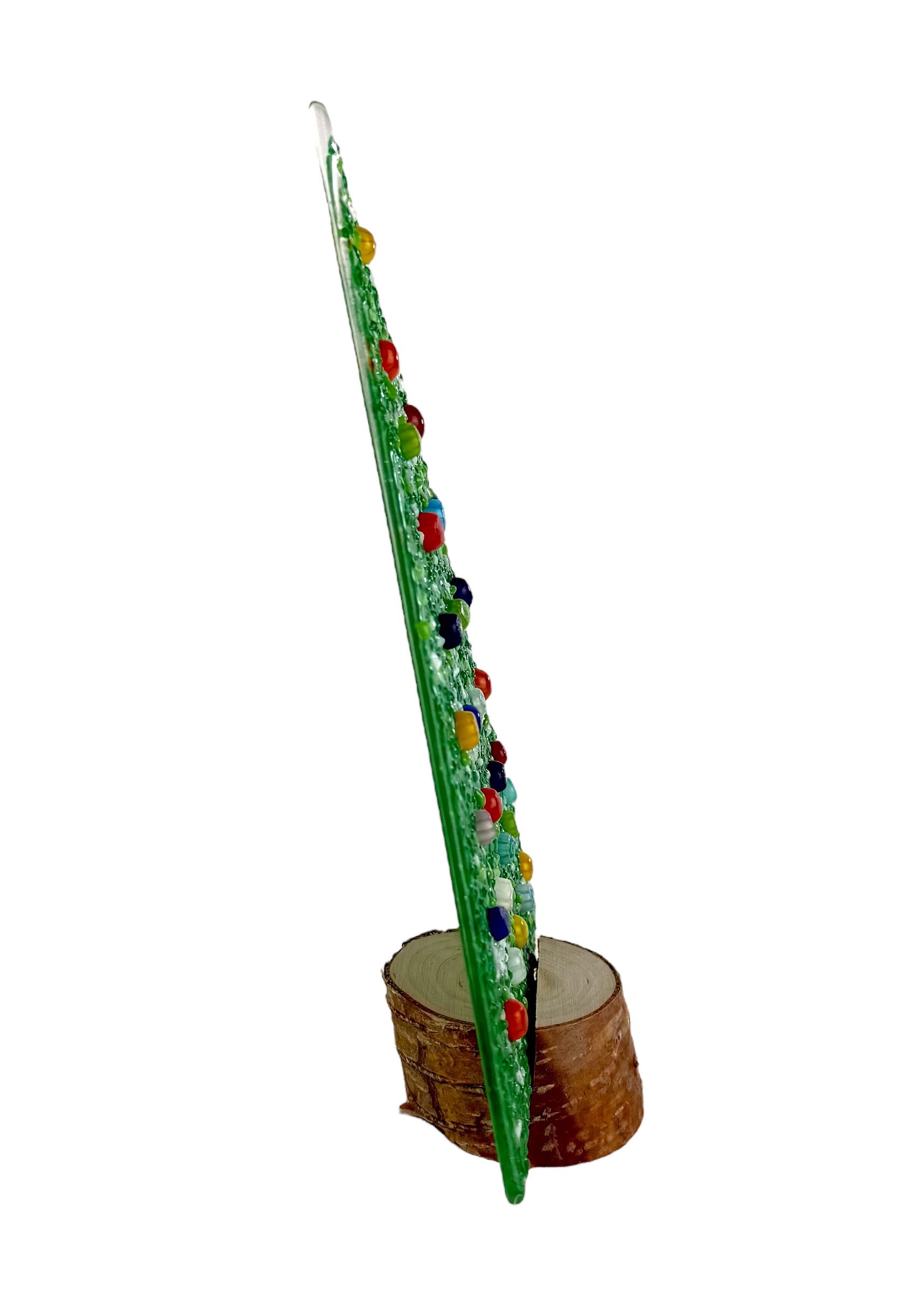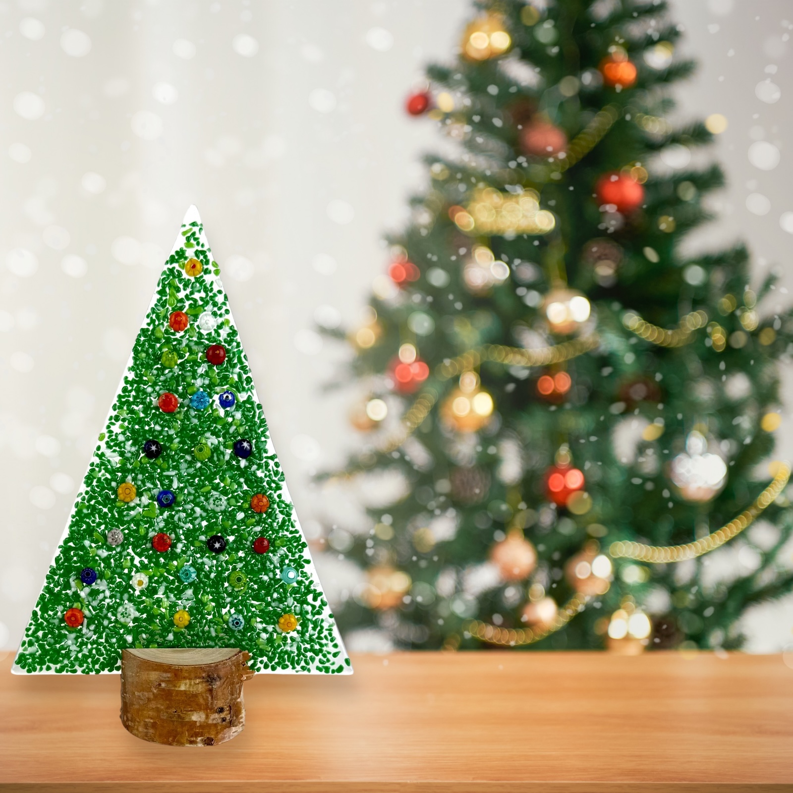 Murano glass Christmas tree with real wood base, supplied with a personalized box.
