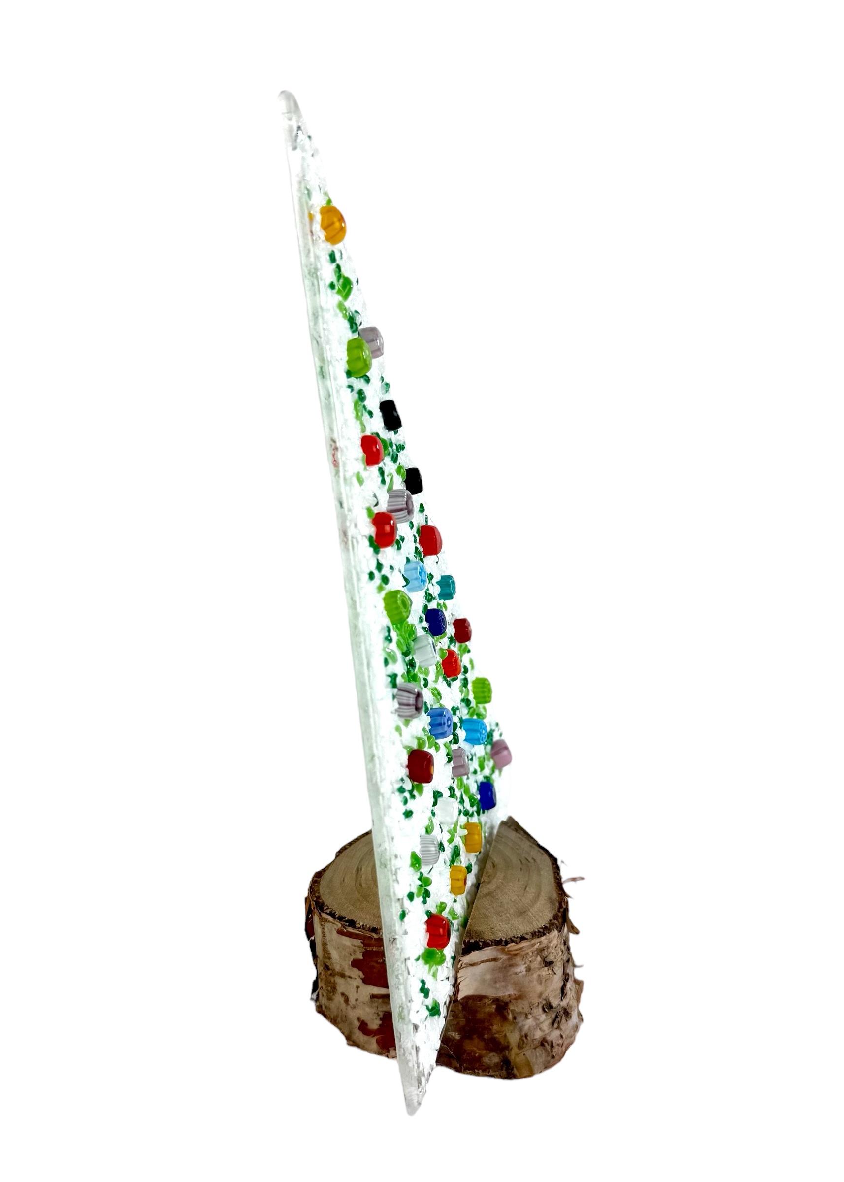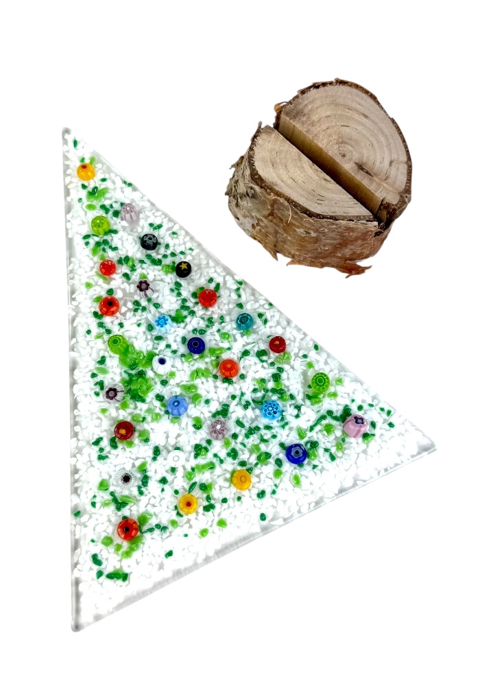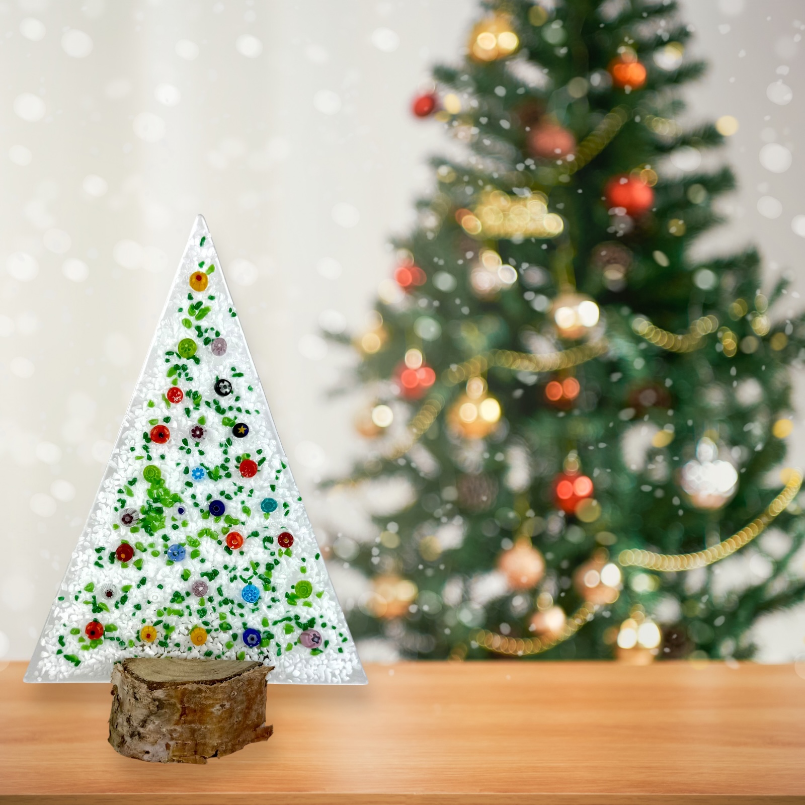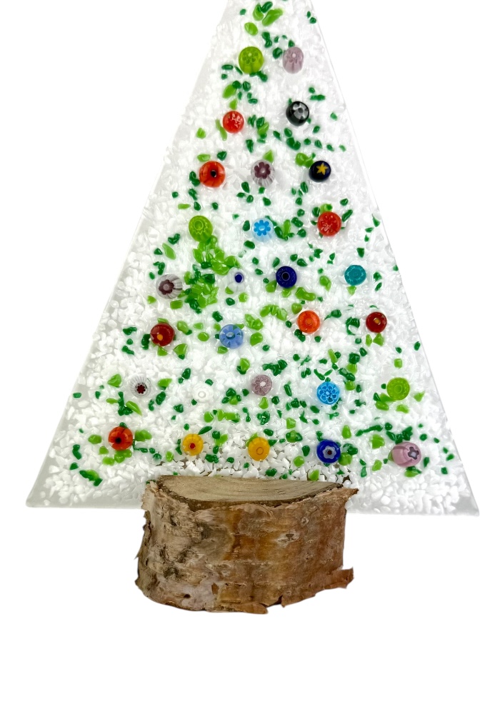 Murano glass Christmas tree with real wood base, supplied with a personalized box.