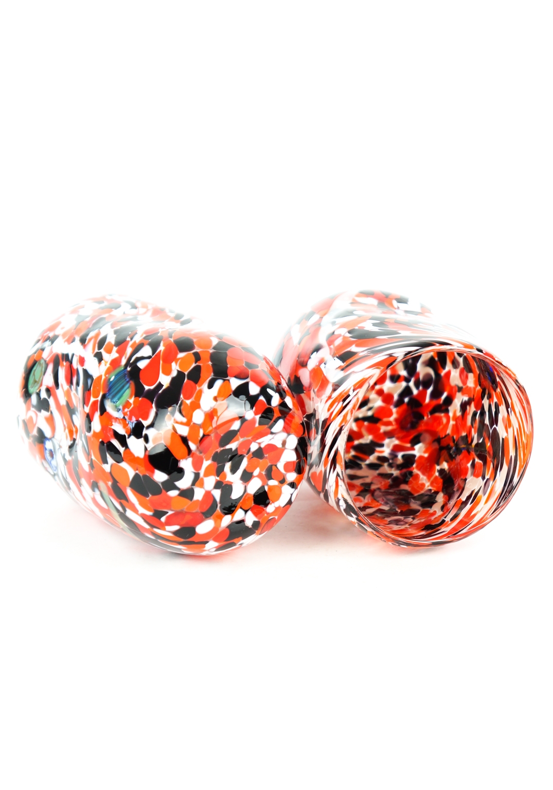 Autumn –Â Set Of 6 Red White Black & Murrina Murano Drinking Glasses handmade.