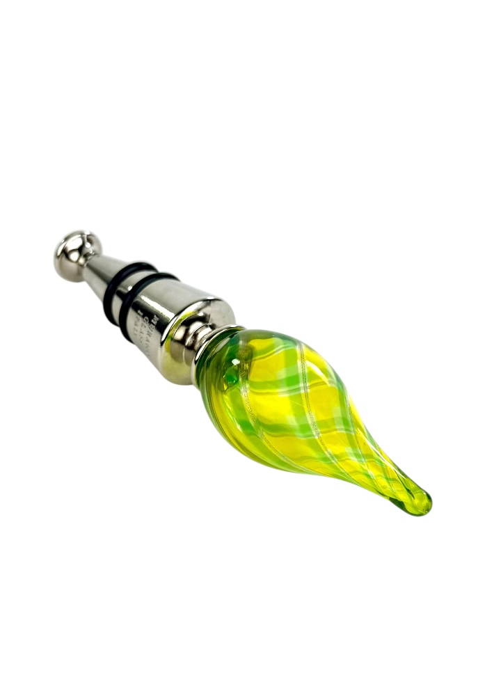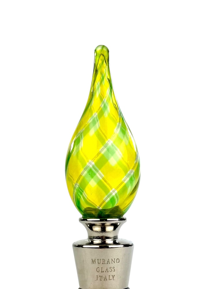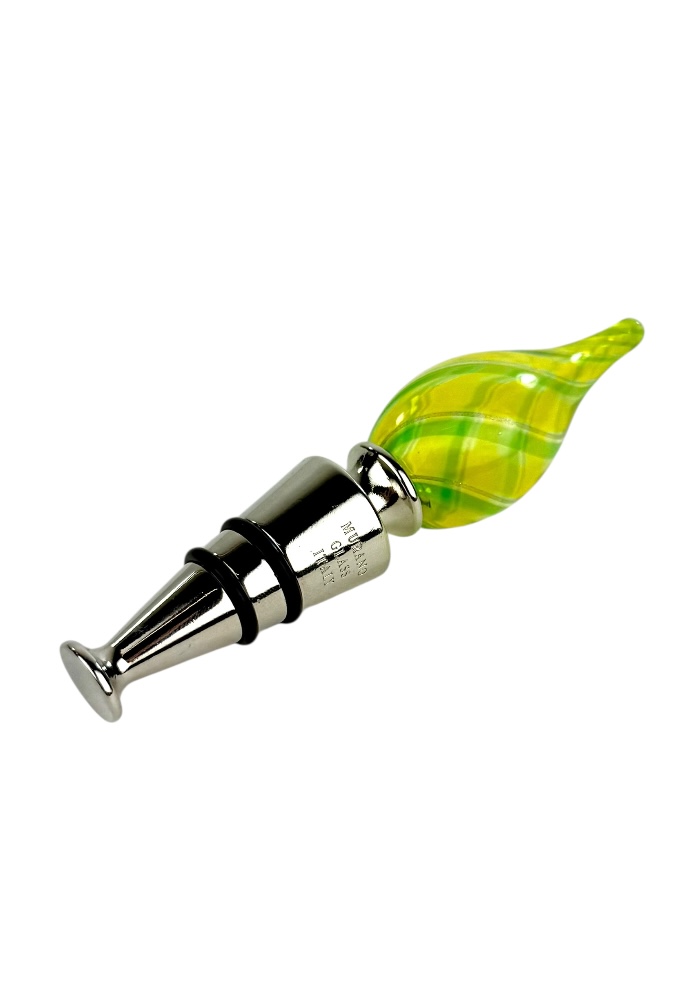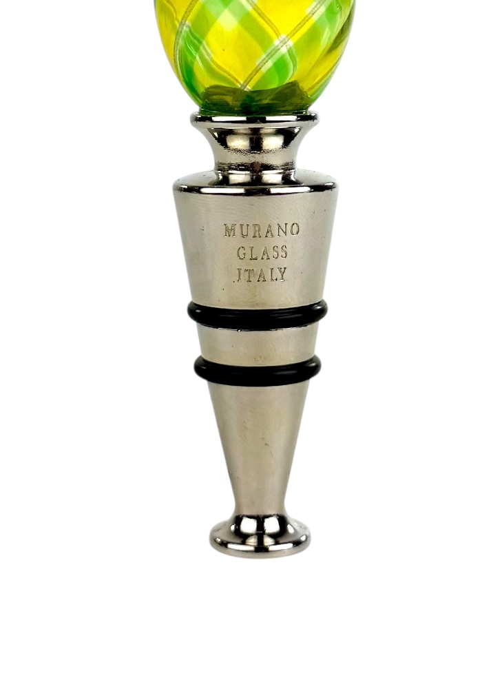 Murano glass bottle stopper with yellow, light green, dark green and aventurine kanne.