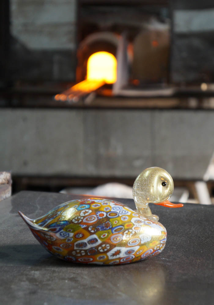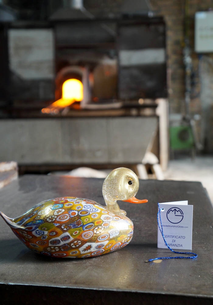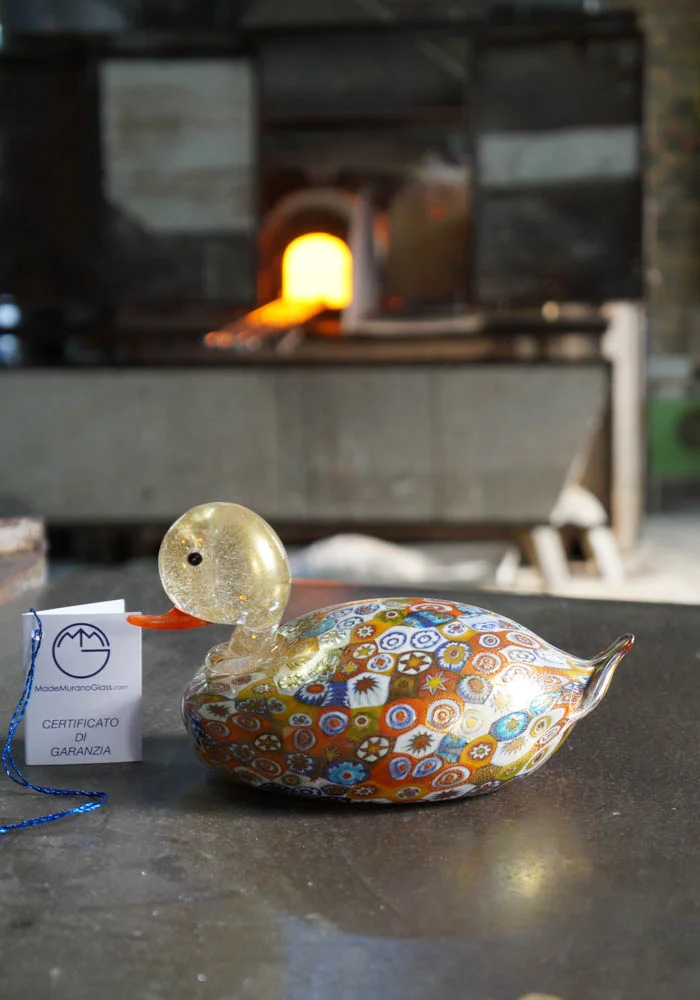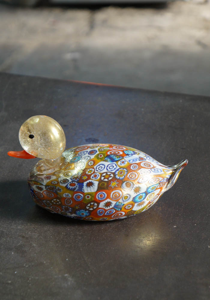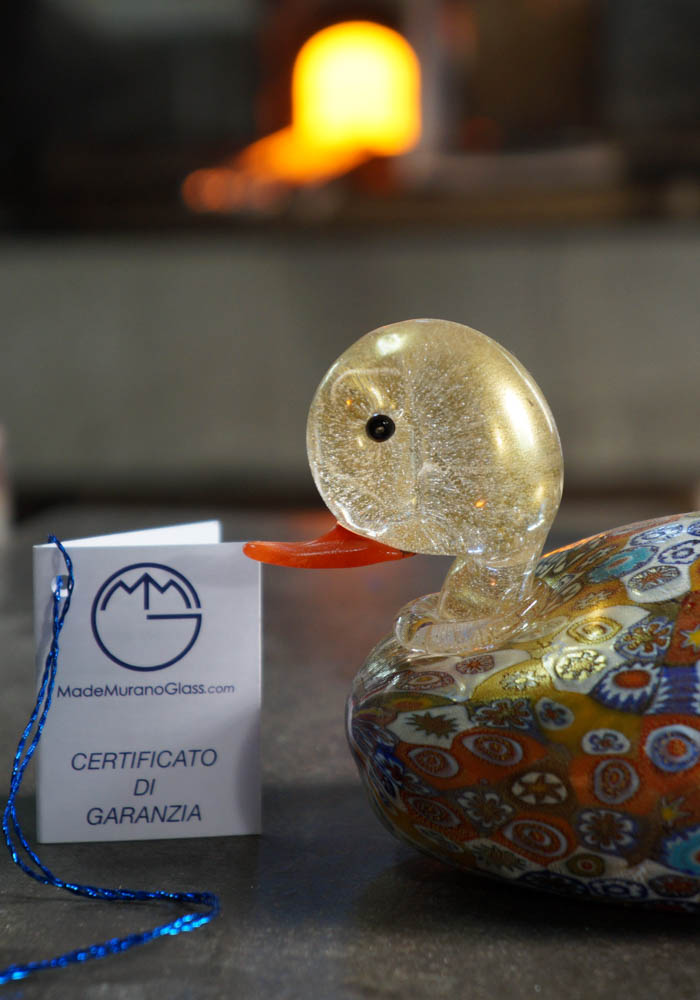 Fantastic Murano glass animal, that represent a magnificent duck with murrina millefiori and decorations in gold 24 carats.