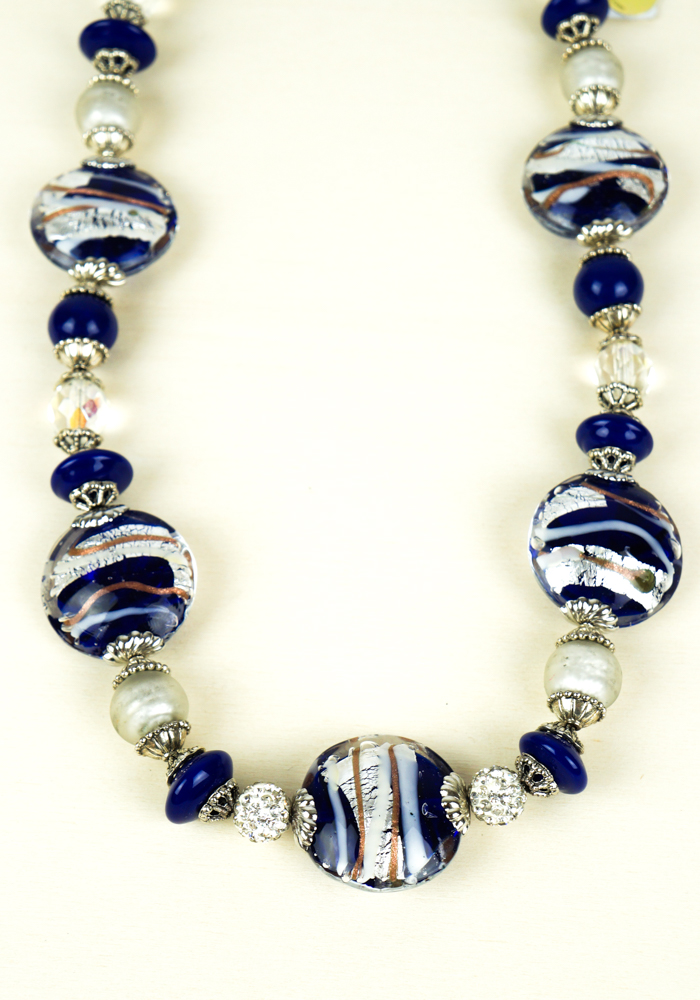 Exclusive venetian glass jewelry completely handcraft product. Produced with “lume” working, with great care and precision by skilled Murano artisans. Bright and shiny colours, sophistication and lightness make this work unique and inimitable. The pearls of this fantastic jewelry in Murano glass have different shapes and assorted colors.