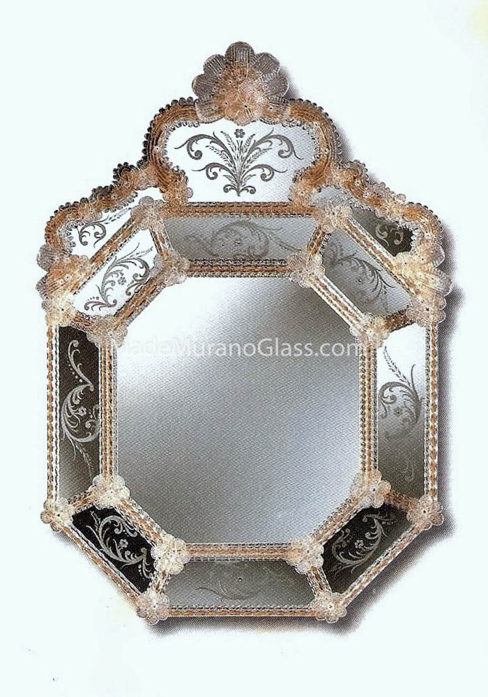 Elegant Murano glass mirror handcrafted by master glassmakers, assemblers and engravers who give life to this magnificent work.