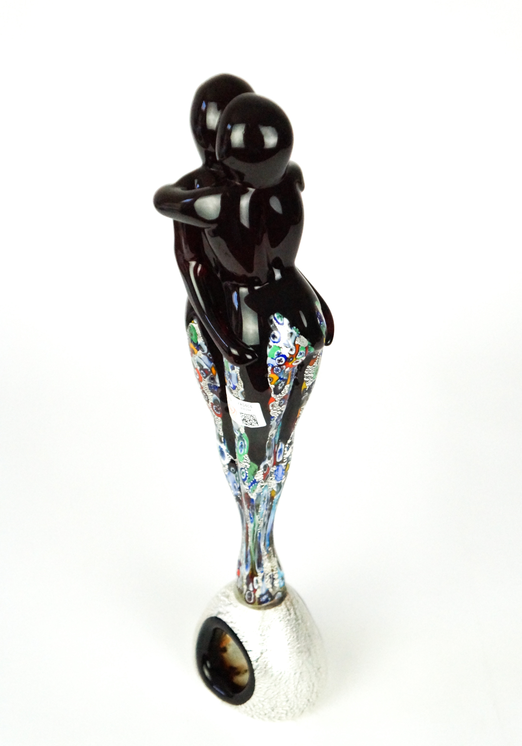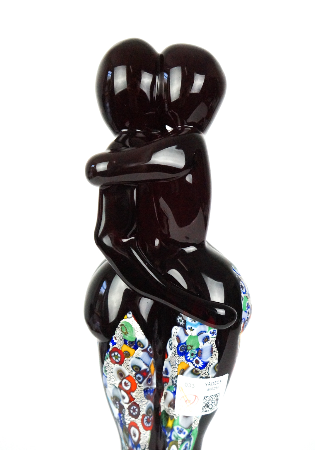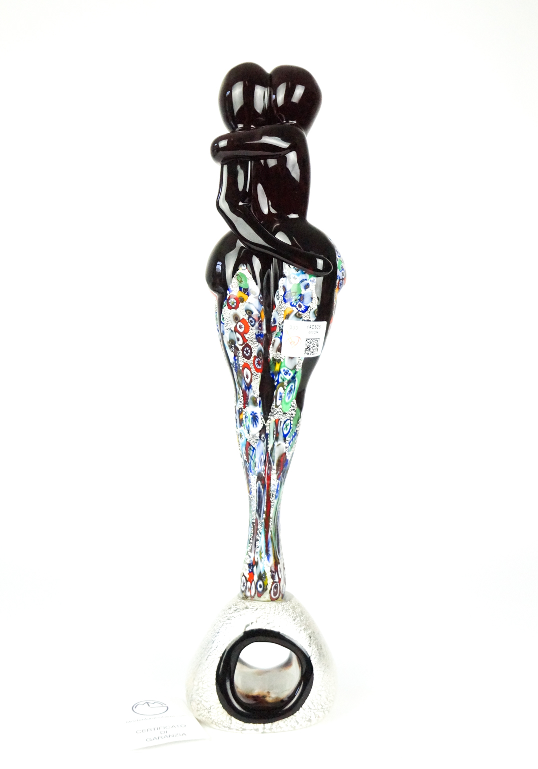 Murano Glass figure of lovers in Murano glass entirely handmade in red color with murrina millefiori and real silver leaf.