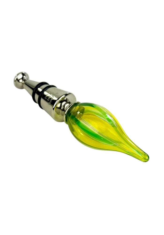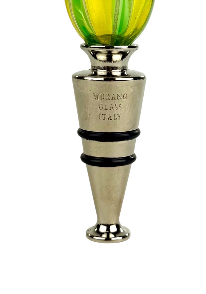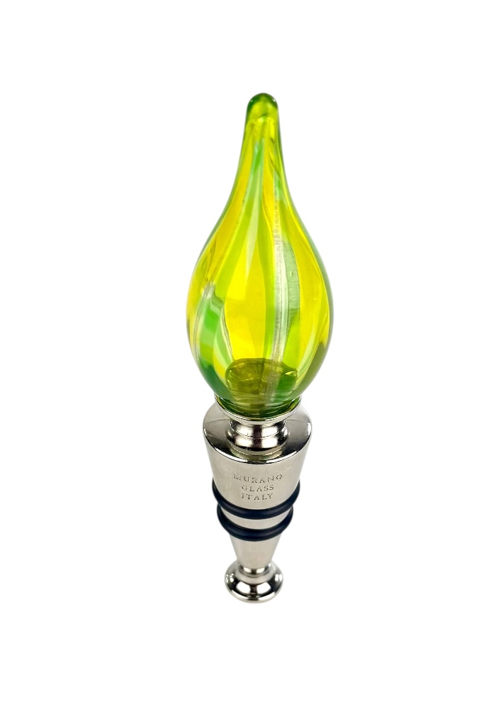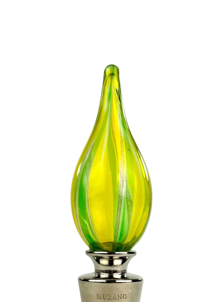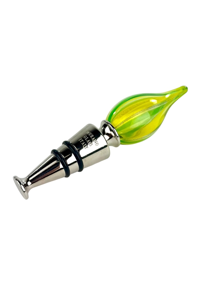Murano glass bottle stopper with yellow, light green, dark green and aventurine kanne.