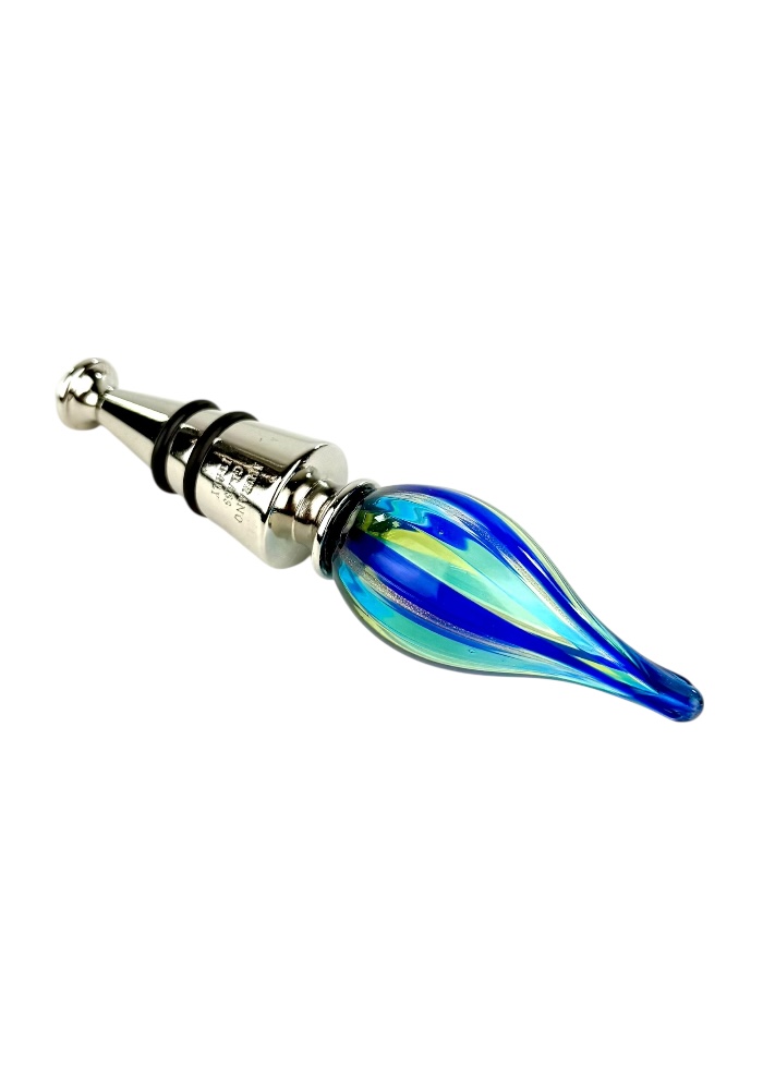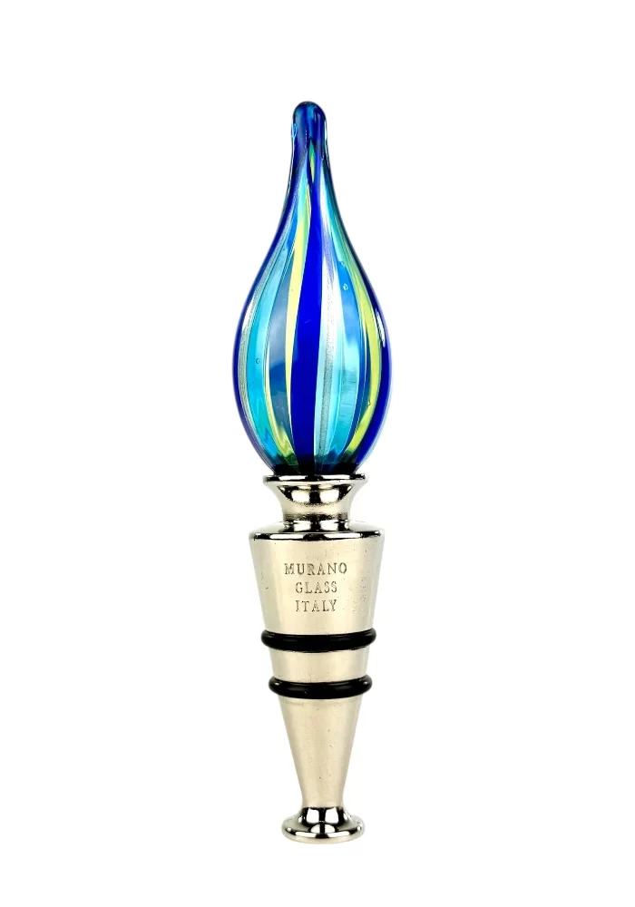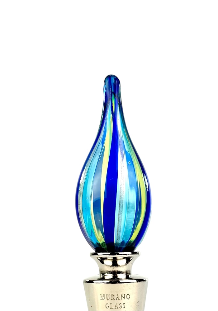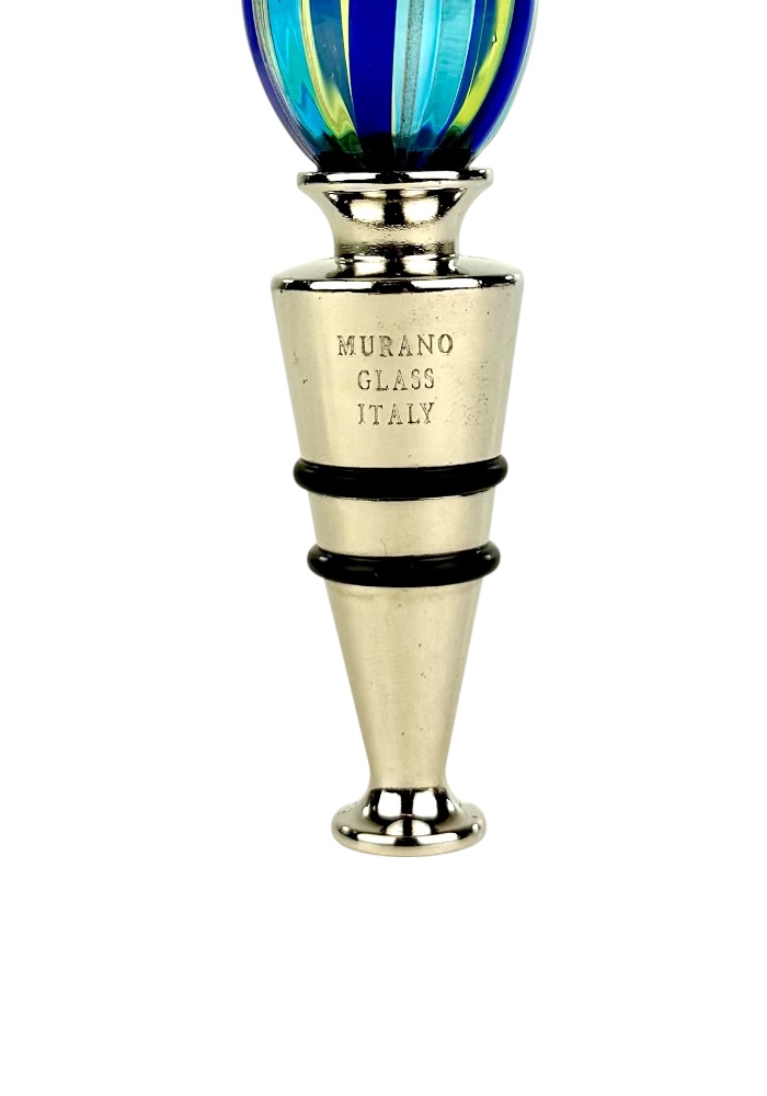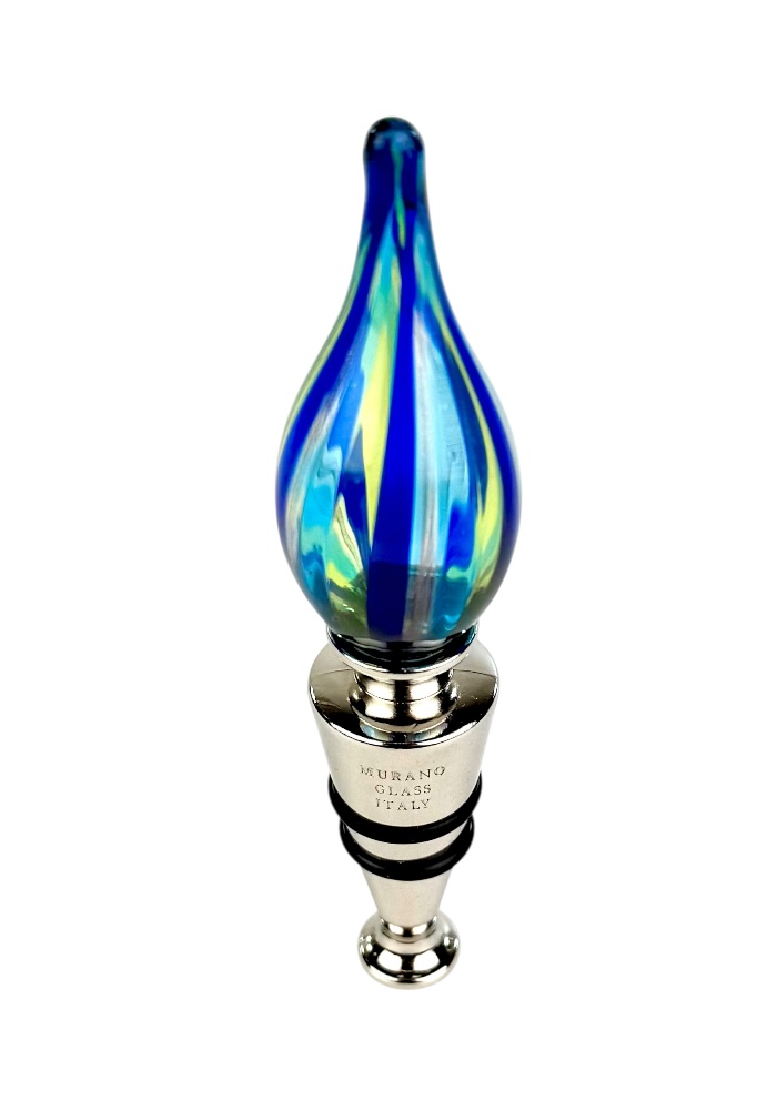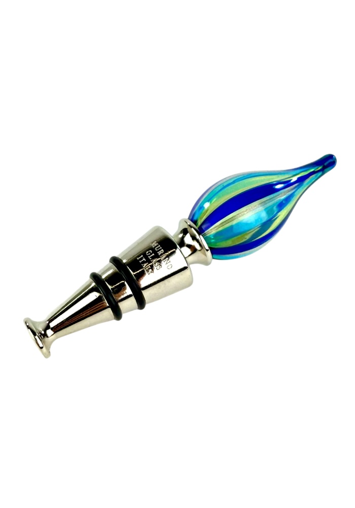 Murano glass bottle stopper with blue, light green, light blue and aventurine kanne.