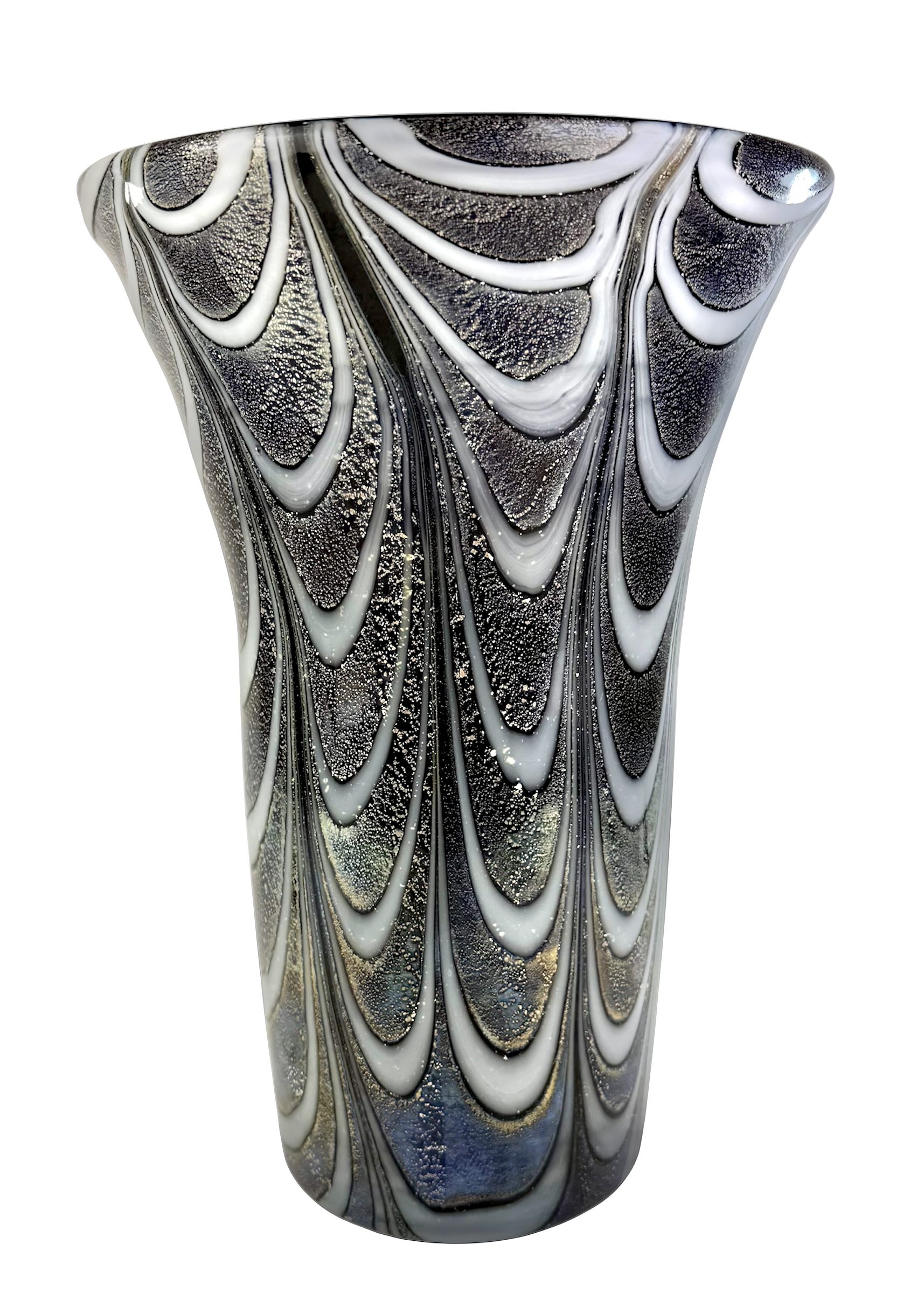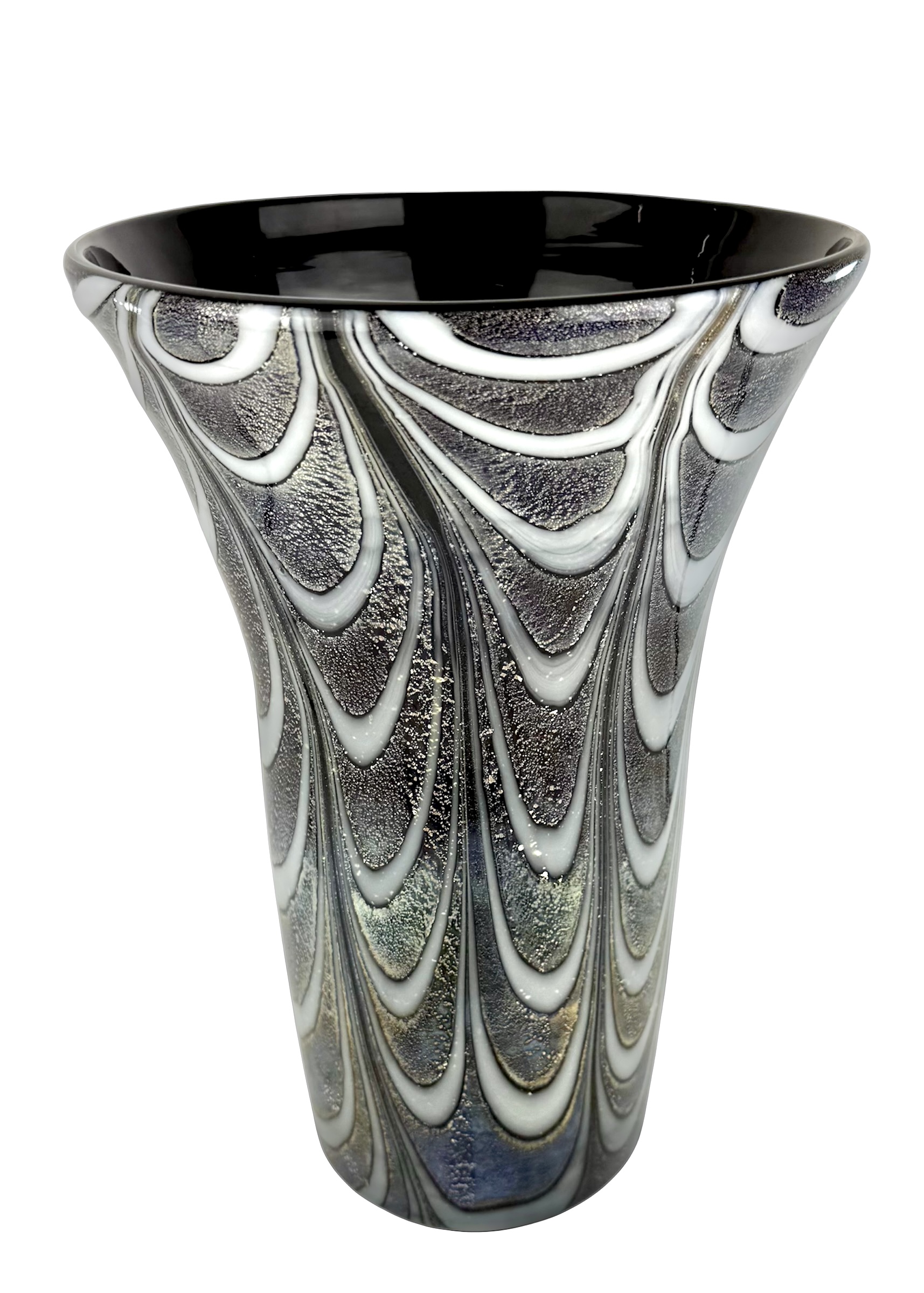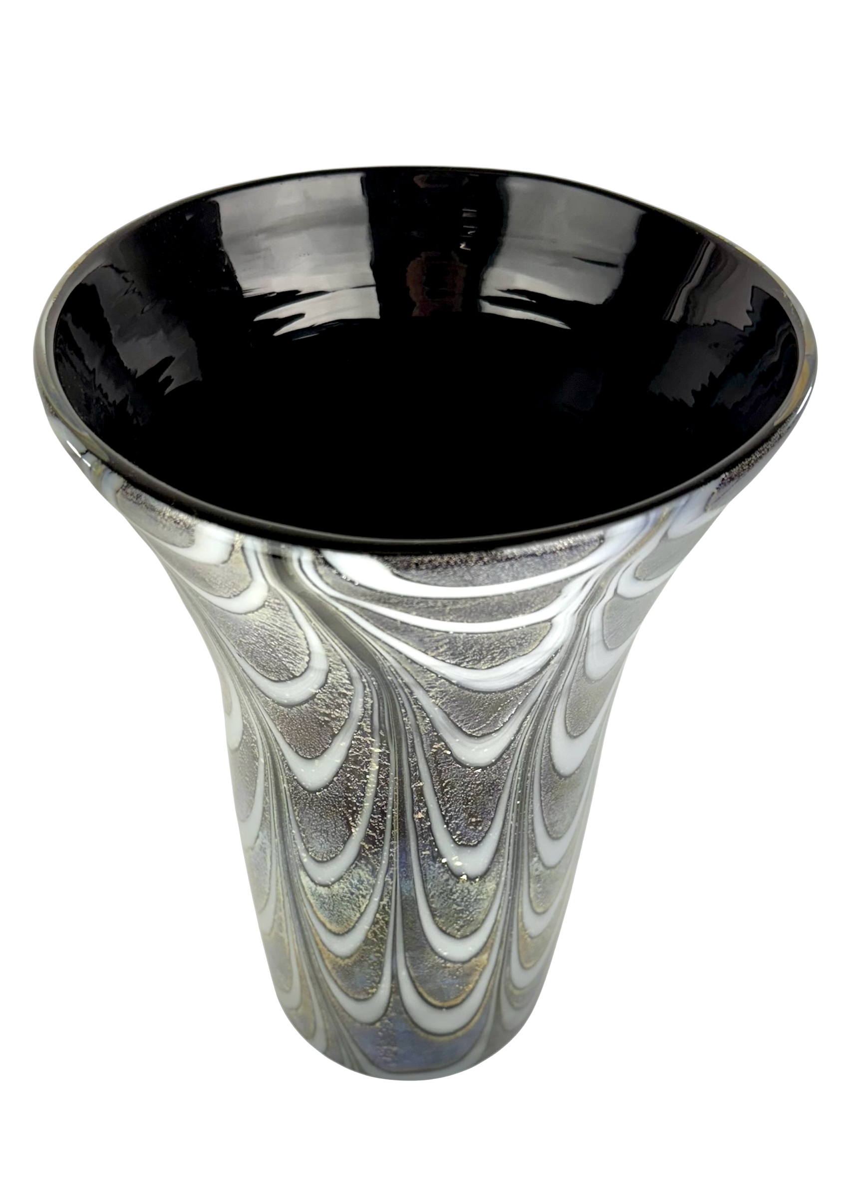 Corfu – Black Murano Glass Vase “Fenicio” With Silver