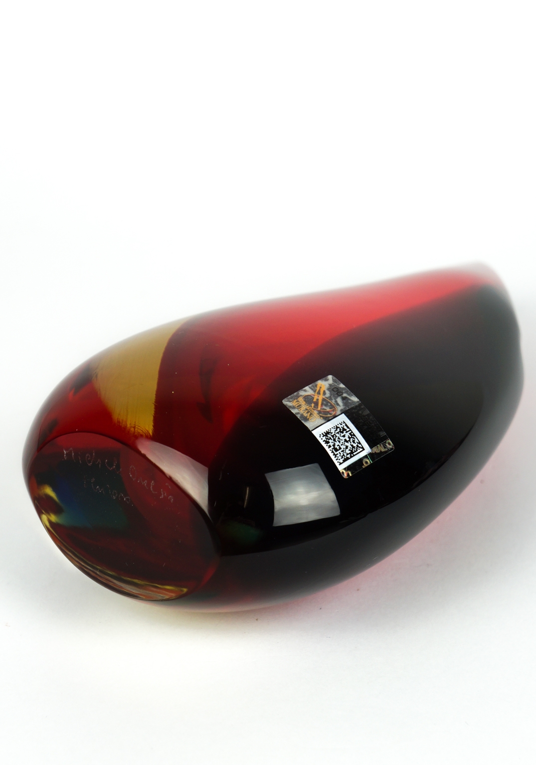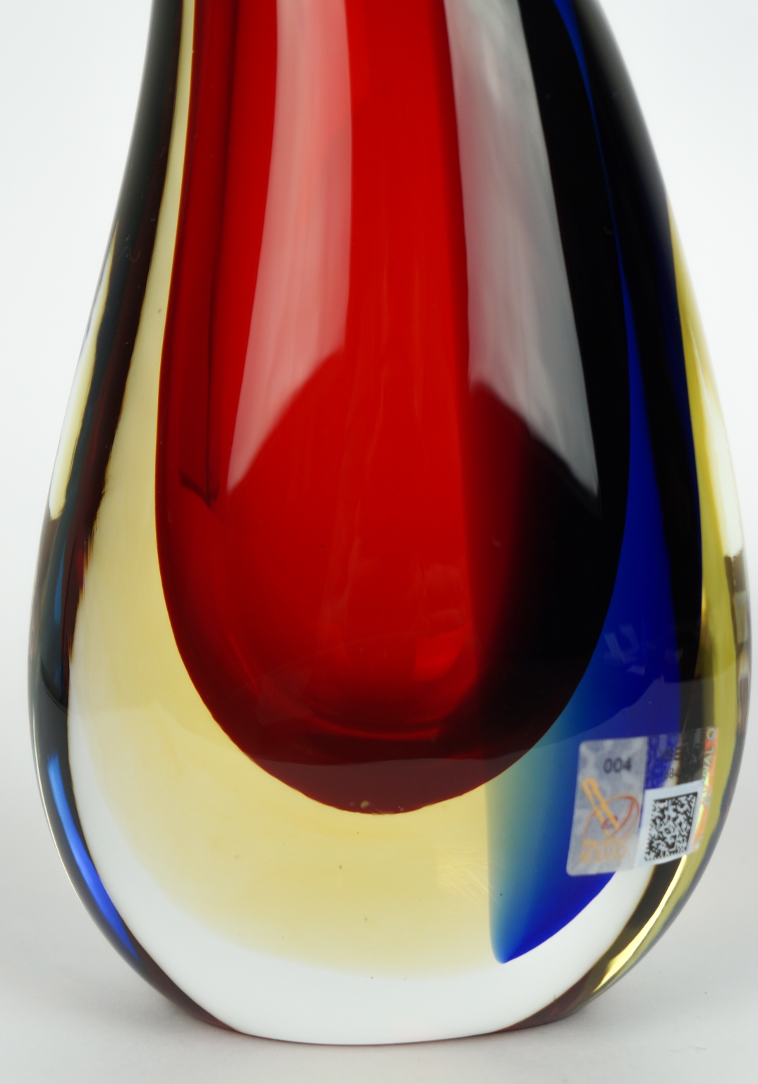 Adhesive label of Vetro Artistico® Murano and signature engraved by the master glassmaker on the bottom of the vase.