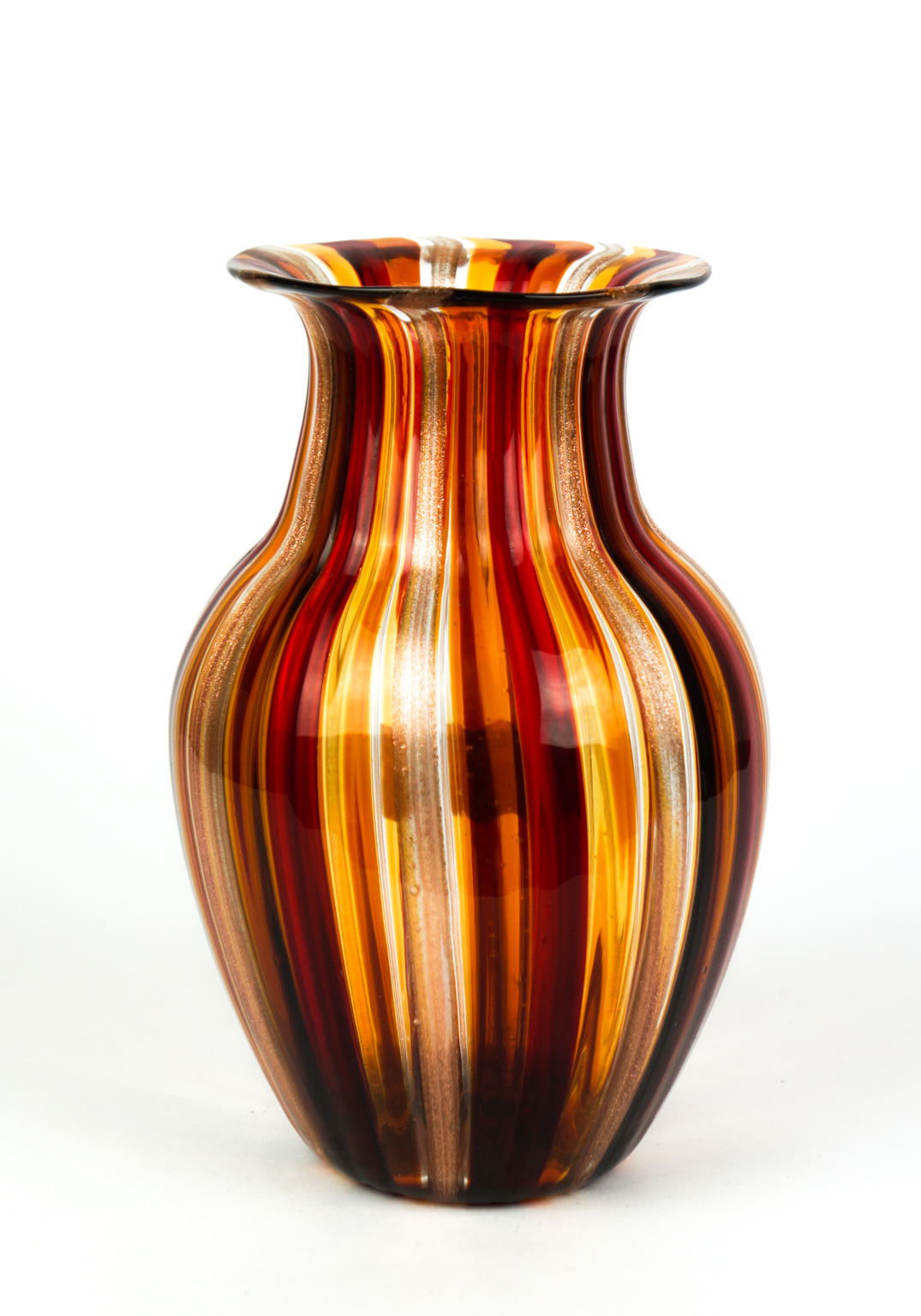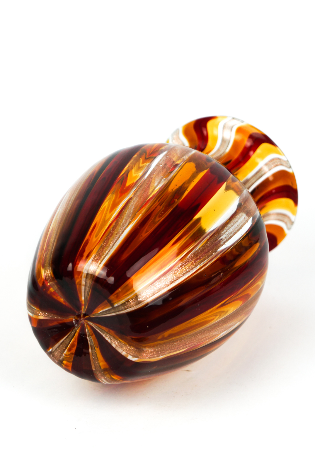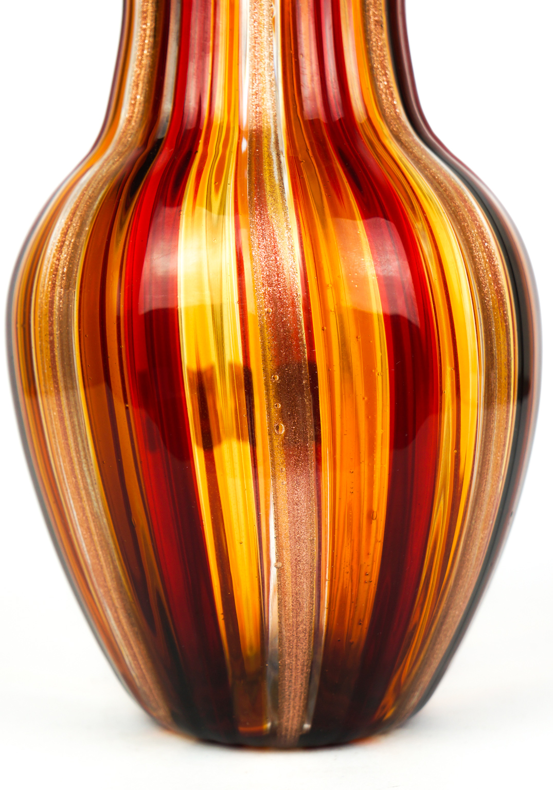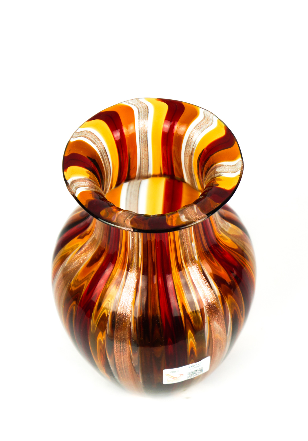 Murano blown glass vase with amber, orange, red and aventurine kanne.