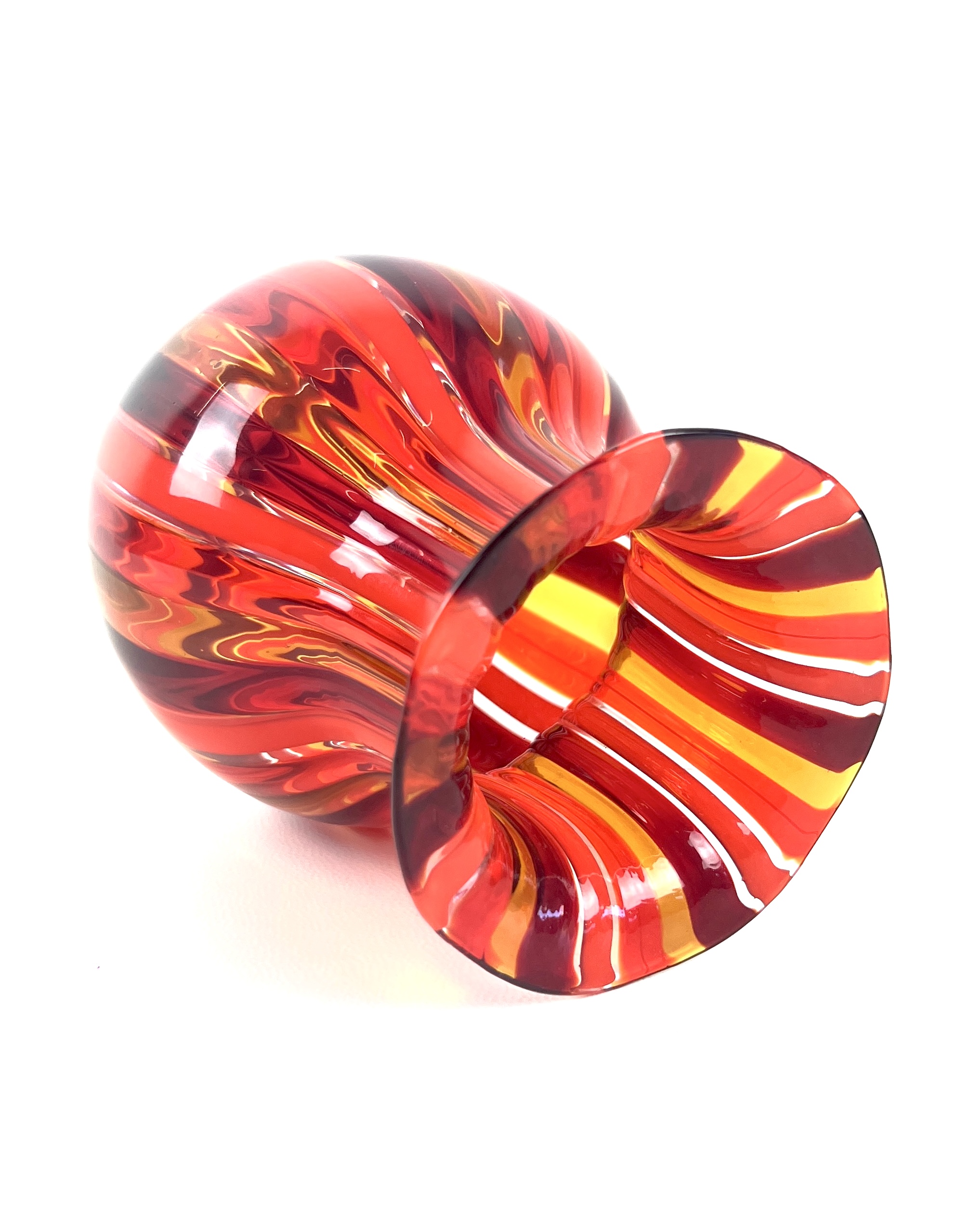 Murano blown glass vase with red, amber, orange, and red filigree kanne.