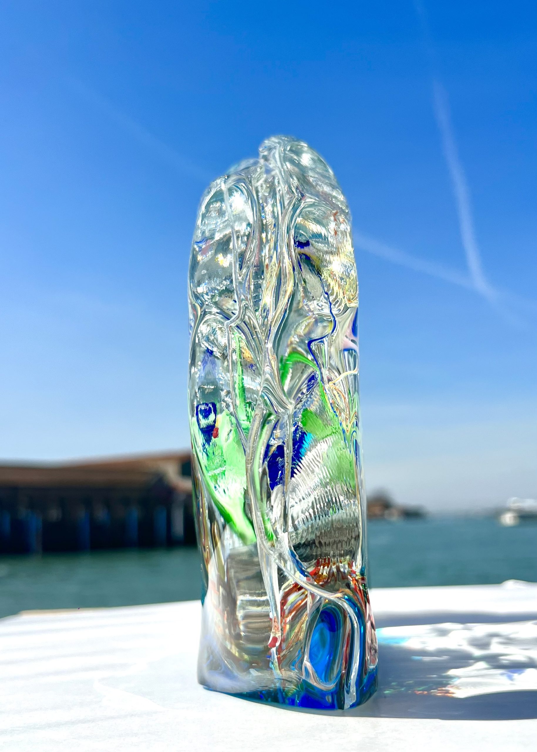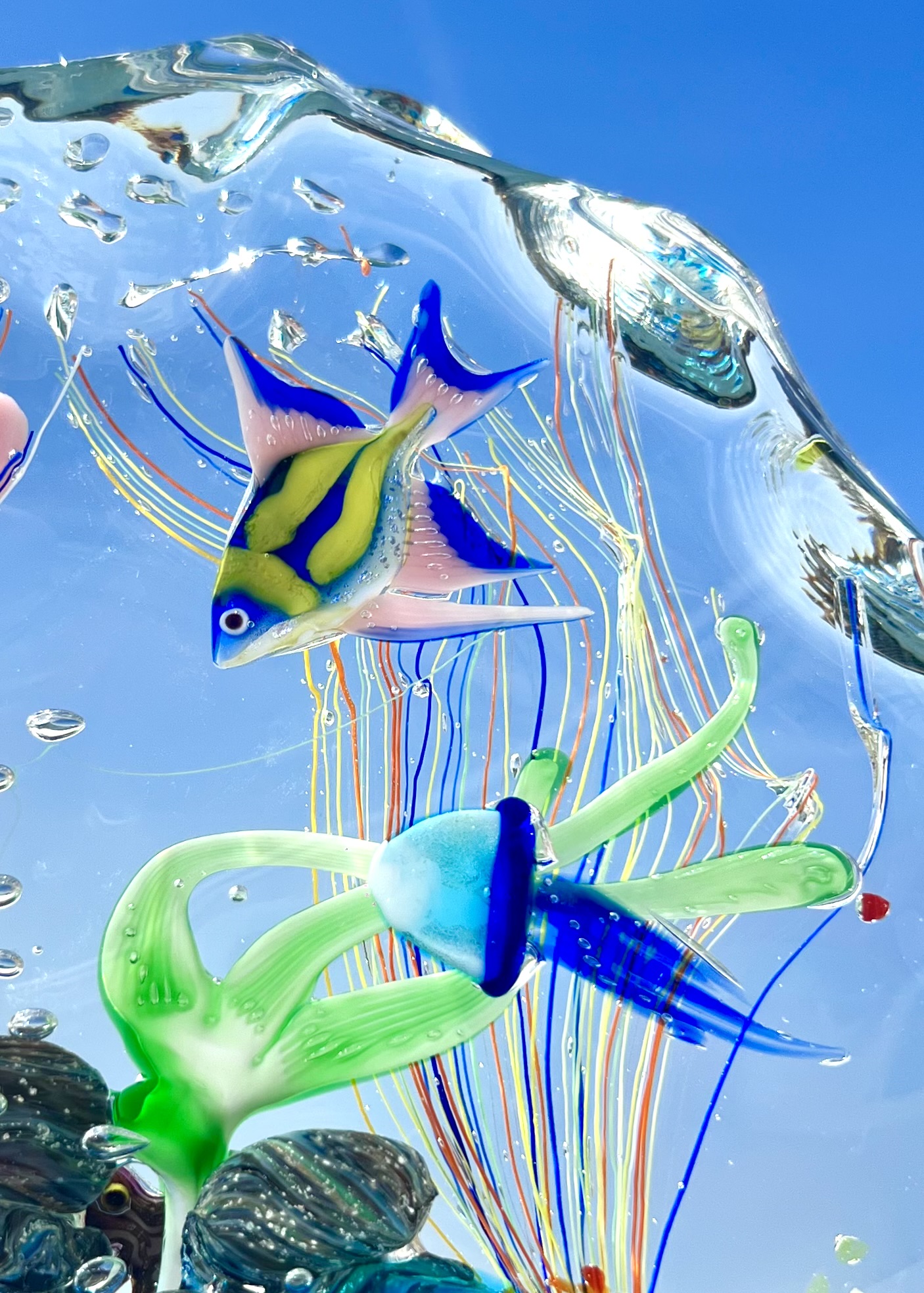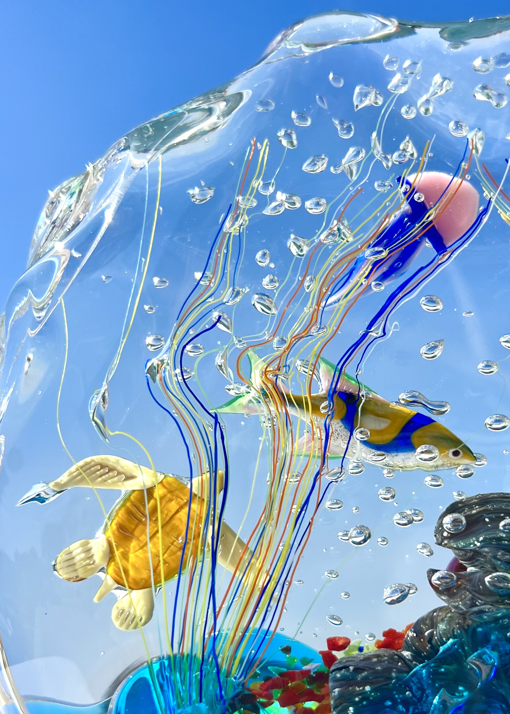 Half-moon aquarium sculpture in Murano glass.