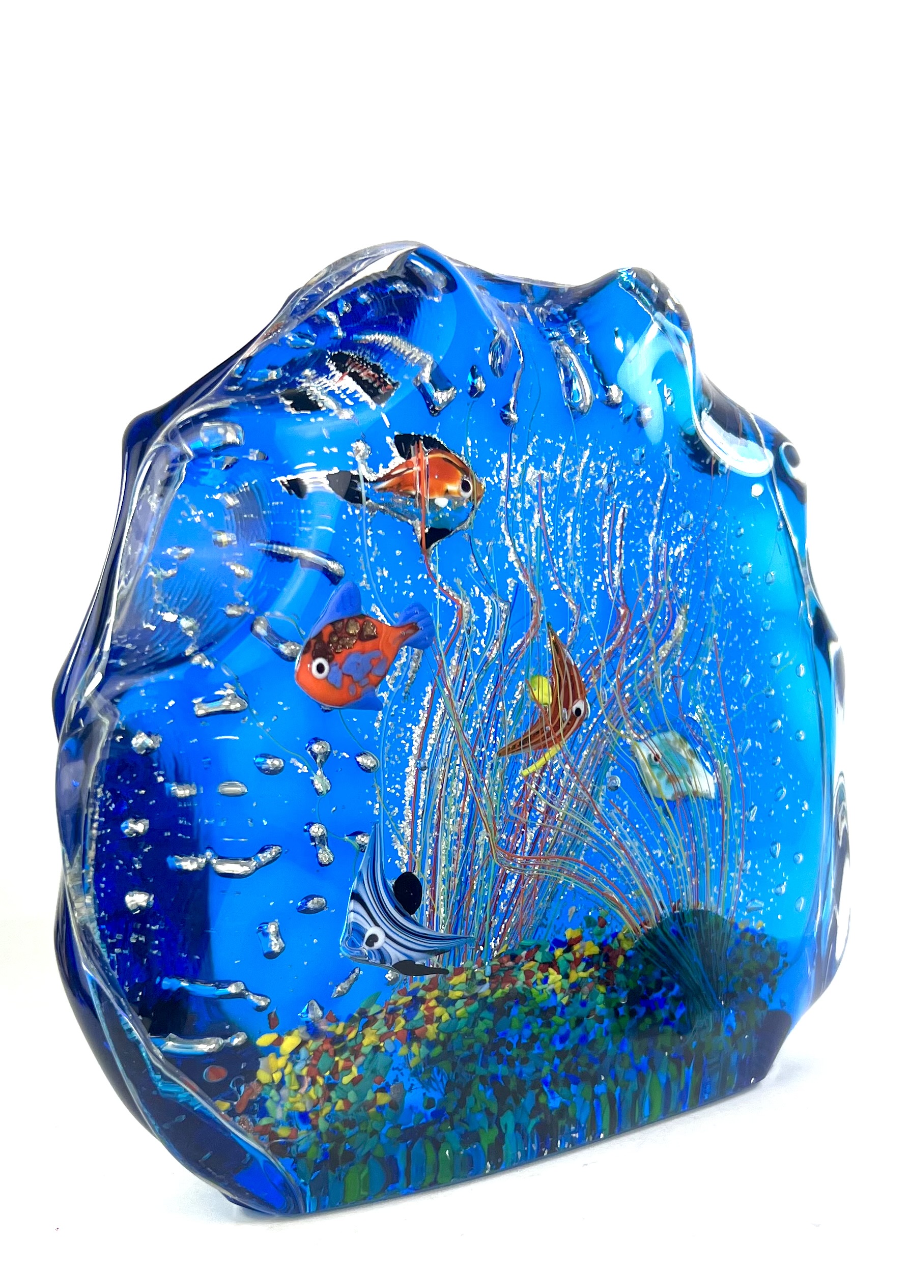 Effelle – Murano Glass Aquarium With Light Blue Background – Medium Size