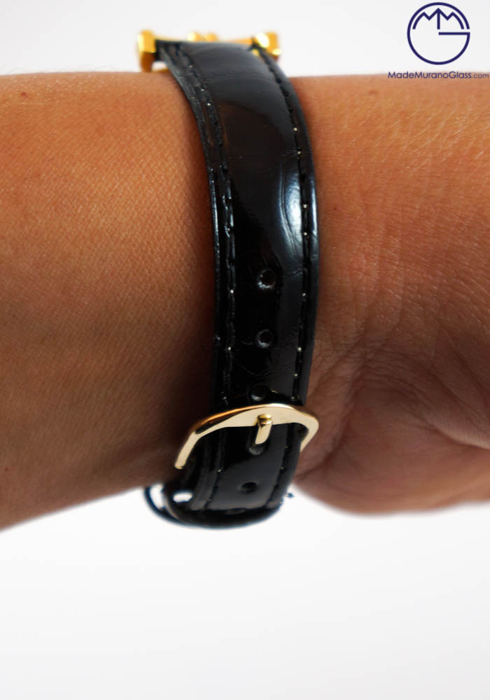 Elena – Murano Glass Wrist Watch Black With Murrina Millefiori