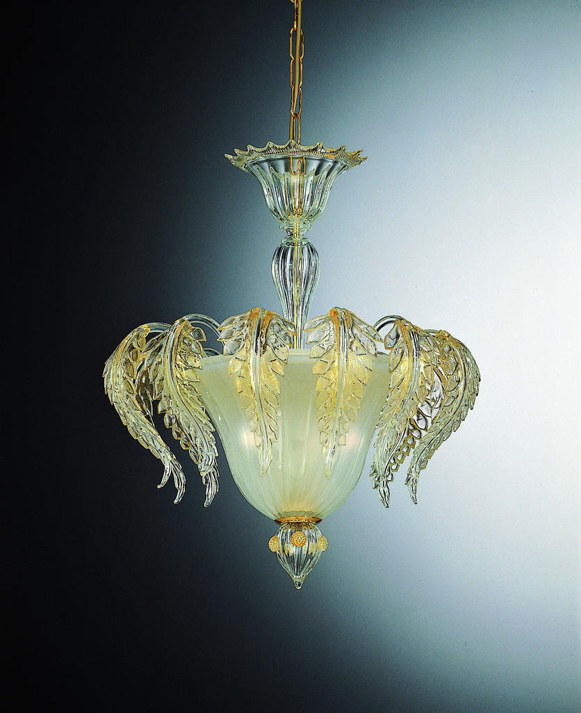 Exclusive Murano collection of ceiling lamp in Murano glass 3 lights colour crystal, decorations in gold leaf 24 carats and satin cup. Venetian glass lamps are completely carried out by the best Masters Murano artisans. They create authentic handmade works in Murano glass unique and inimitable.
