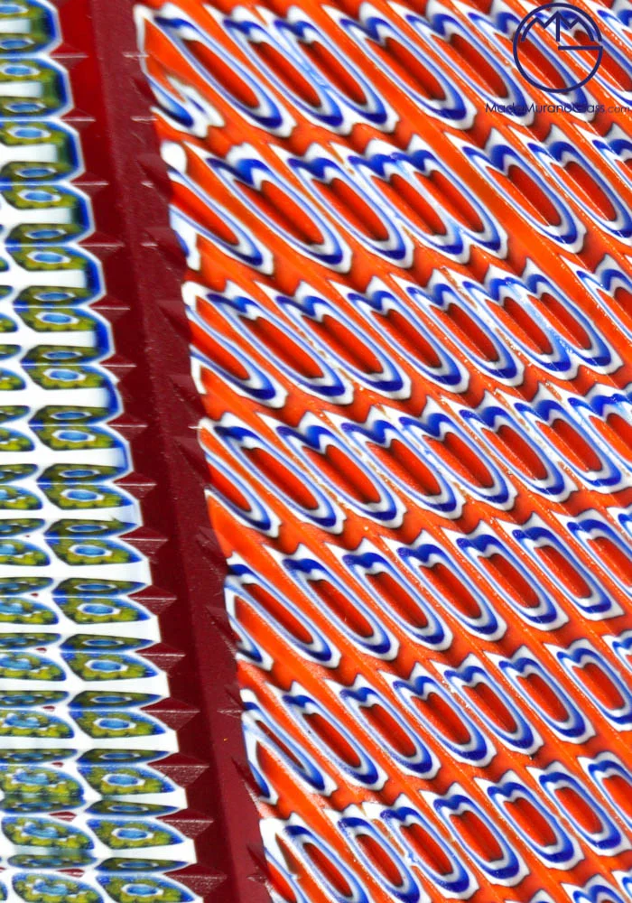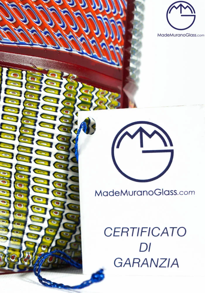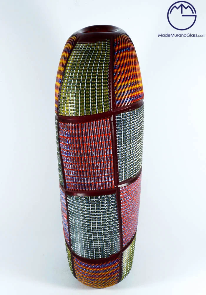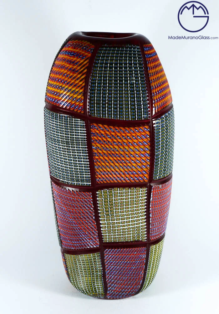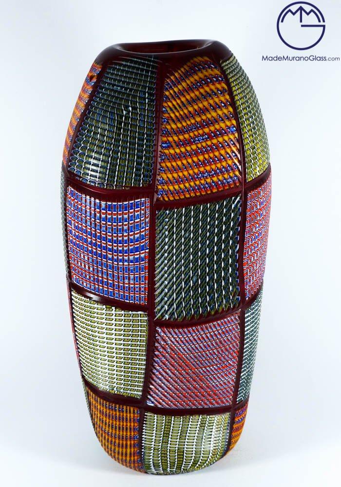 Exclusive Murano collection vases in Murano glass with multicolour Murrine. Processing is called “engraved” by Murano artisans which engrave each piece in a long and meticulous way. Each item is produced with Murano glass and each piece is slightly different from other ones due to its handcrafted characteristic.