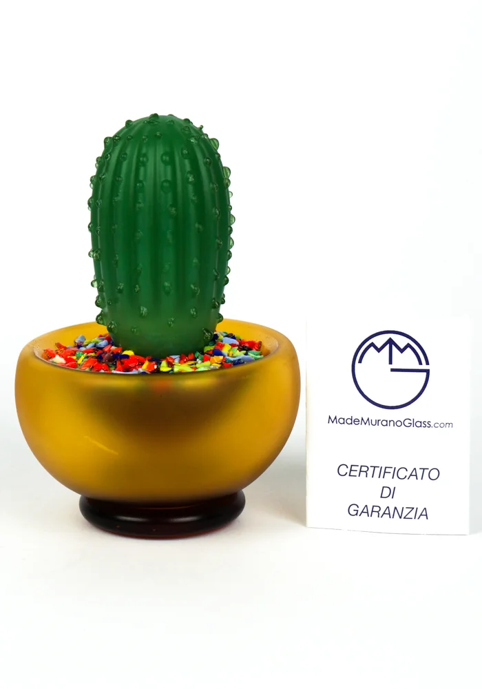 This artwork represent a plant of Cactus made in Murano glass, handmade by our Venetian glassmakers.
