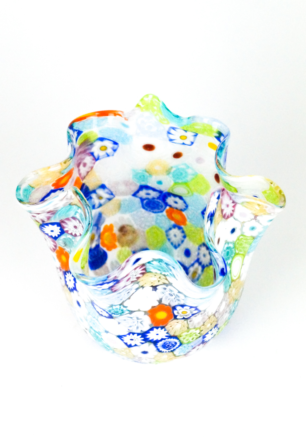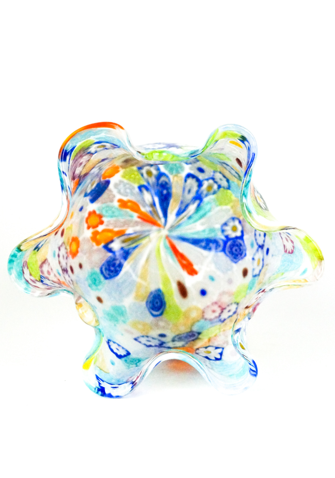 Fantastic Murano blown glass vase made with millefiori murrina.