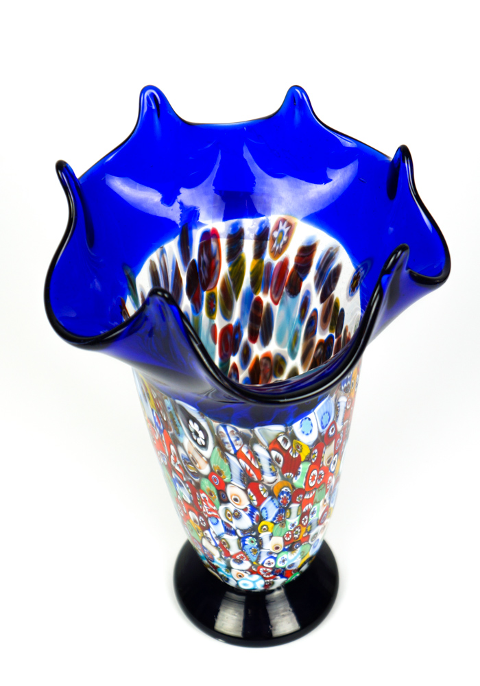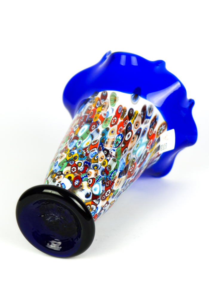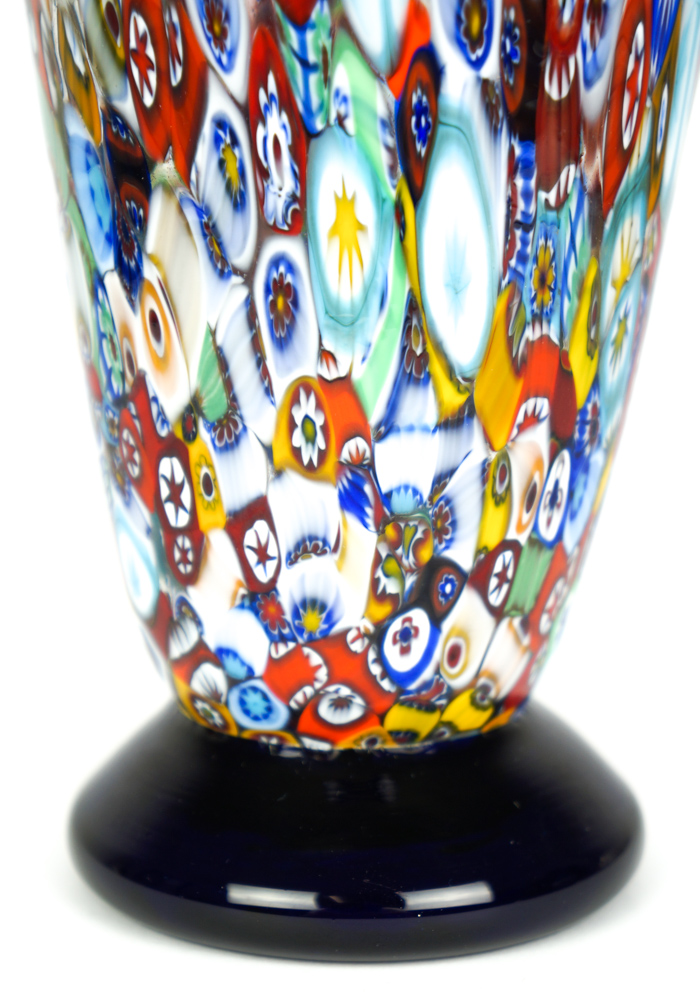 Dori is a Murano glass Vase red with decorations in Murrina Millefiori.