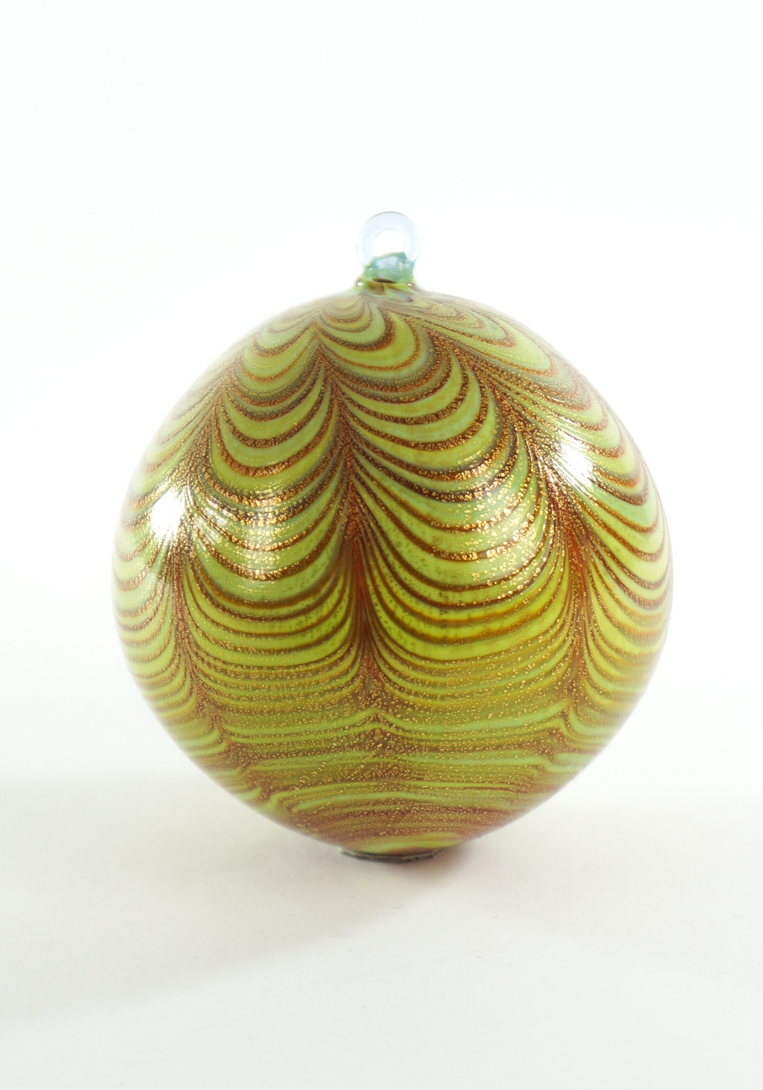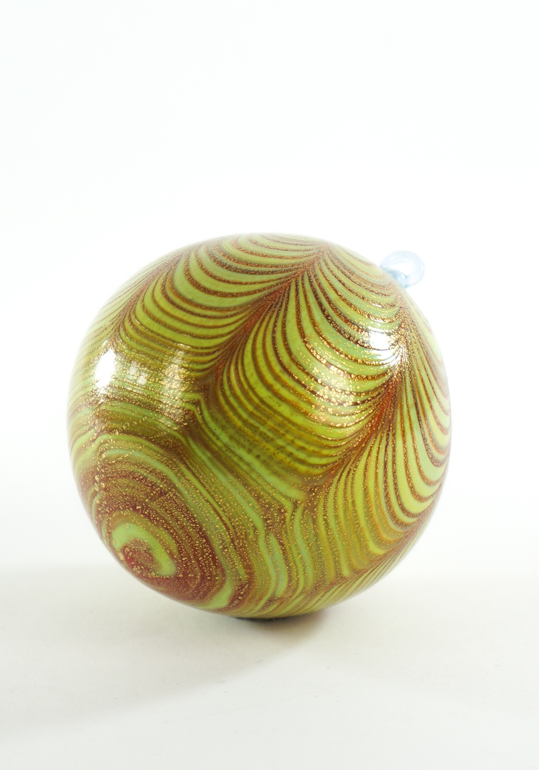 Green Murano Glass Christmas Ball Fenicio with decorations in Real Gold leaf 24kt.