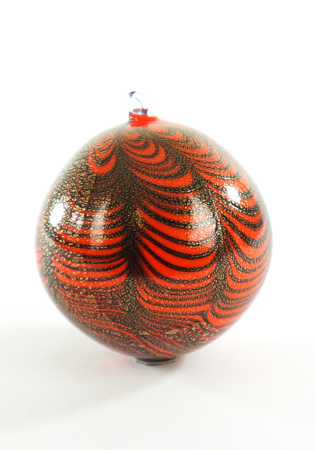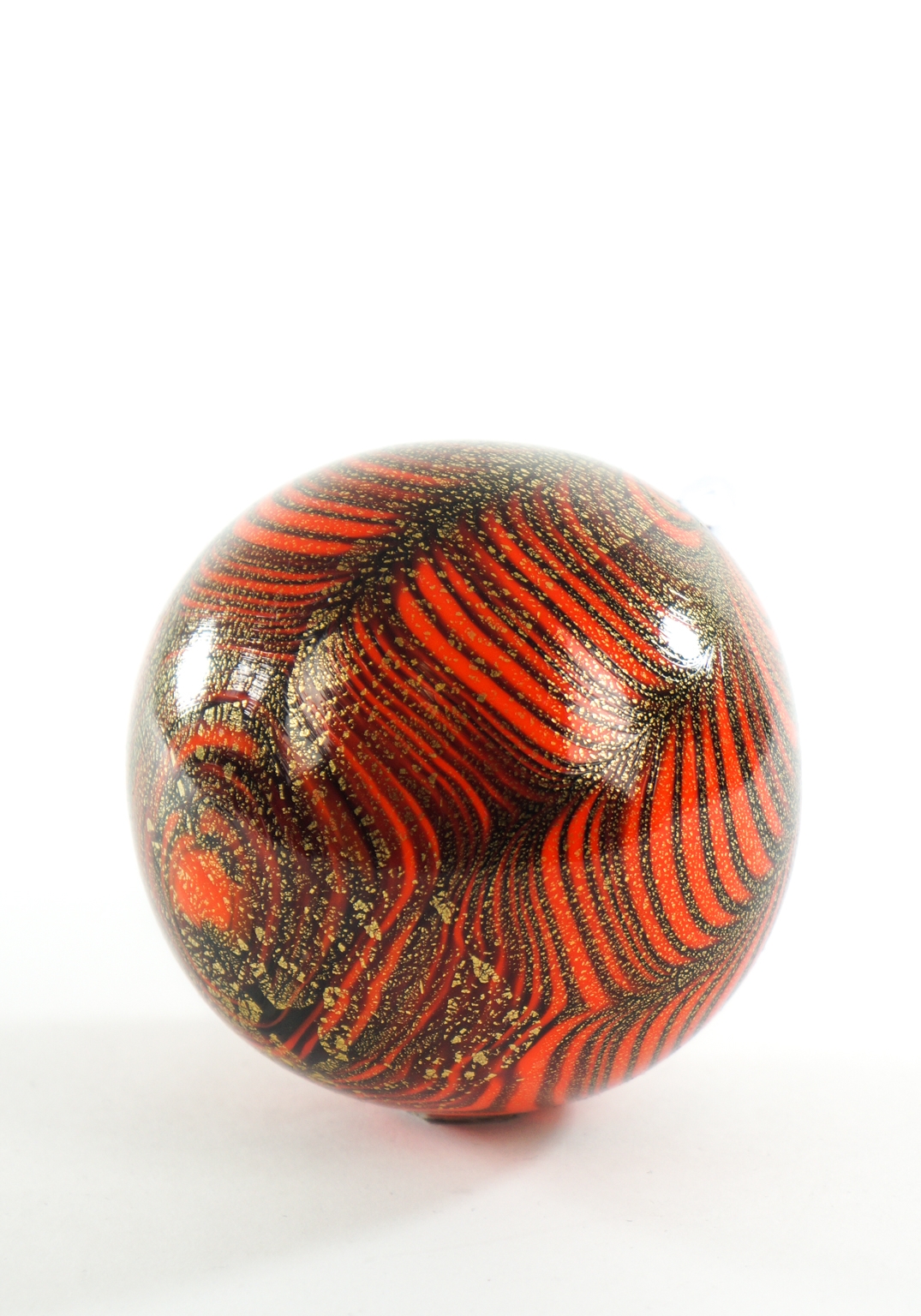 Orange Murano Glass Christmas Ball Fenicio with decorations in Real Gold leaf 24kt.