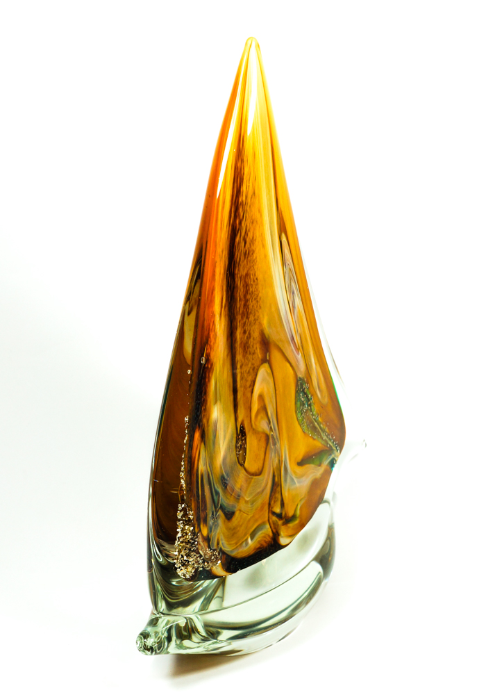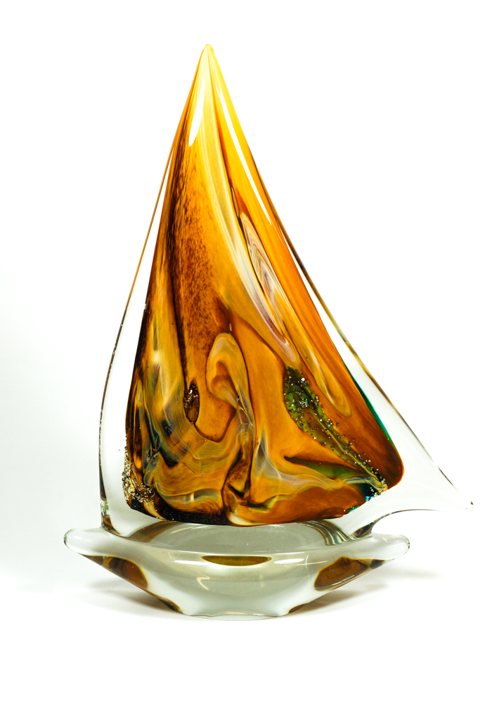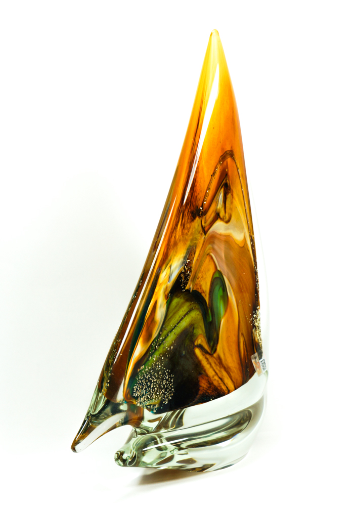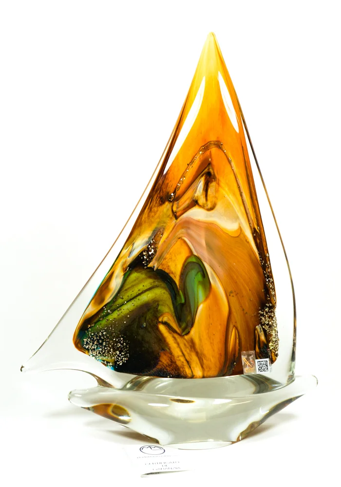 Fores – Murano Glass Sailboat Amber Green Chalcedony