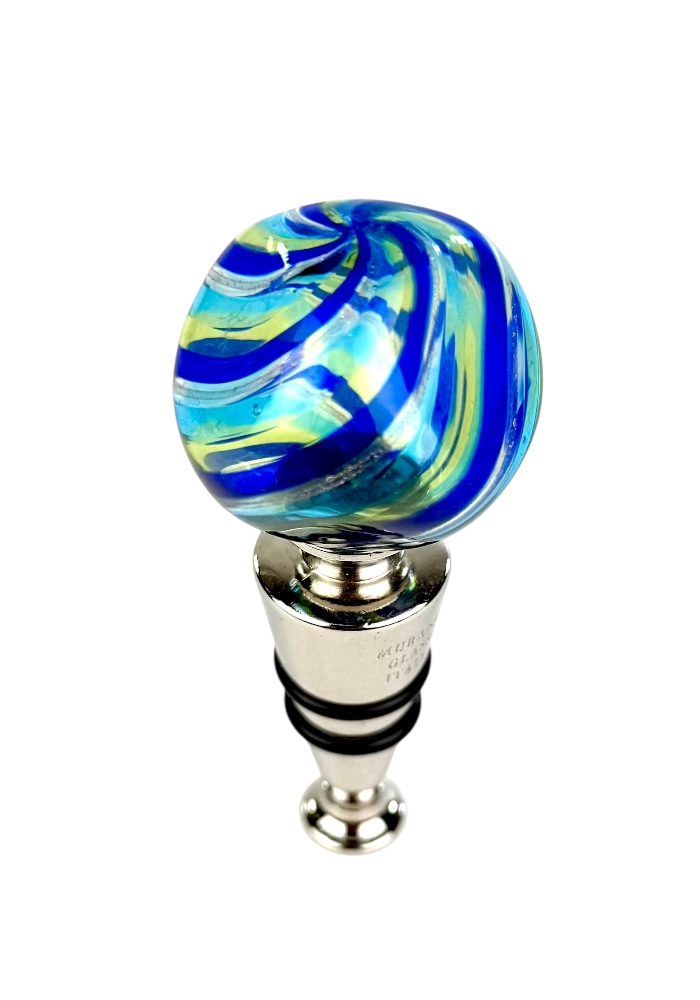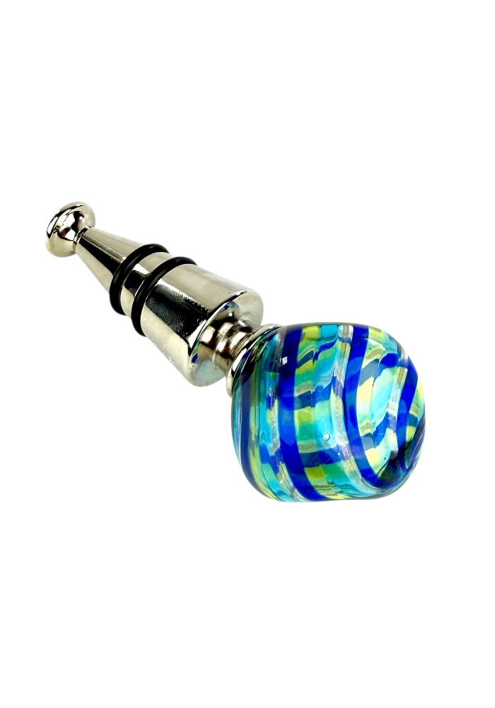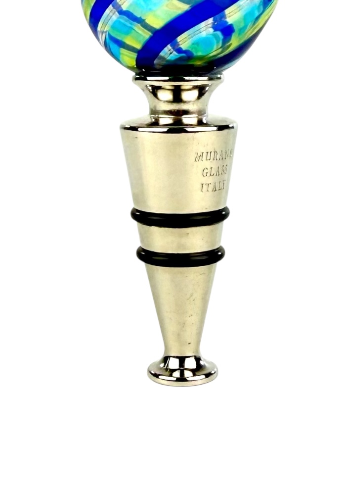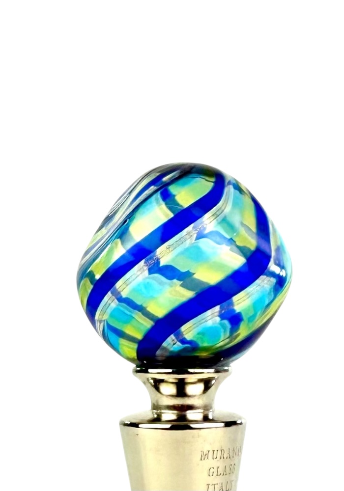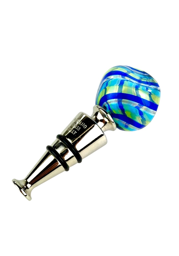 Murano glass bottle stopper with blue, light green, light blue and aventurine kanne.