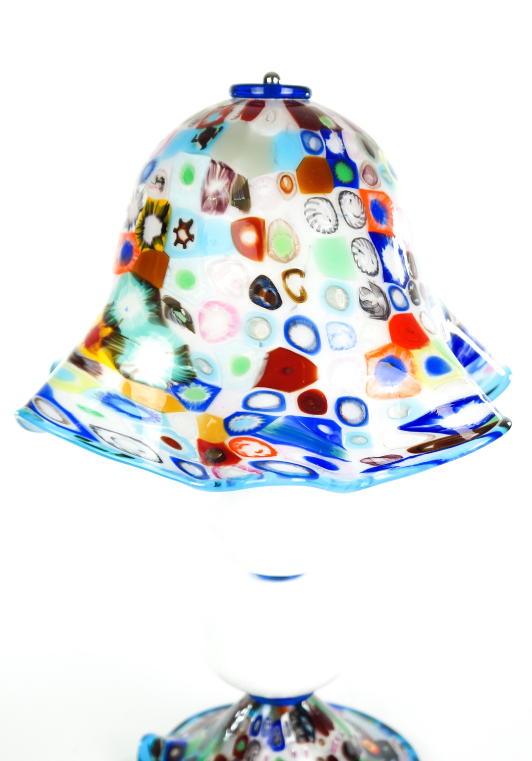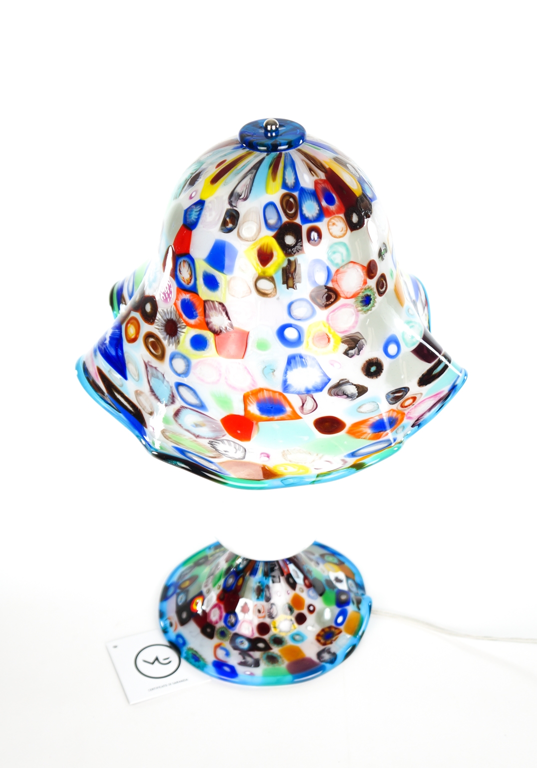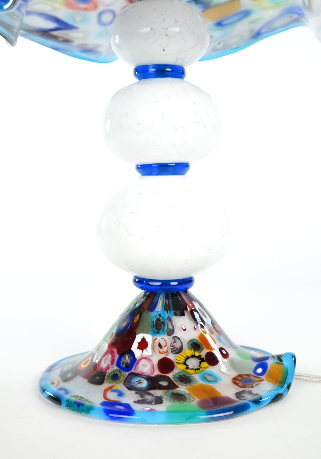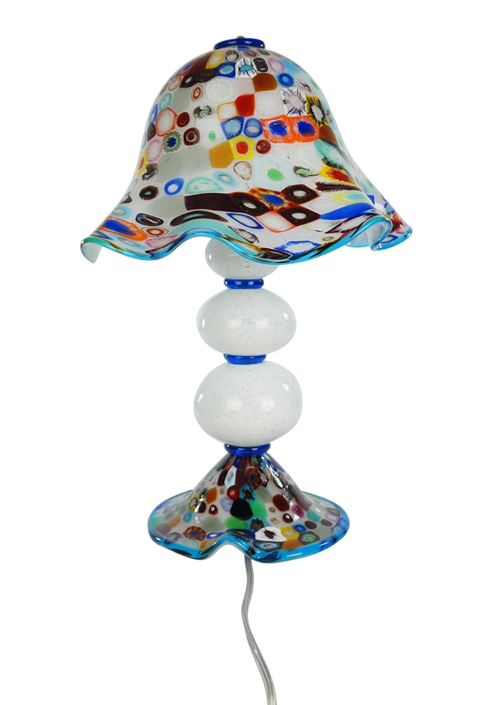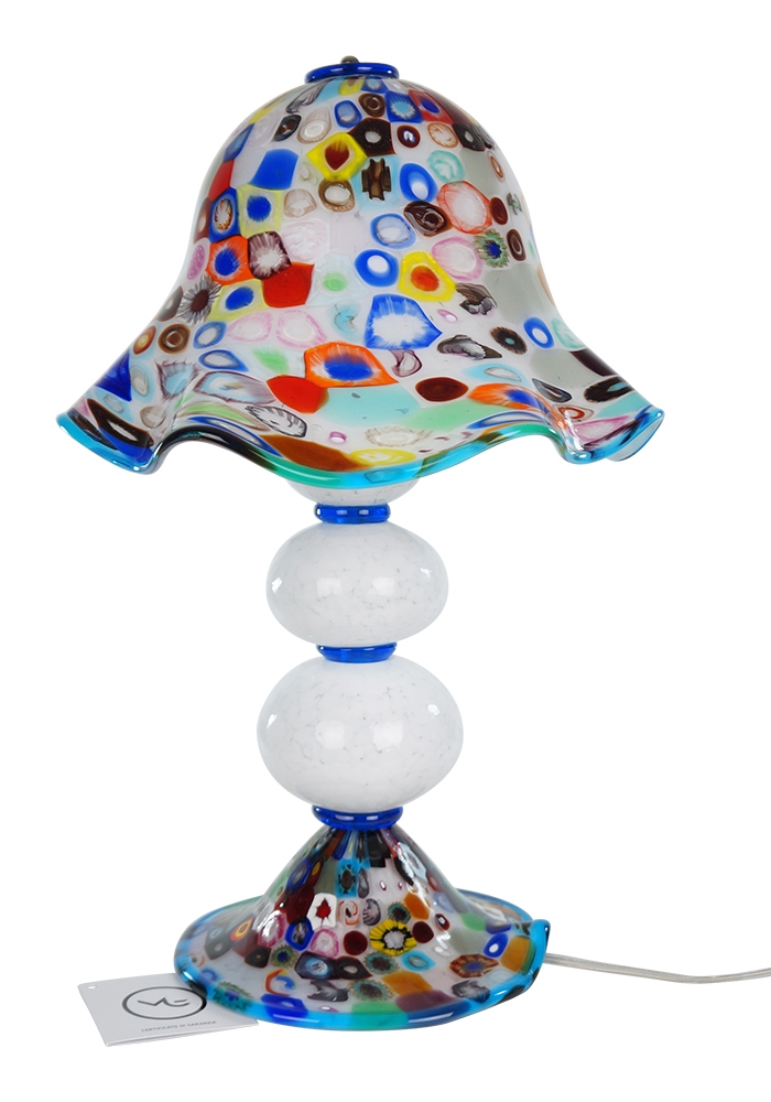 Murano Glass Table Lamp with 1 light entirely handmade in Murrina Millefiori decoration and three white spheres.