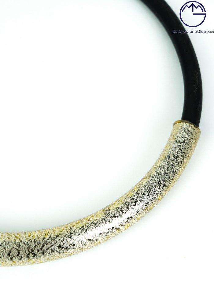Fantastic and elegant Venetian glass necklace in silver leaf.
