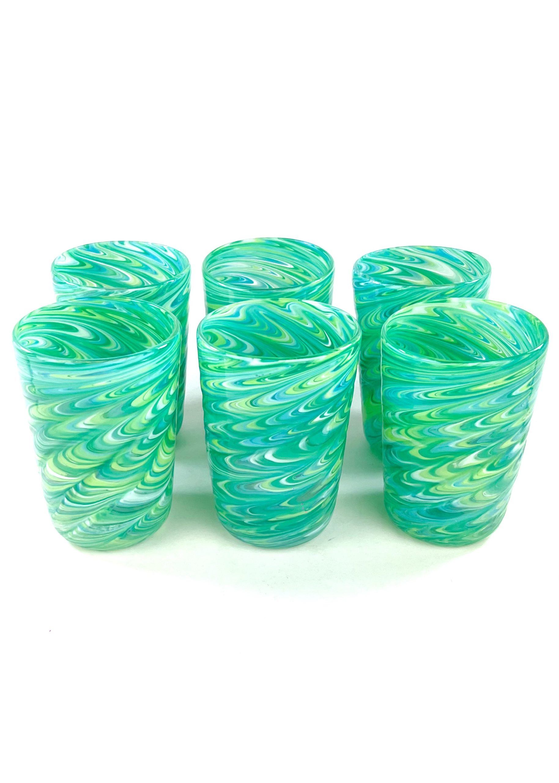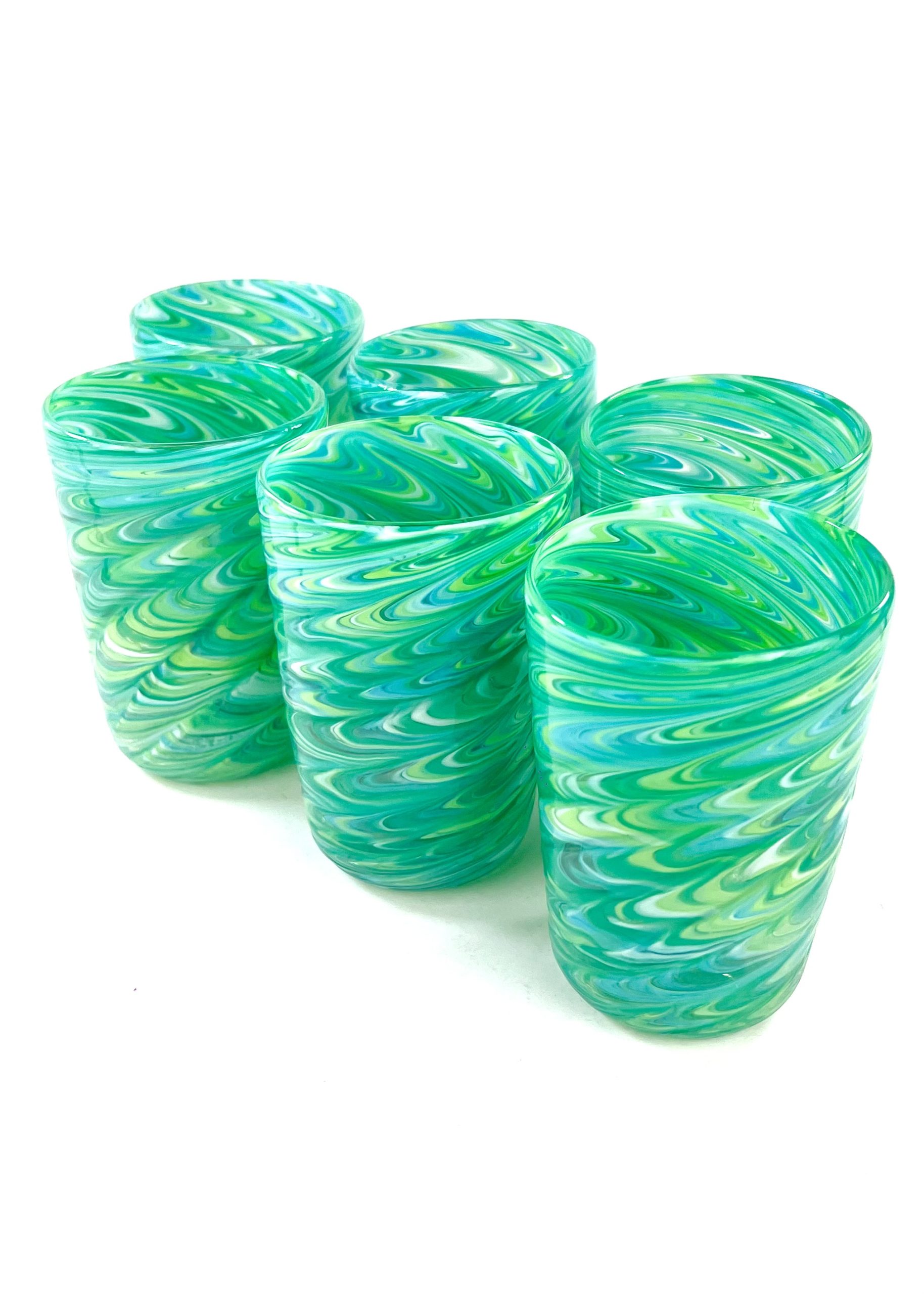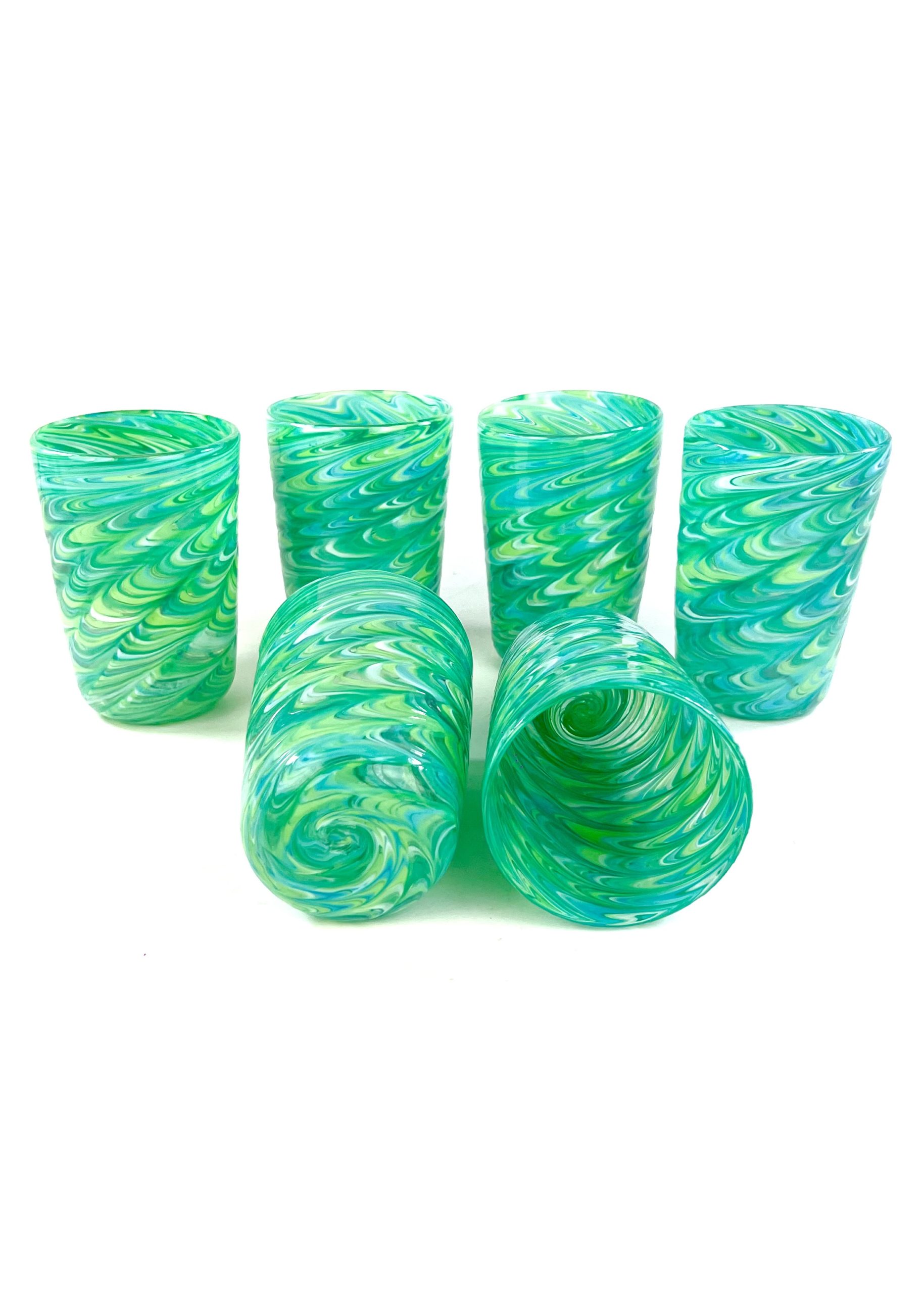 Happier – Set Of Six Green Murano Drinking Glasses “Tornado”