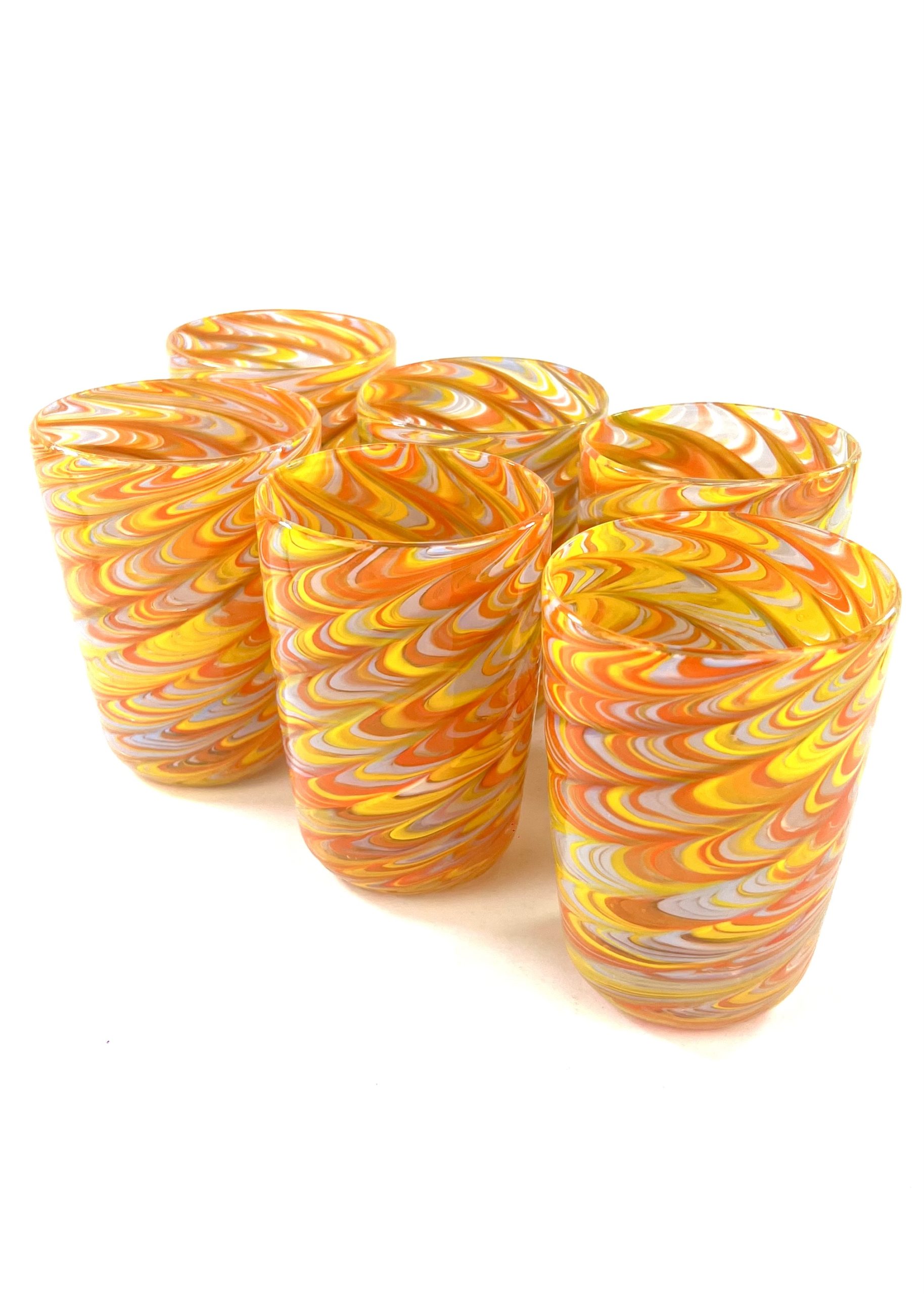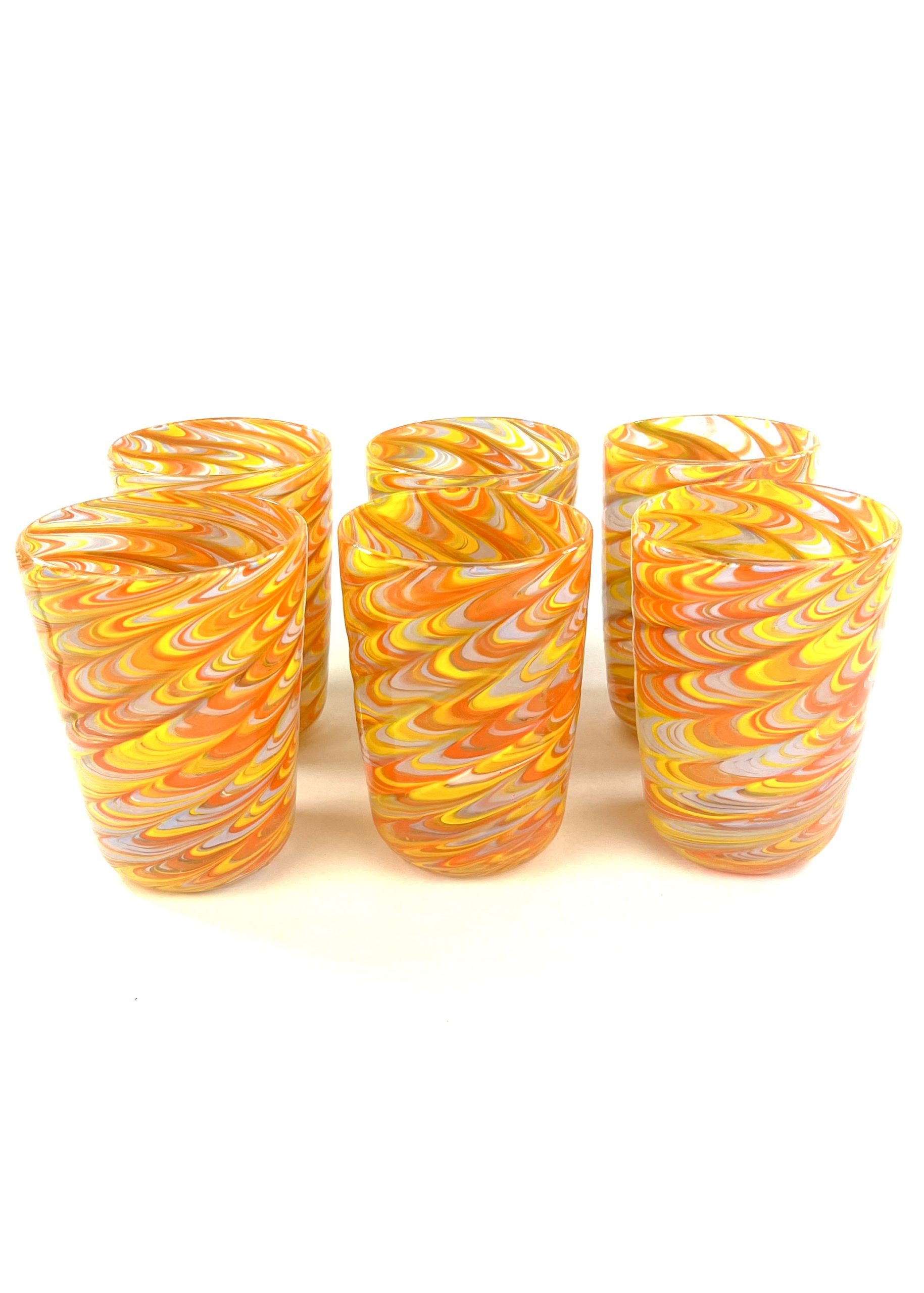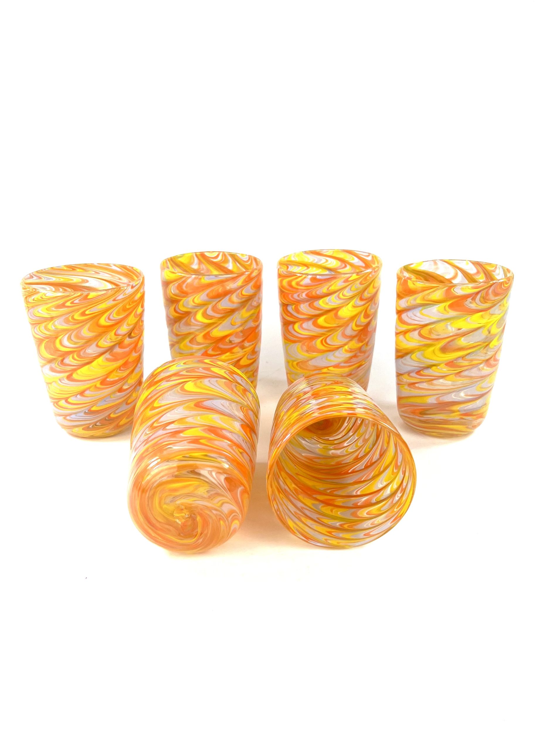 Happier – Set Of Six Orange Murano Drinking Glasses “Tornado”