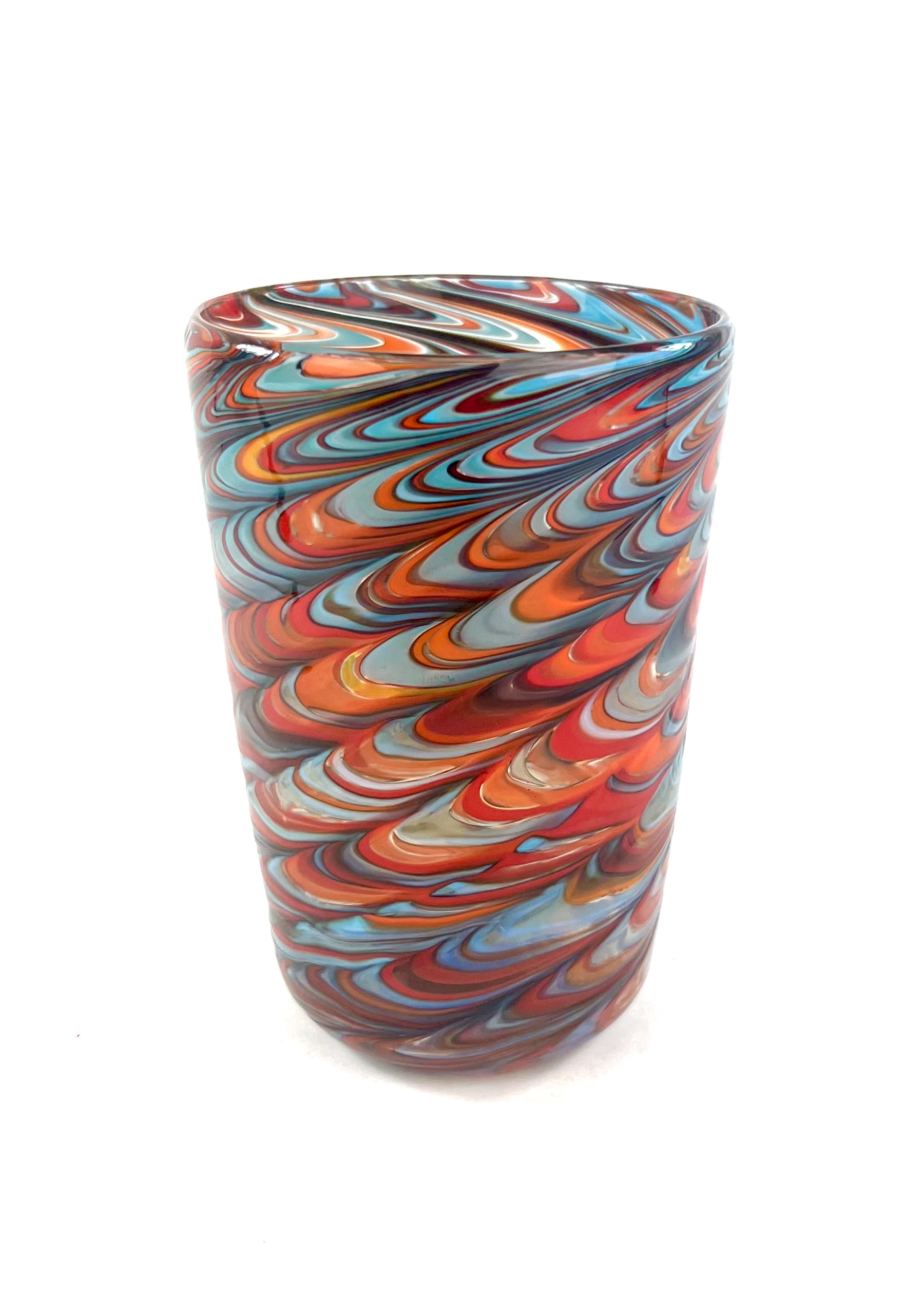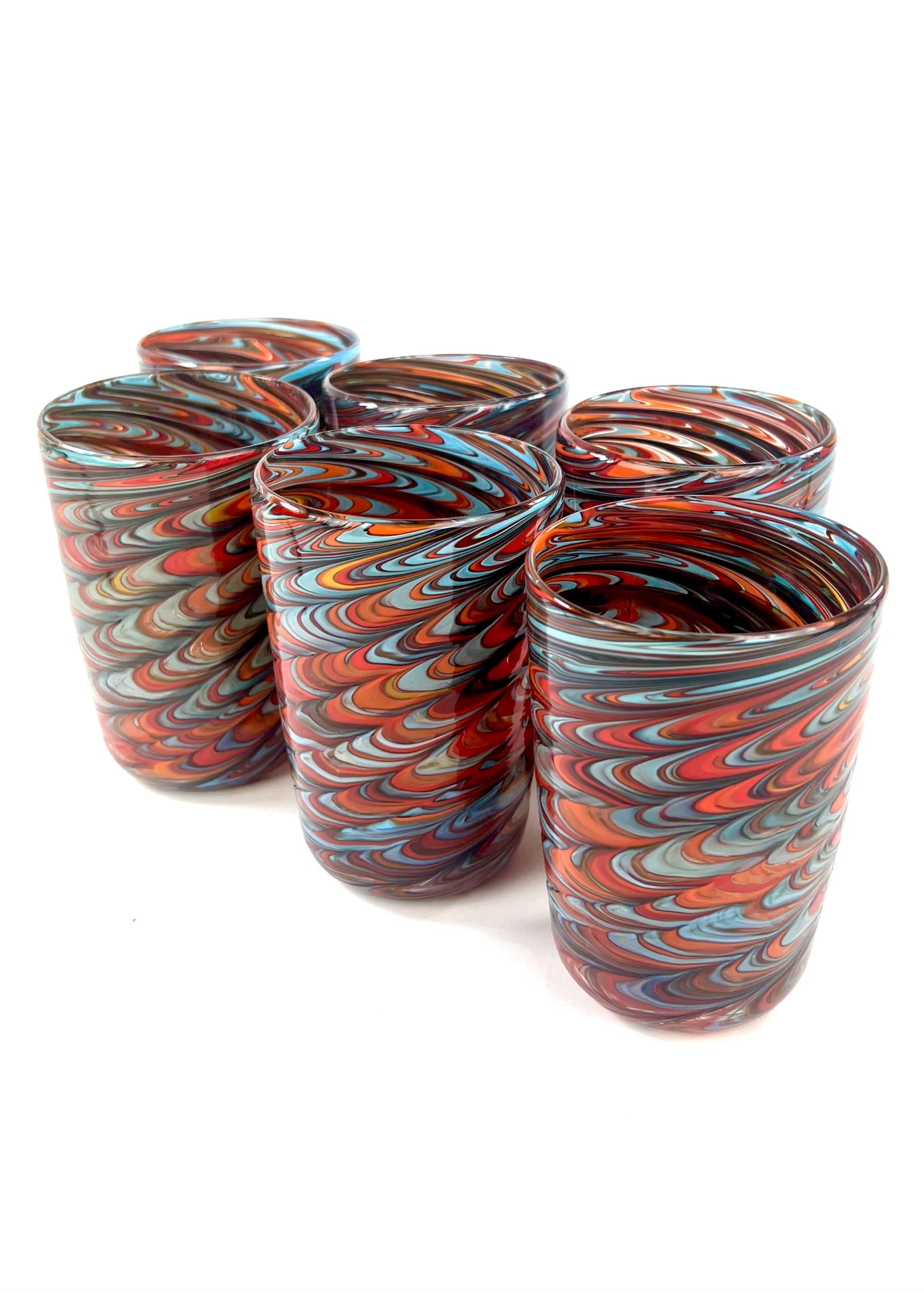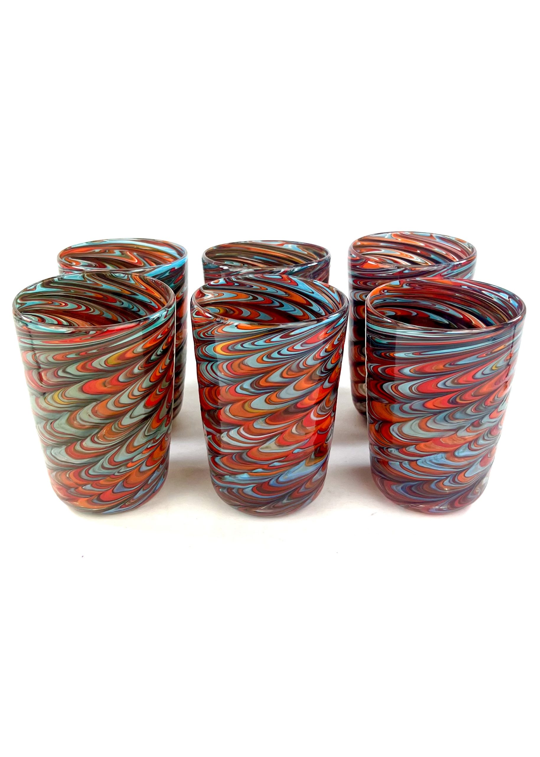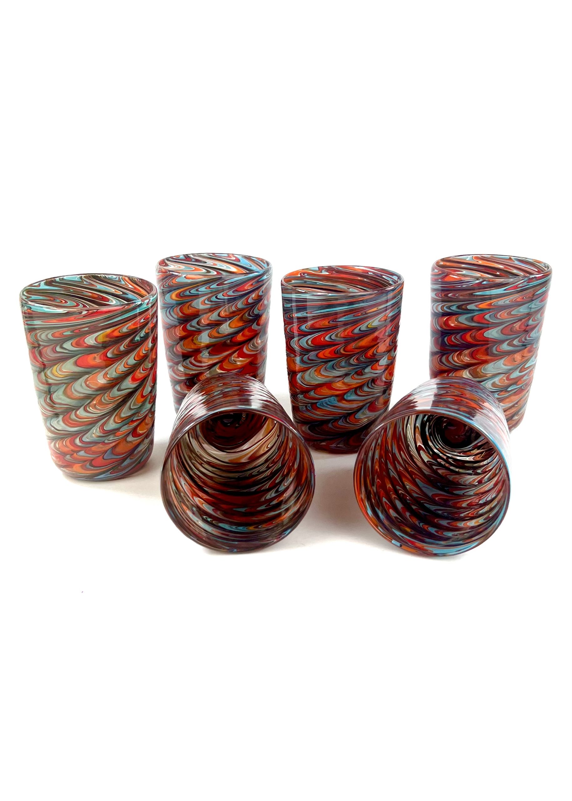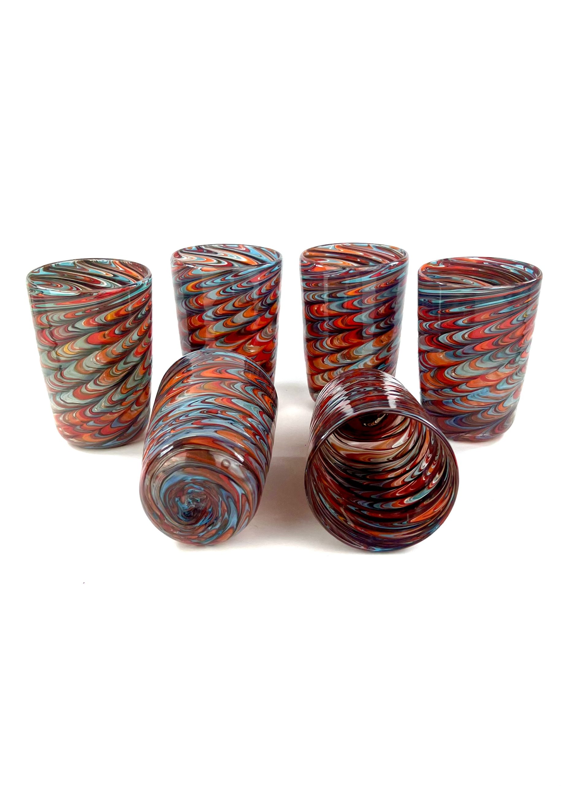 Happier – Set Of Six Red Murano Drinking Glasses “Tornado”