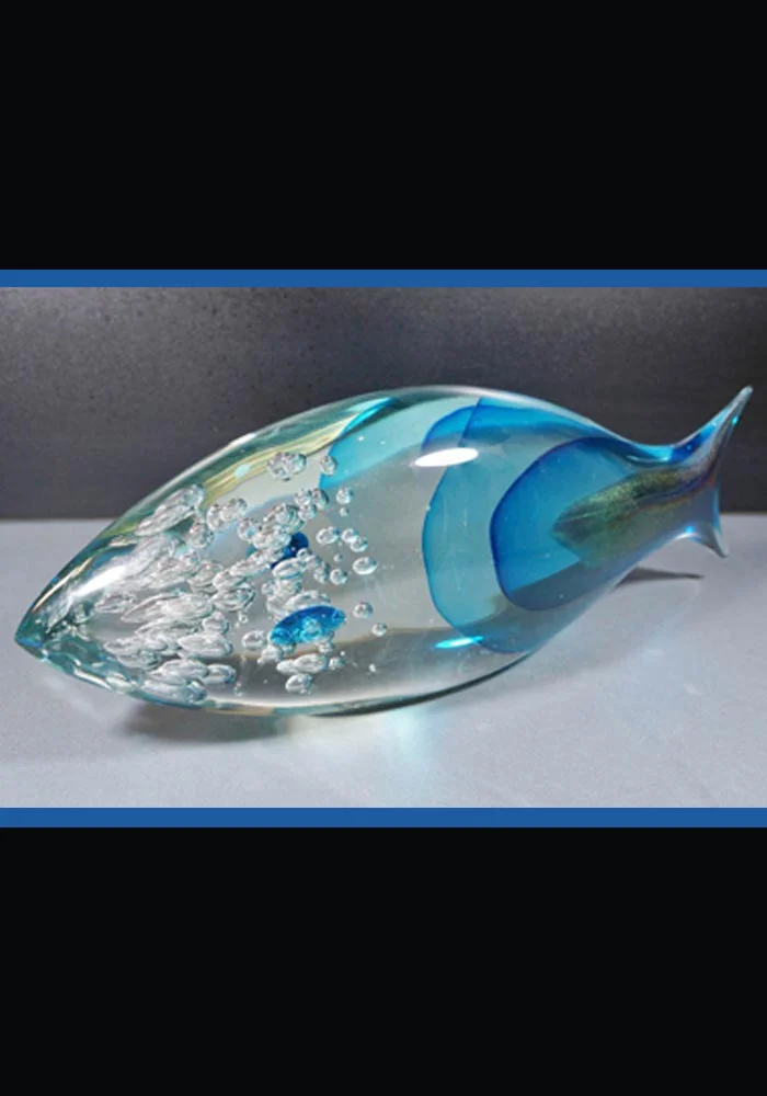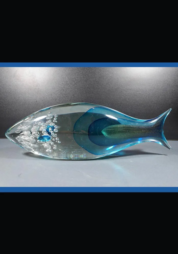 Fantastic Murano glass fish color crystal and blue performed with two techniques: