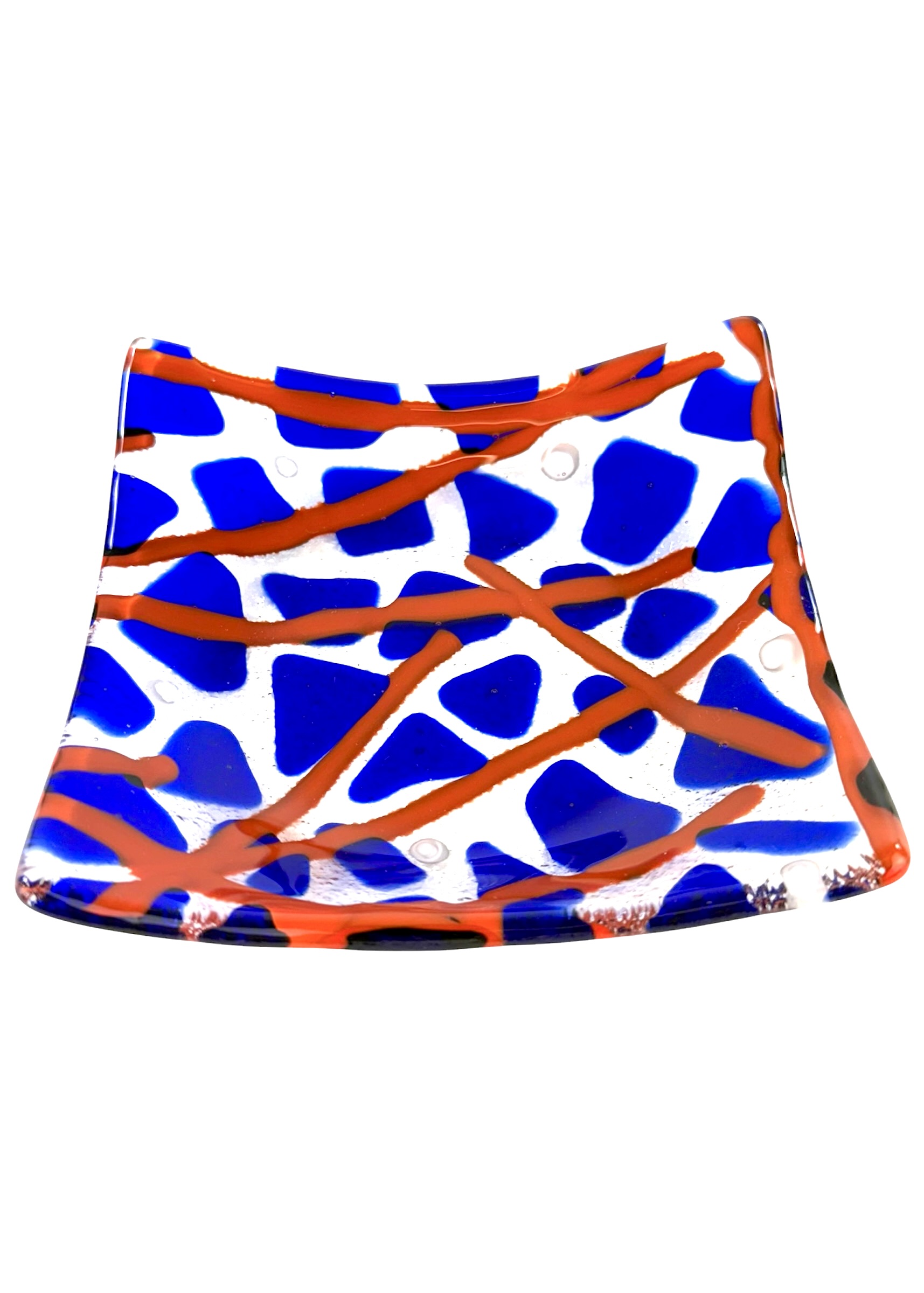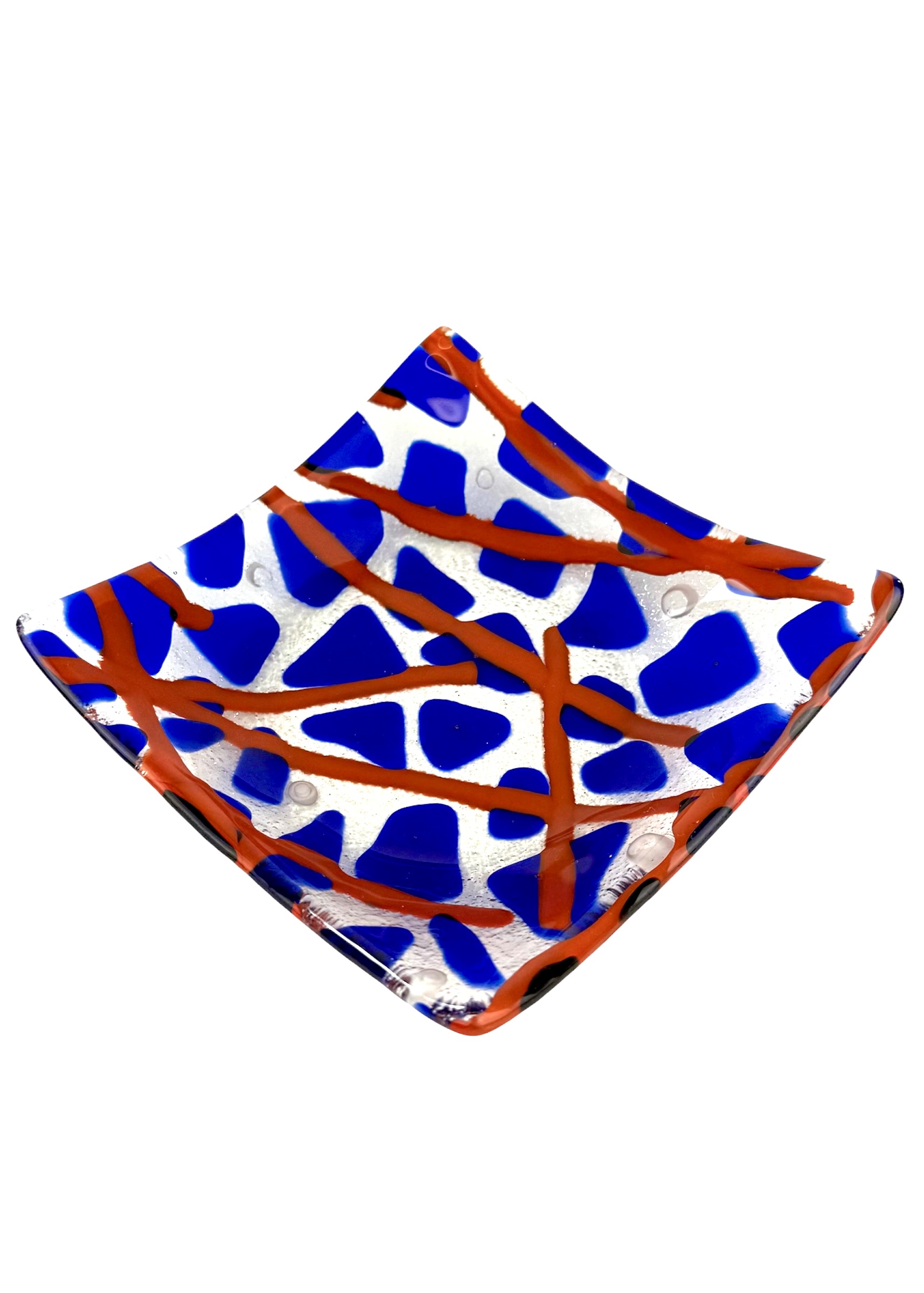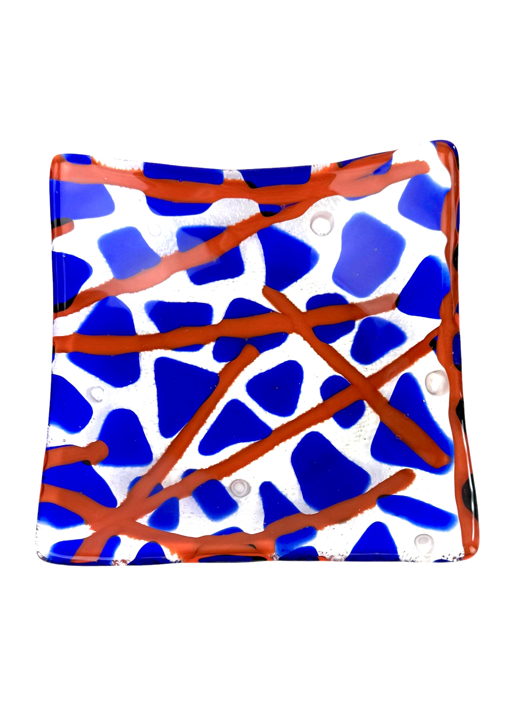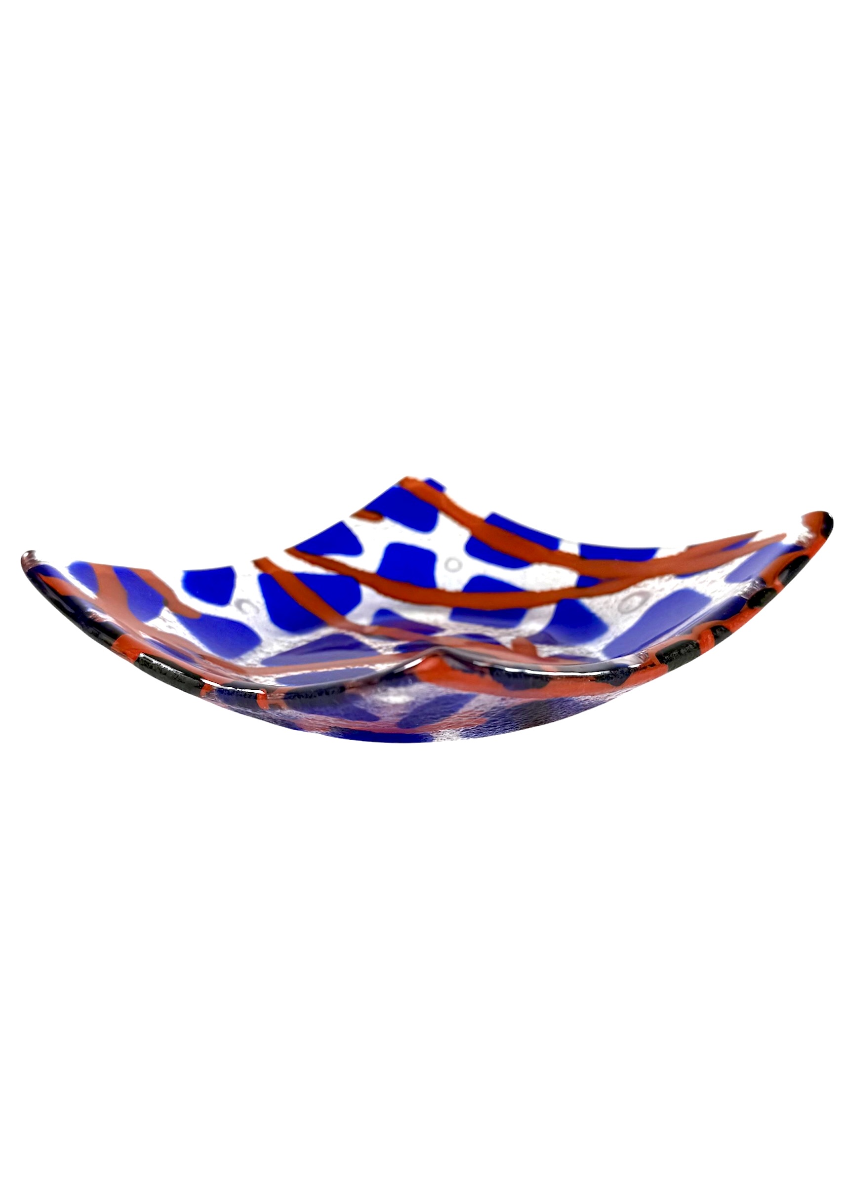 Liam – Blue Murano Glass Plate With Red Kanne “Houston”