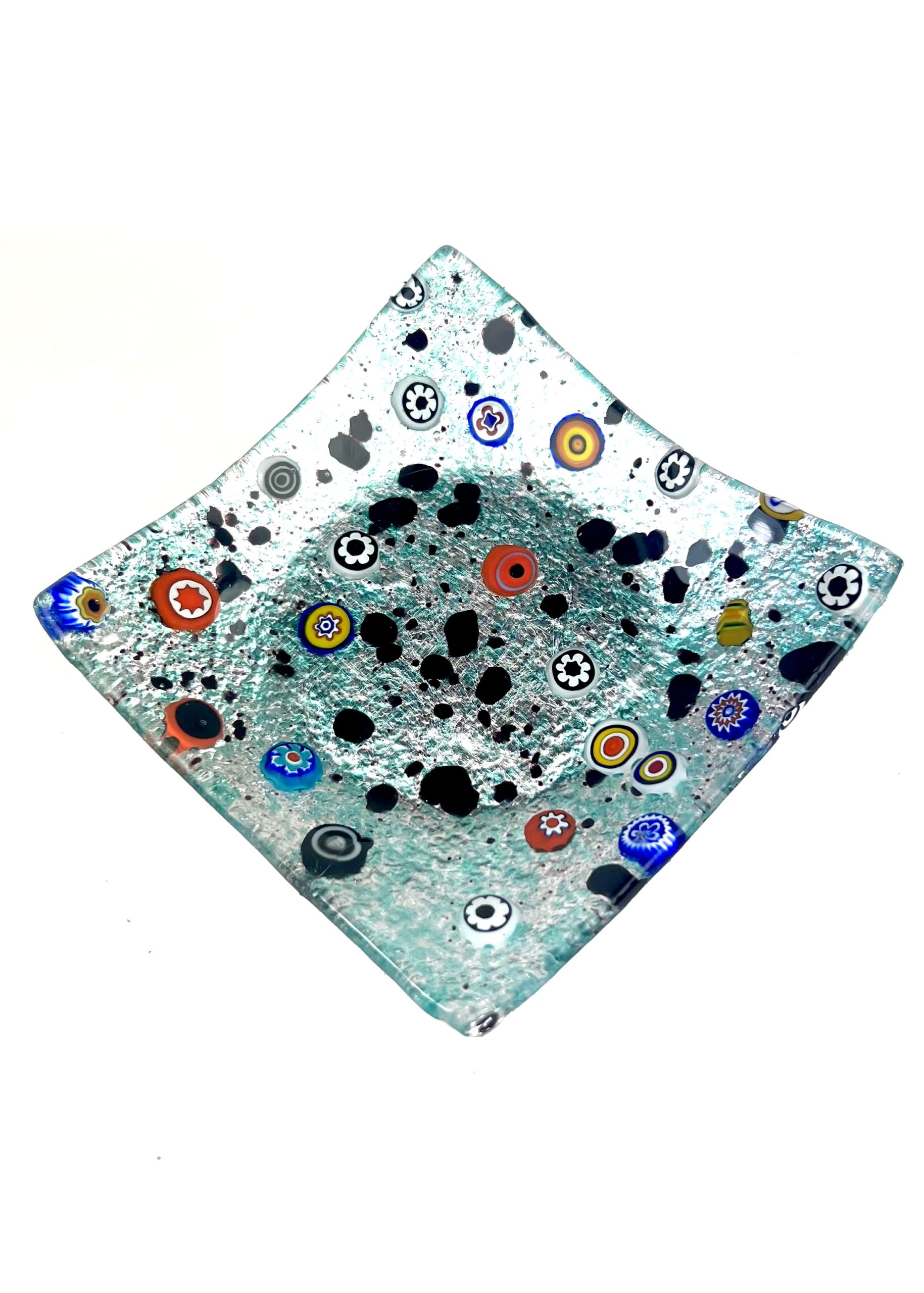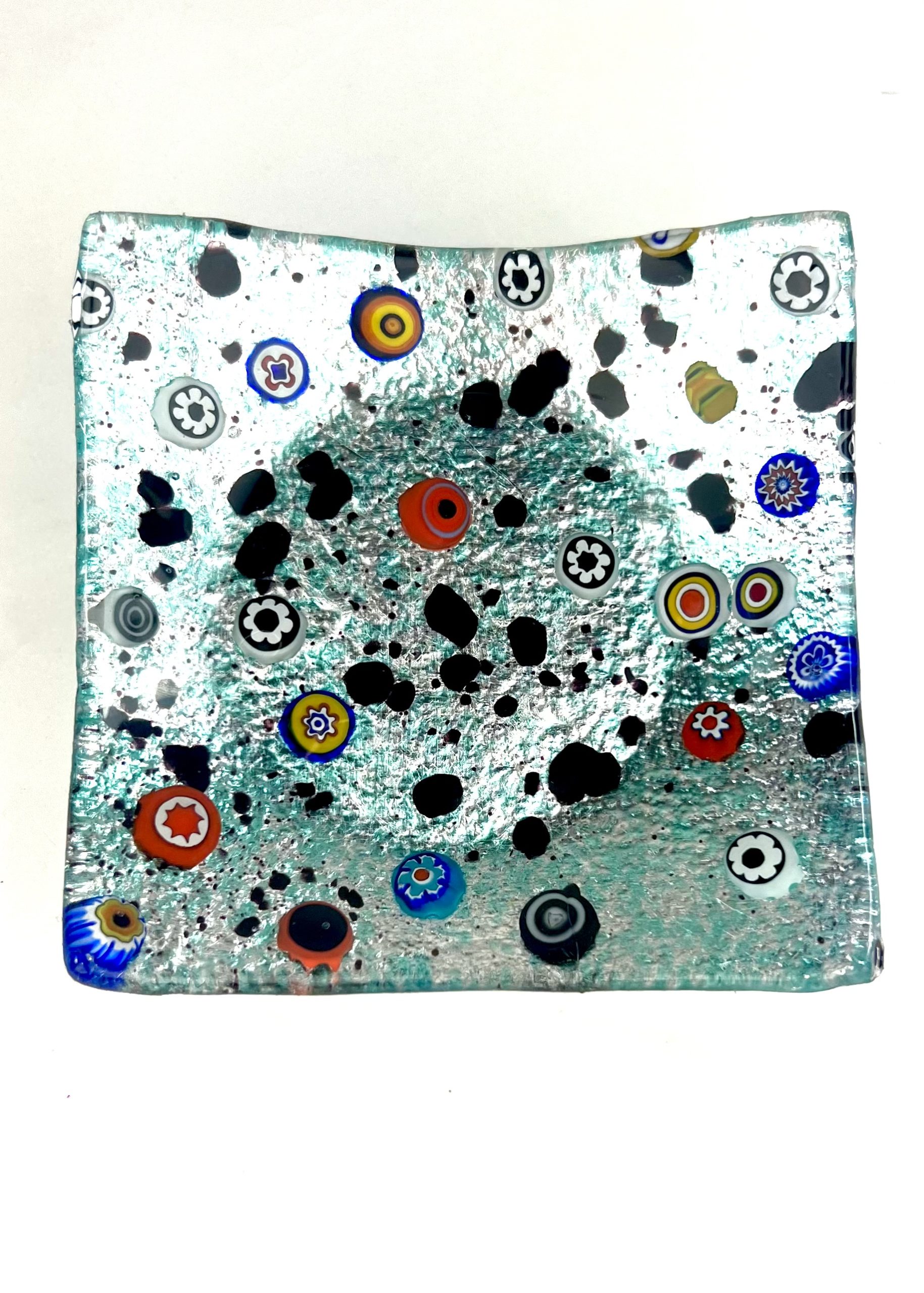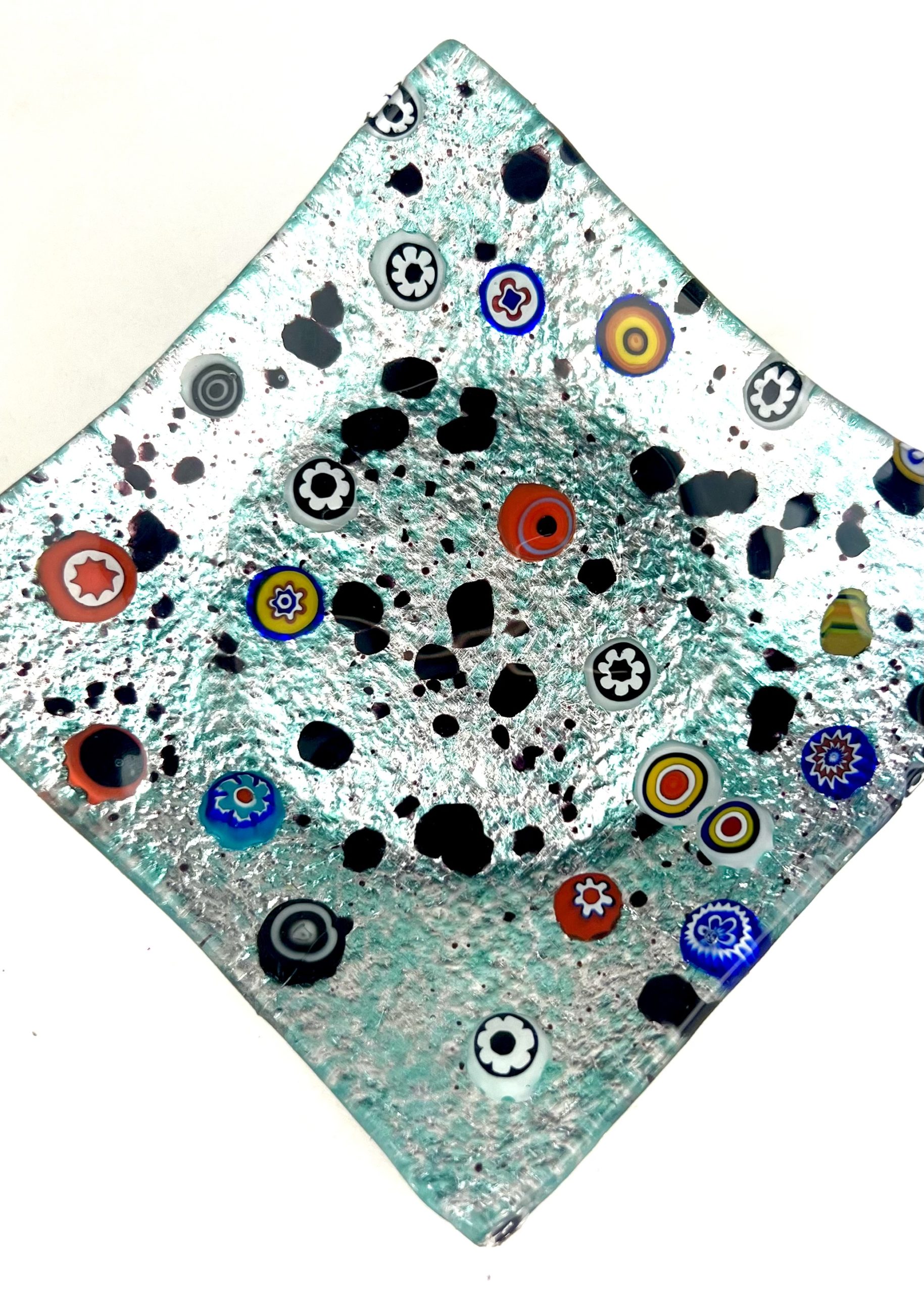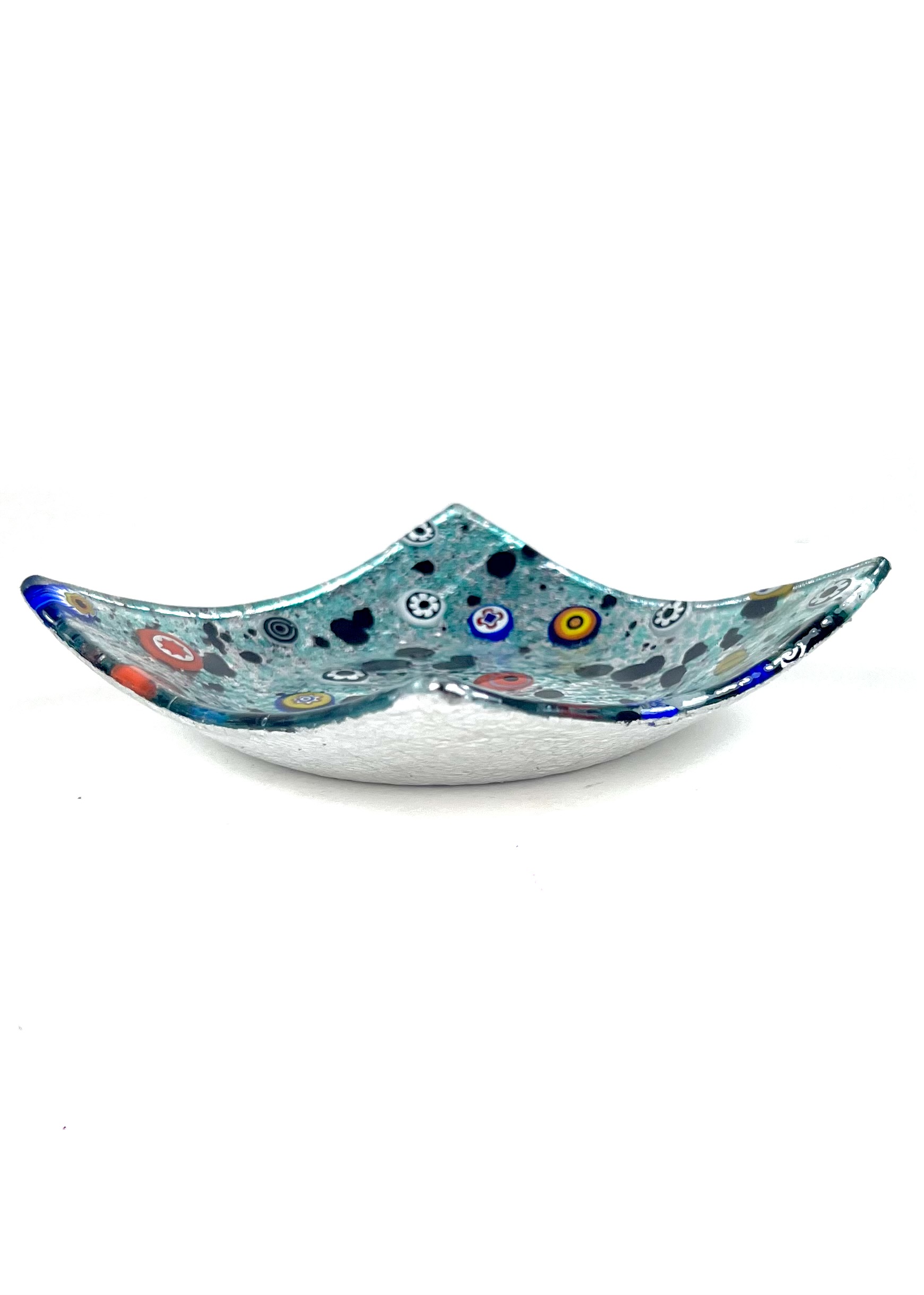 Liam – Marine Green Murano Glass Plate With Silver “New York”