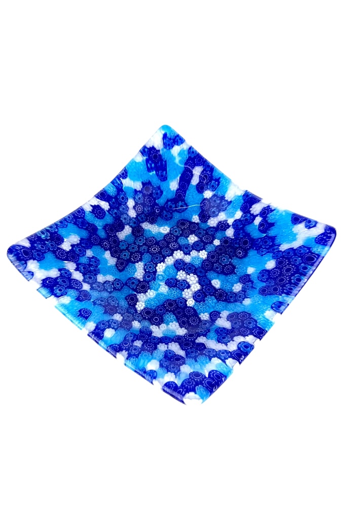 Liam – Mix Blue Murrina Millefiori Murano Glass Plate “Linda”