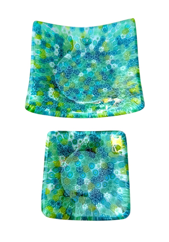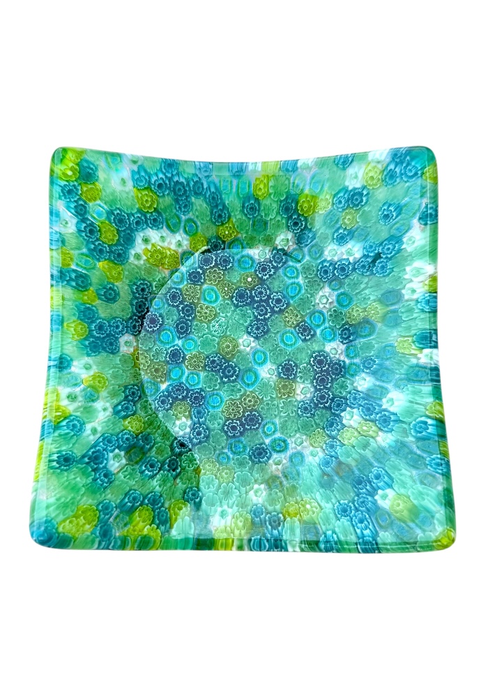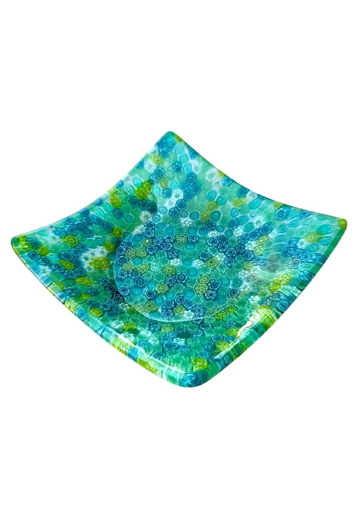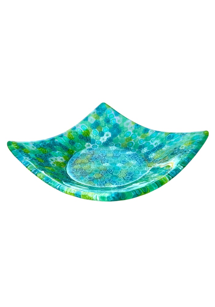 Liam – Mix Green Murrina Millefiori Murano Glass Plate “Linda”
