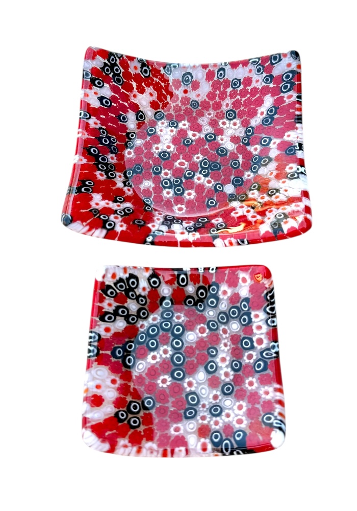 Liam – Mix Red Murrina Millefiori Murano Glass Plate “Linda”