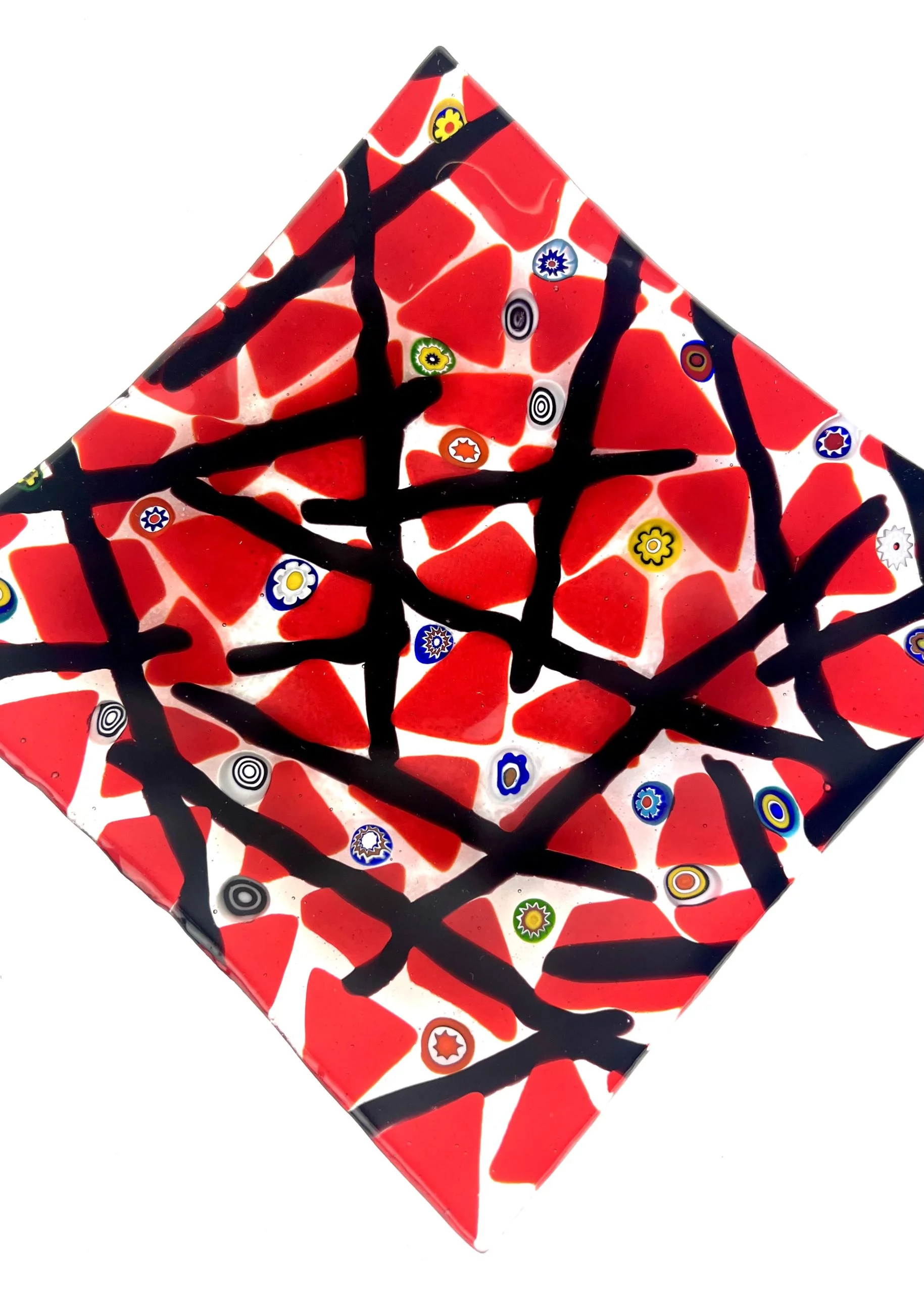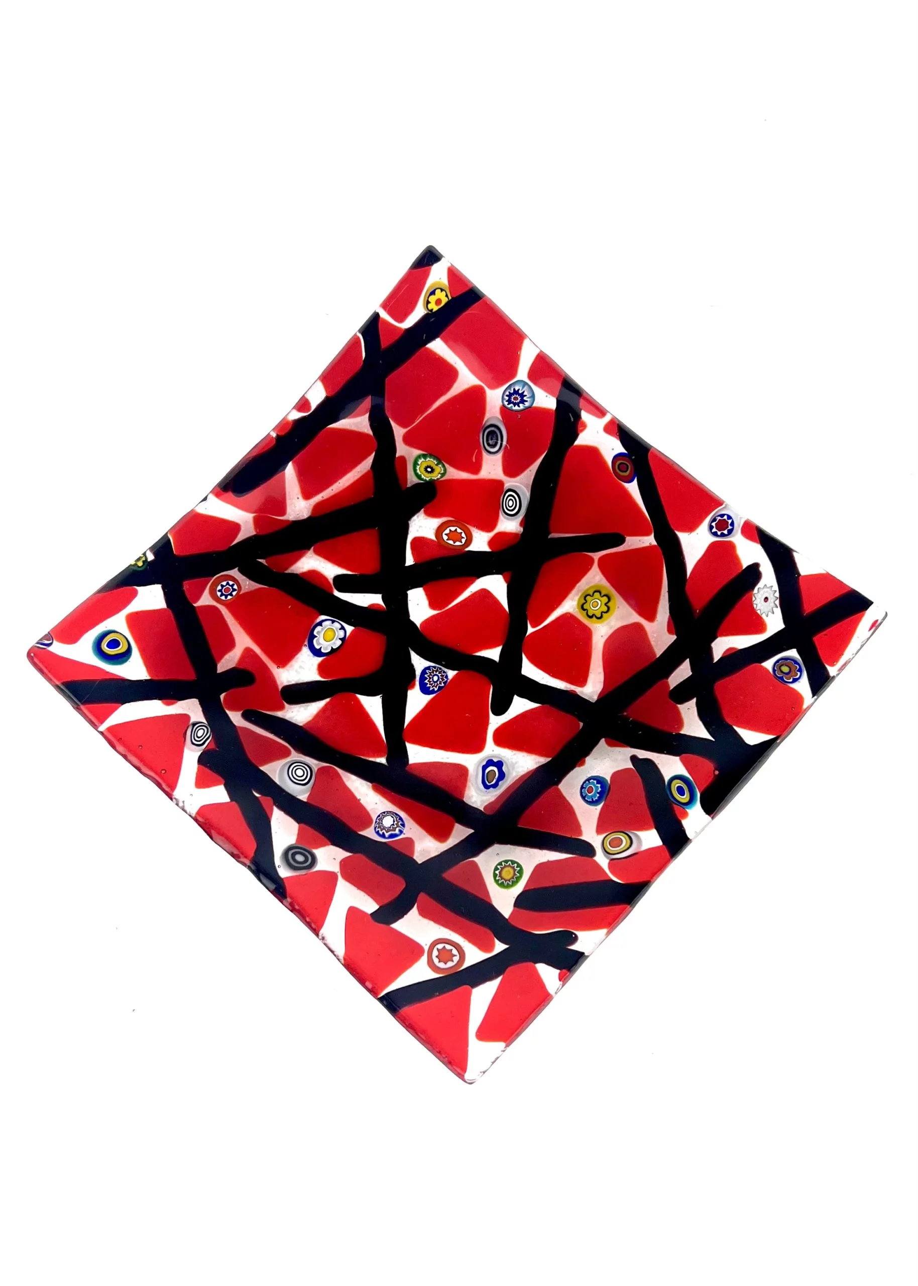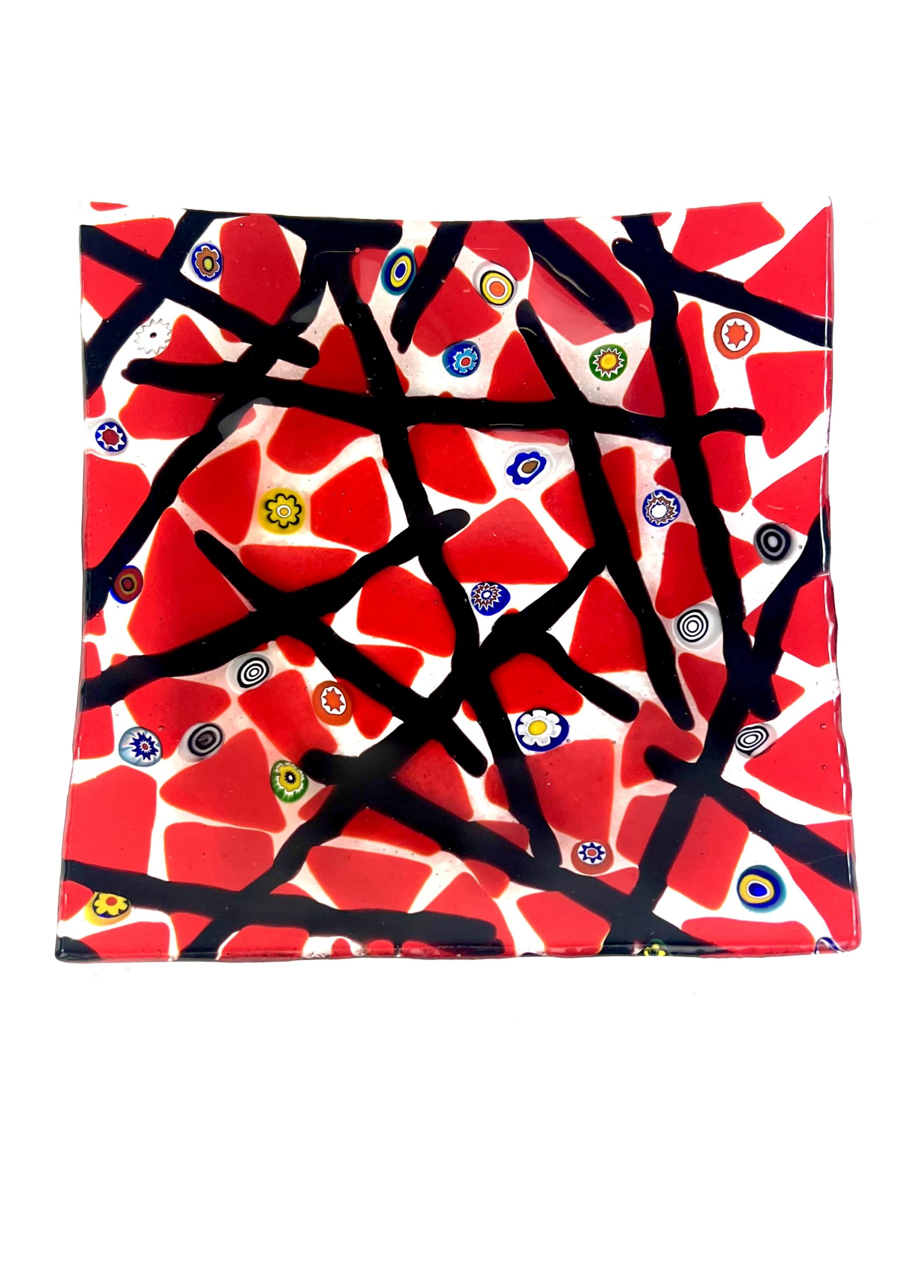 Liam – Red Murano Glass Plate With Black Kanne “Houston”