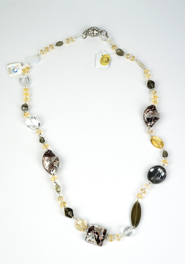 Murano glass necklace entirely handmade with “Lume” glass processing technique. The bright color, the refinement and the lightness with which these jewels are made, make the Made Murano Glass unique and inimitable. The pearls of this fantastic jewel in Murano blown glass have different shapes, assorted colors and processing in silver leaf and aventurine.. Murano glass jewels are artifacts of art and beauty that every woman would like to wear.