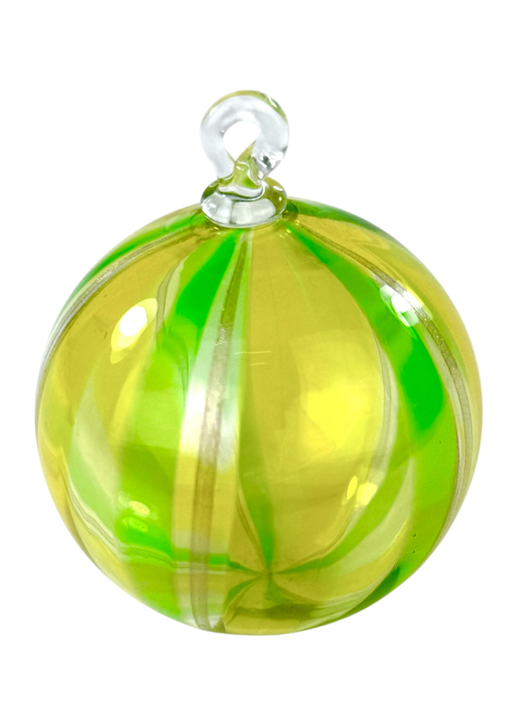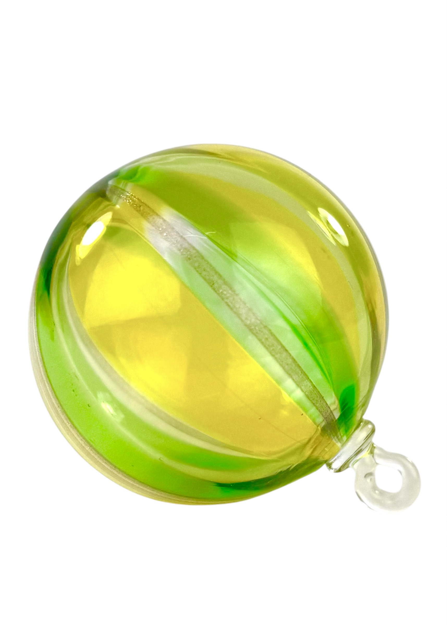 Murano glass christmas ball with yellow, light green, dark green and aventurine kanne.