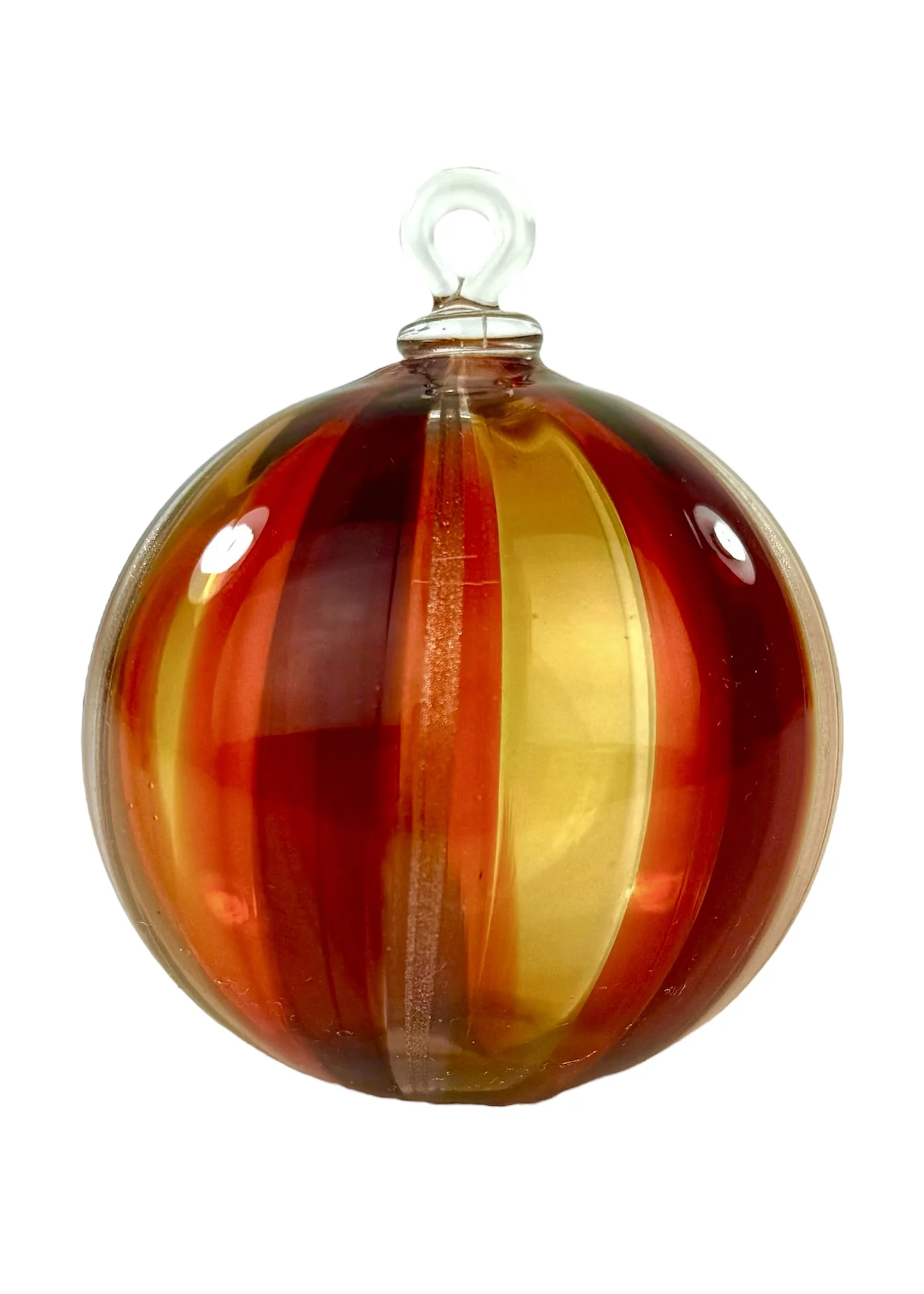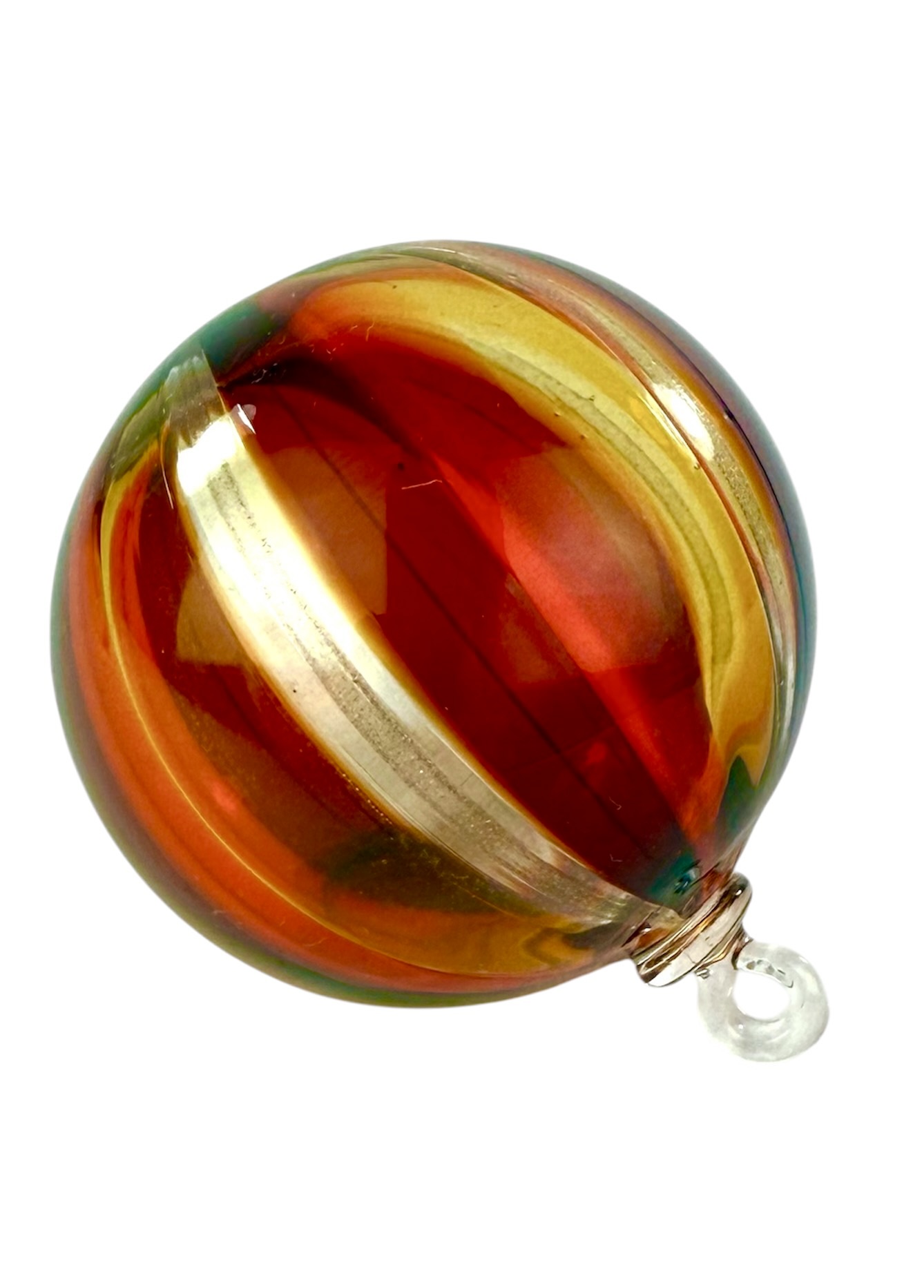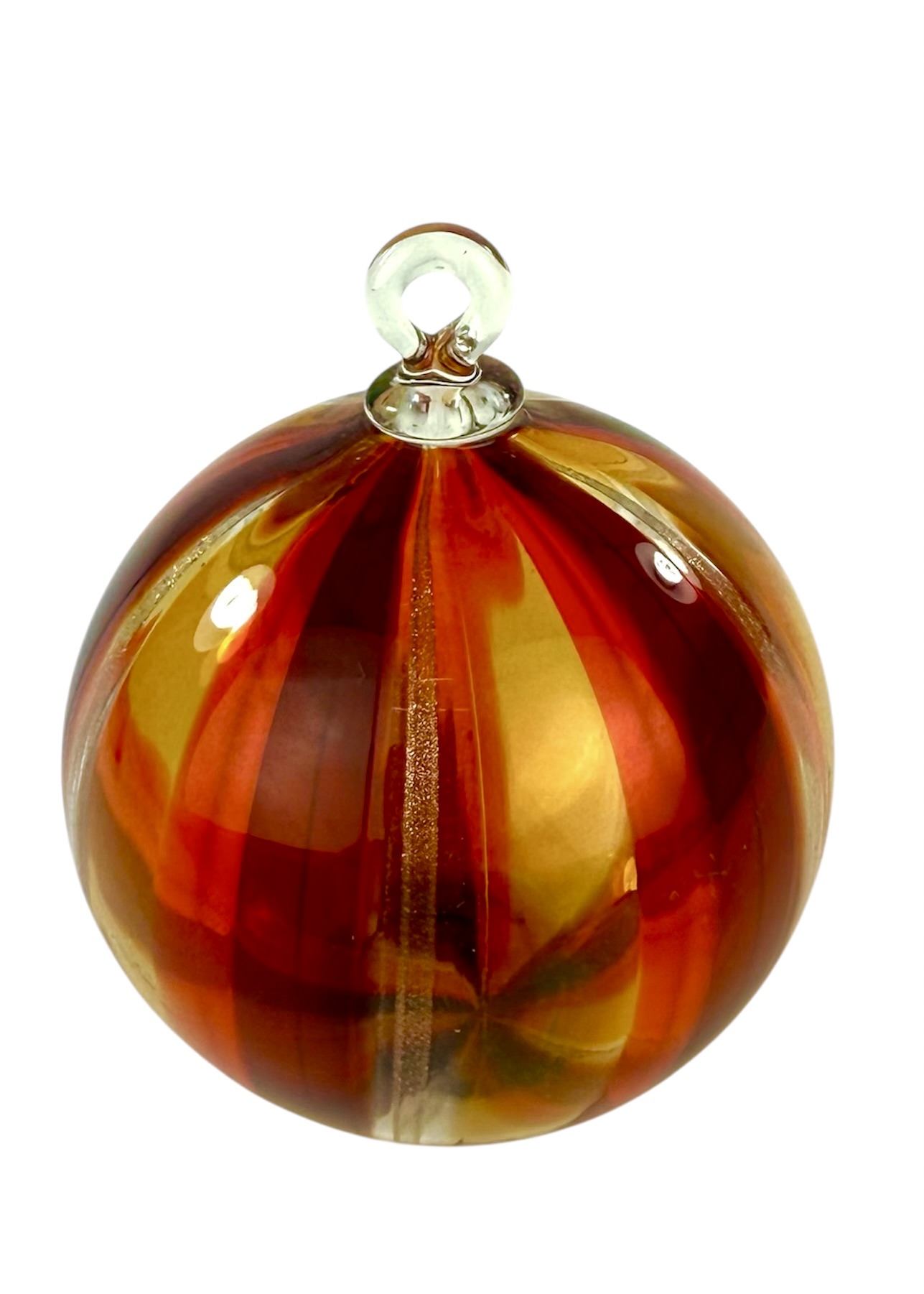 Murano glass christmas ball with with red, amber, orange and aventurine kanne.