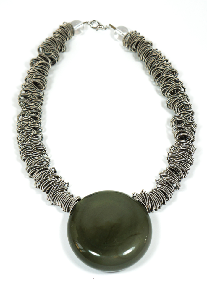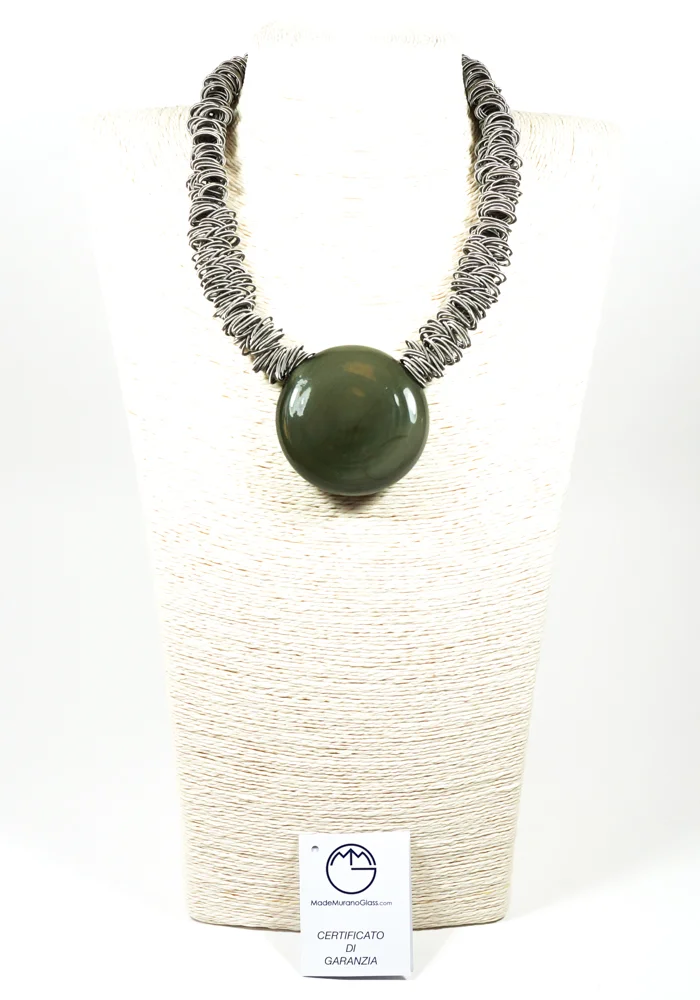 Our Made Murano glass necklaces are hand-made using the “lume” Murano glasswork, like this wonderful Murano jewelry “Lux” grey coloured made of Venetian blown glass and realized by Murano artisans Cheko&Roby Fabbris. The combination of style and design is the perfect feature of this Made Murano Glass art work.