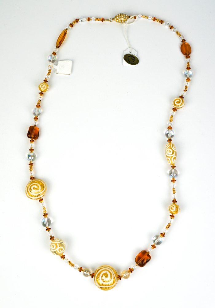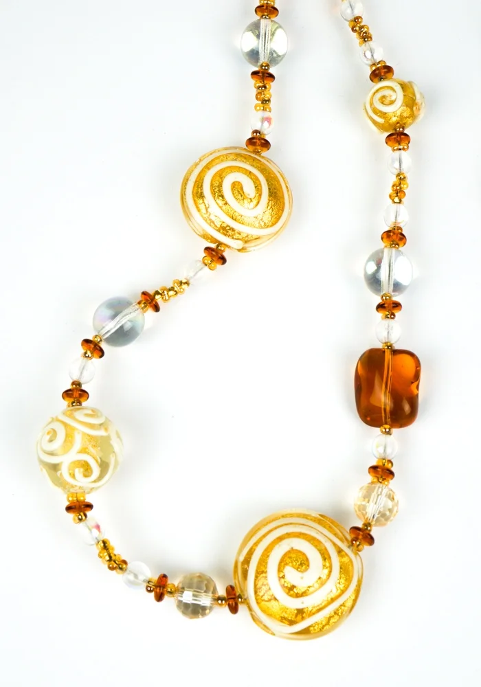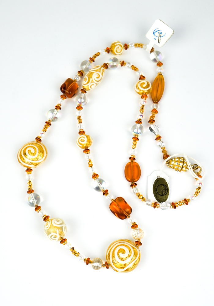 Venetian glass necklace entirely handmade with “Lume” glass processing technique. The bright color, the refinement and the lightness with which these jewels are made, make the Made Murano Glass unique and inimitable. The pearls of this fantastic jewel in Murano blown glass have different shapes, assorted colors and processing in gold leaf 24k and aventurine. Murano glass jewels are artifacts of art and beauty that every woman would like to wear.
